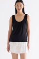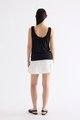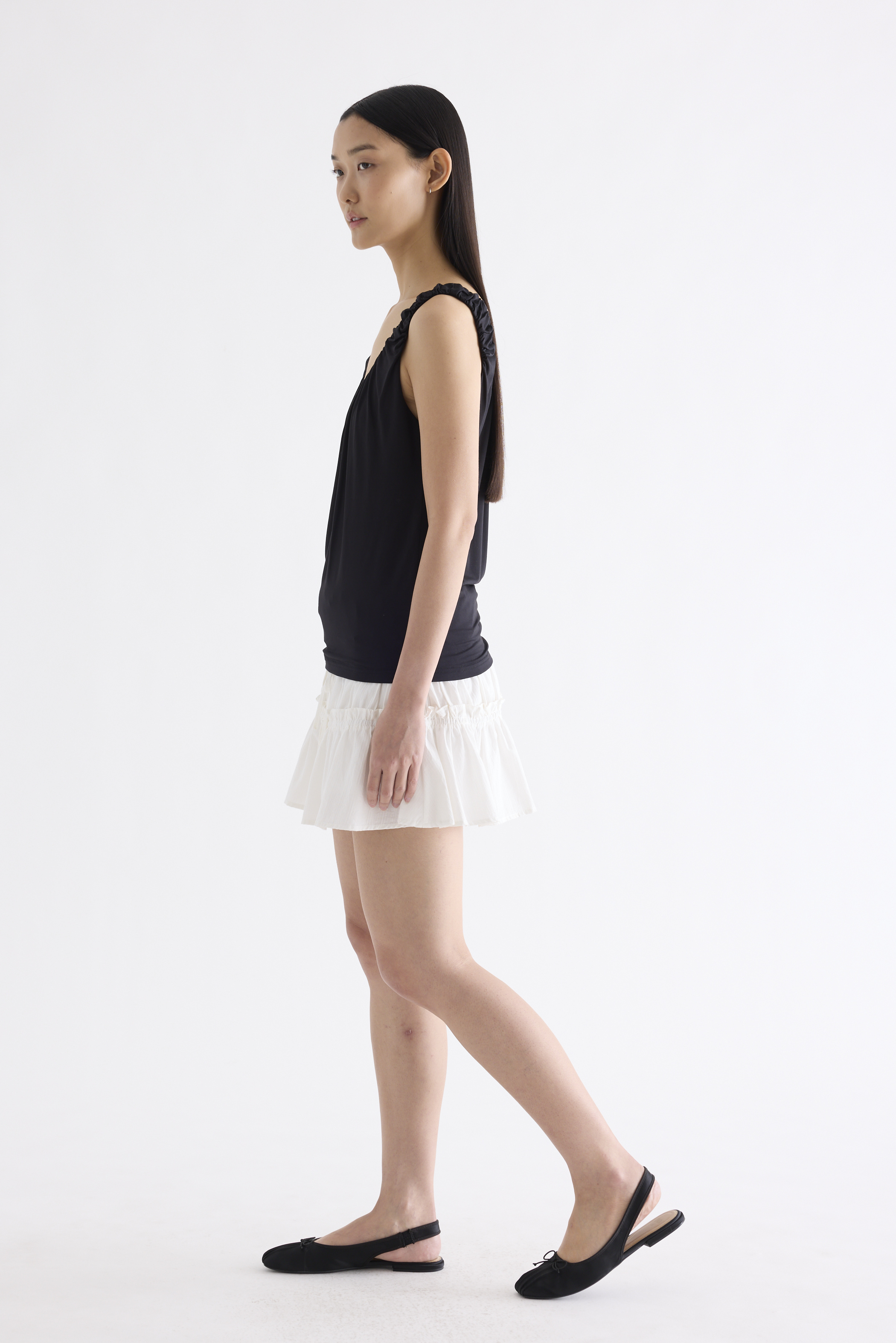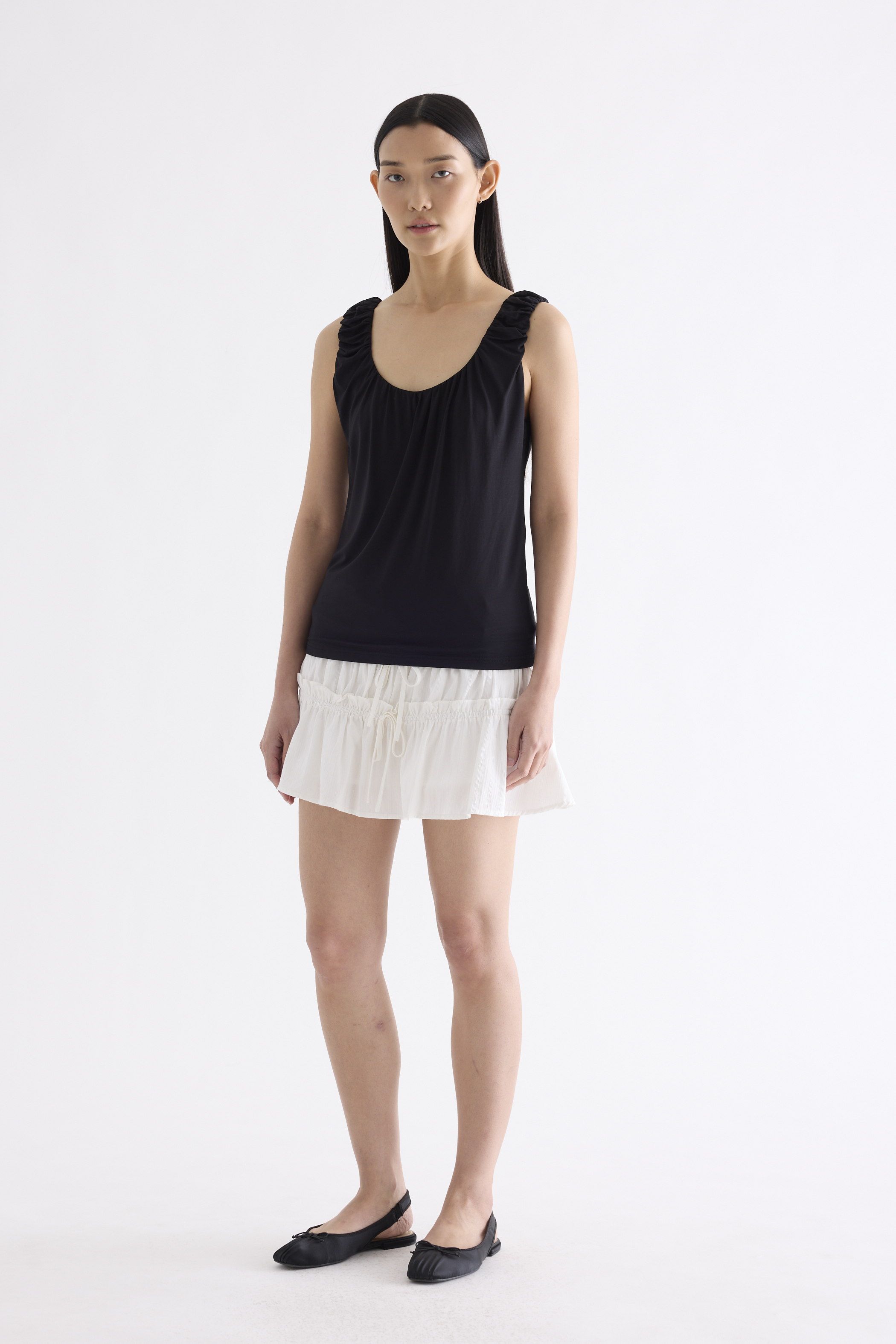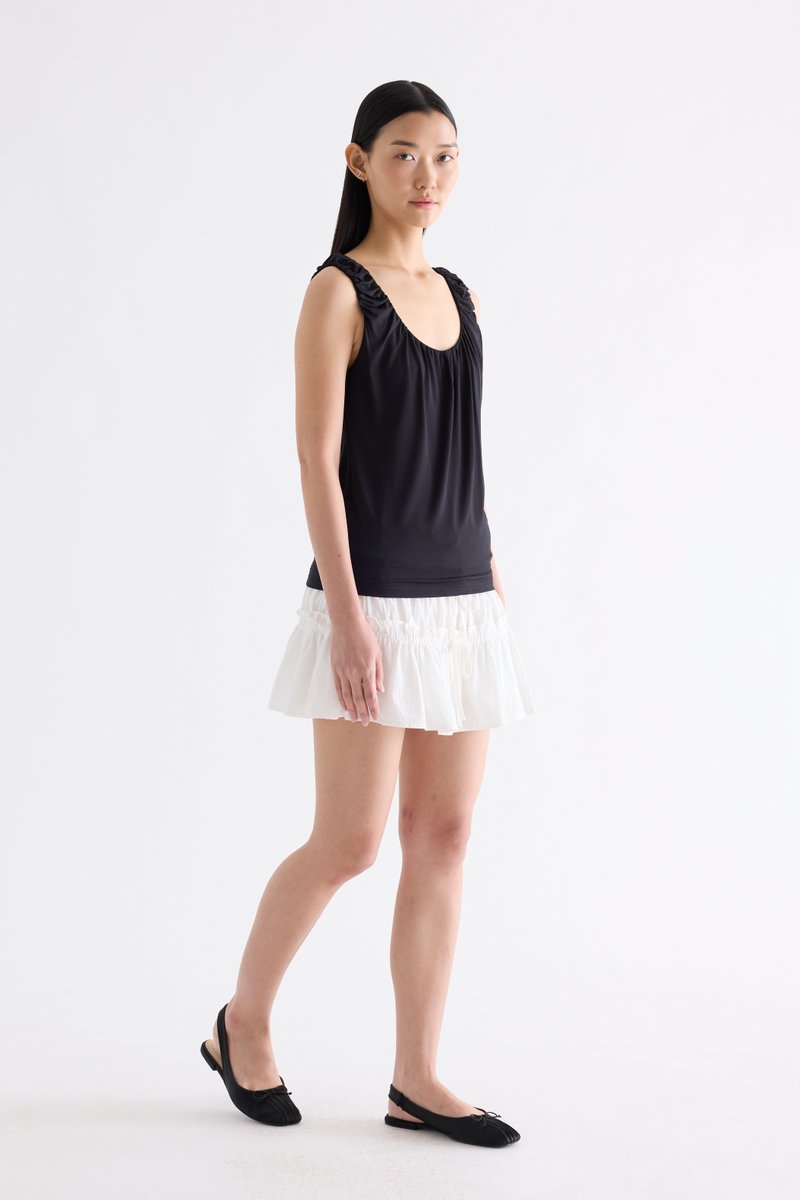 For the love of textures. Made from smooth and stretchy fabric, this sleeveless top features a U-shaped neckline and ruched shoulder straps. Worn in a slim fit.