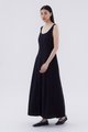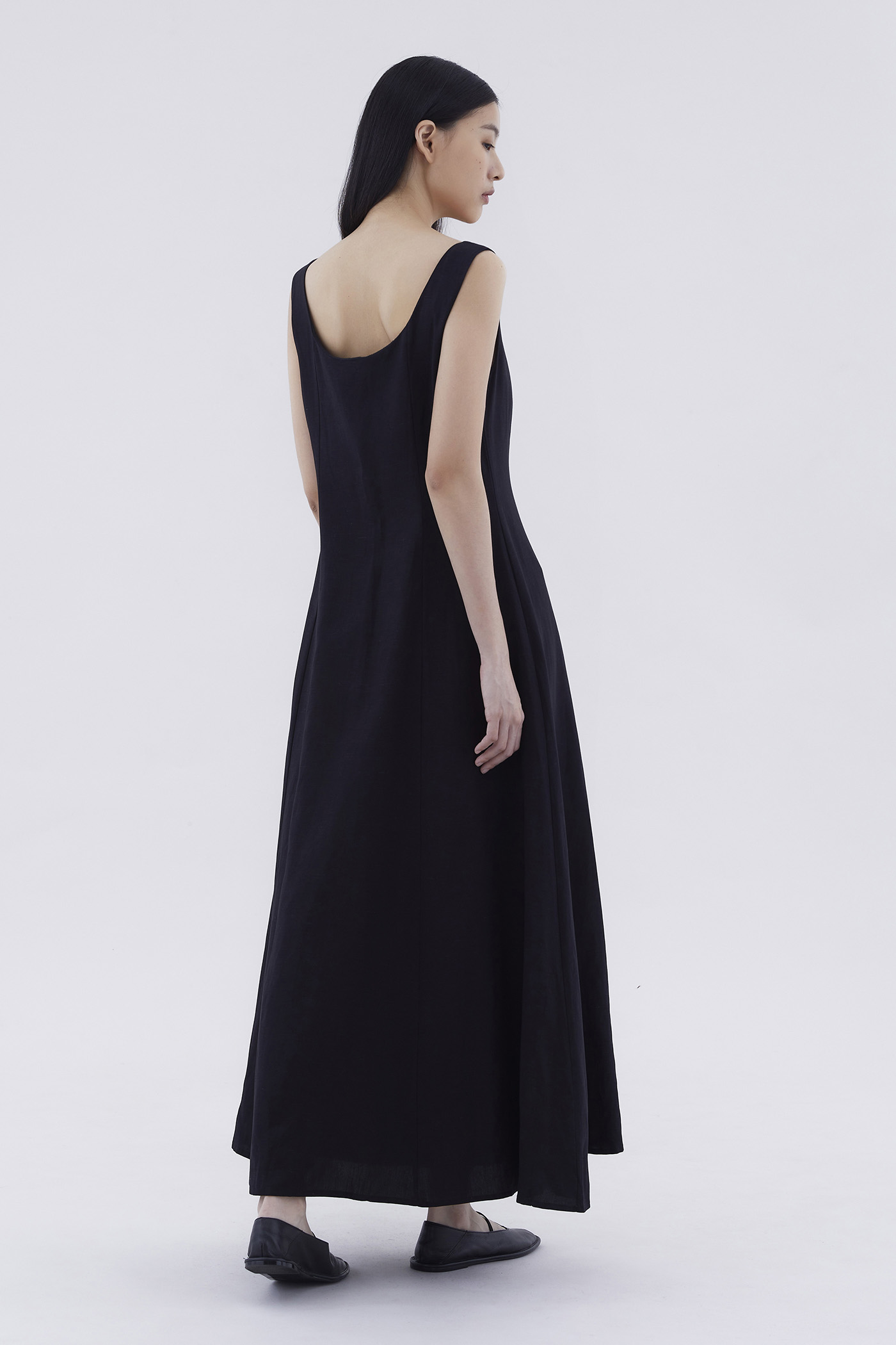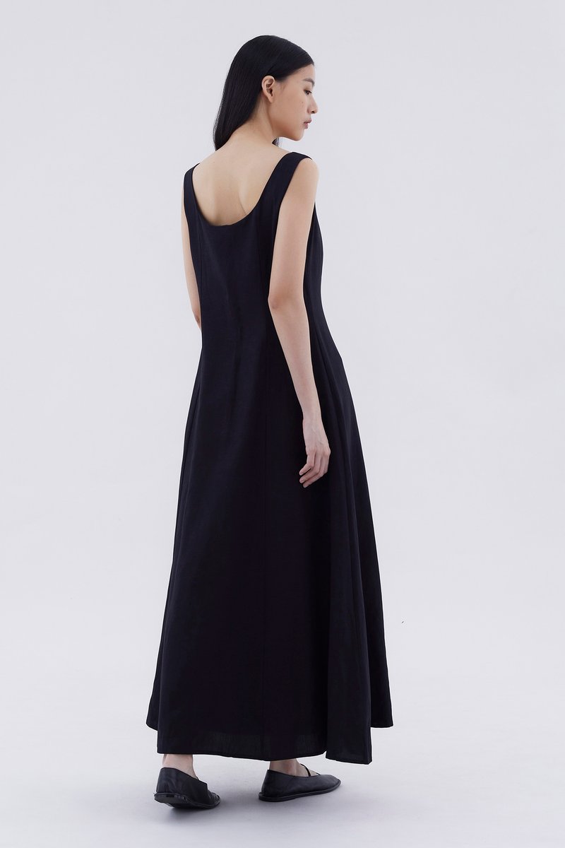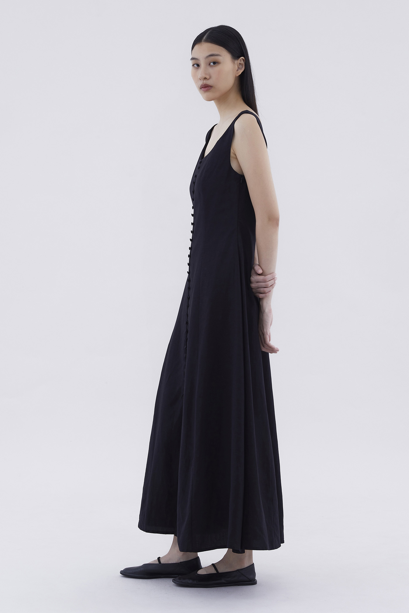 Keep it together. Made from smooth and non-stretch fabric, this sleeveless maxi dress features a wide angular neckline, side zip closure as well as a slit and decorative loop buttons at the front. Fits slimmer through the bodice before flowing out at the waist in a relaxed skirt.