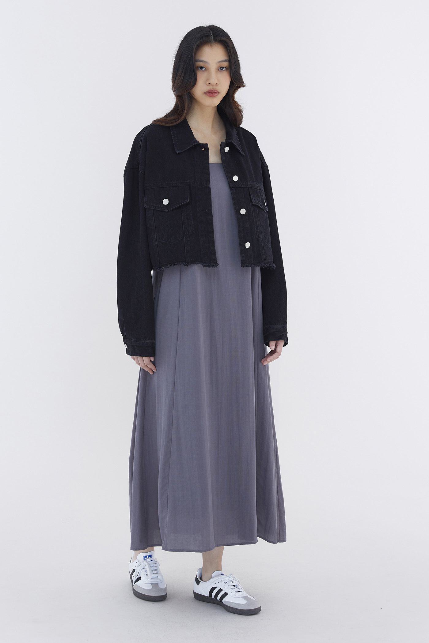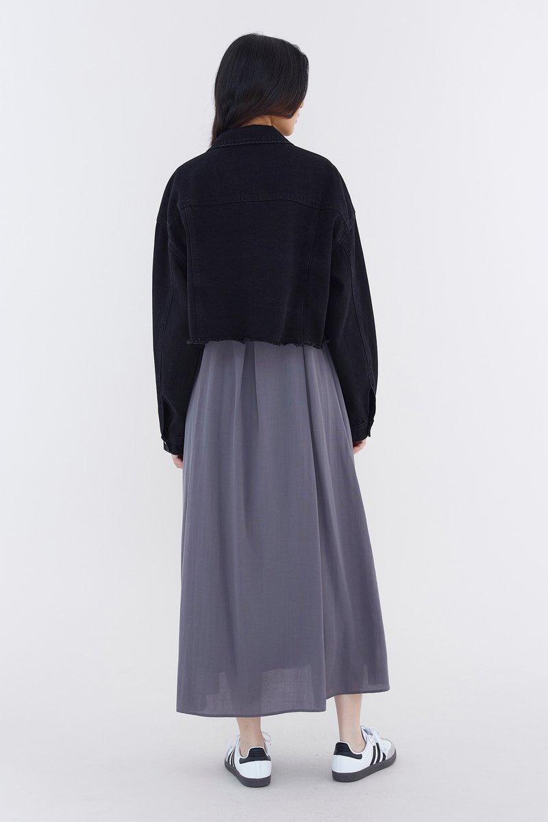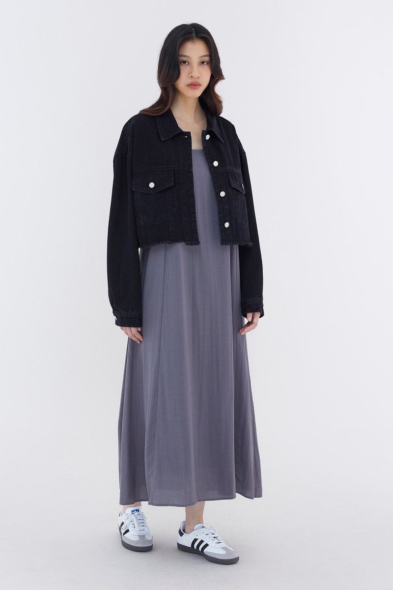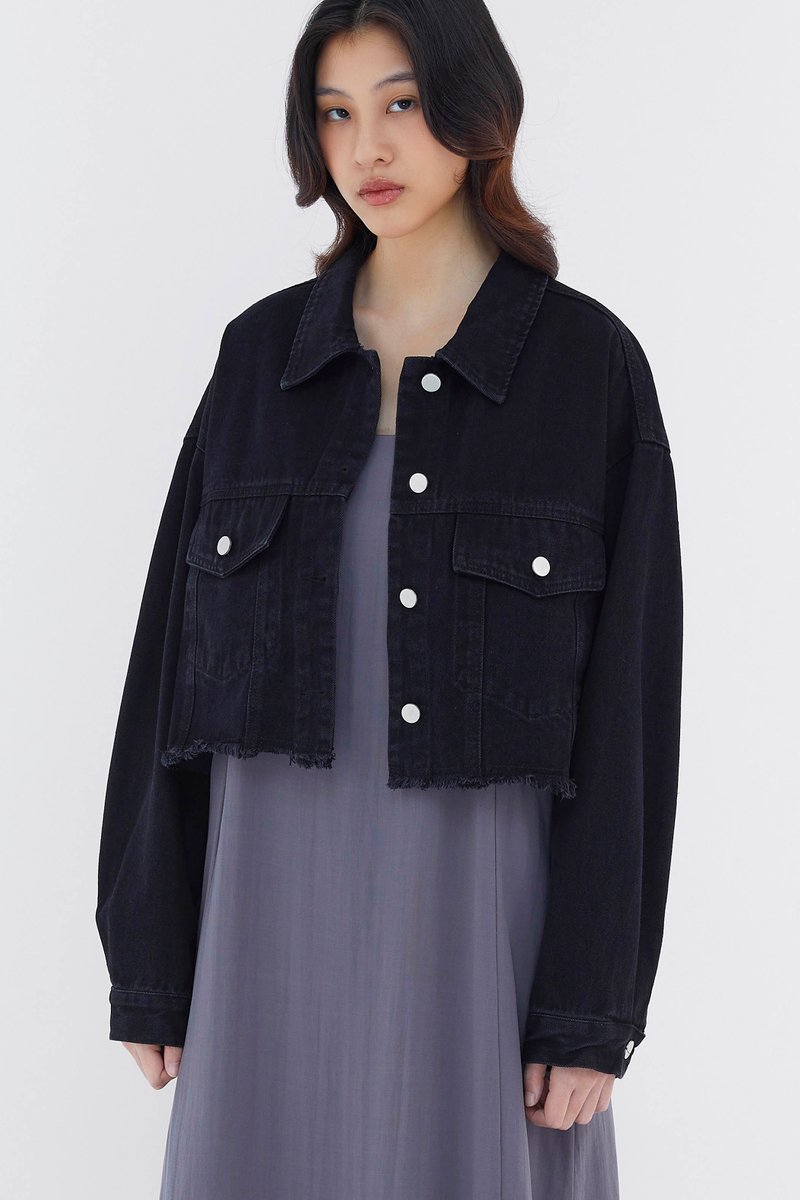 You need more denim days. Made from softly structured cotton, this cropped denim jacket features a frayed hemline, flap pockets and a front button-down closure. Worn in a relaxed, oversized fit.