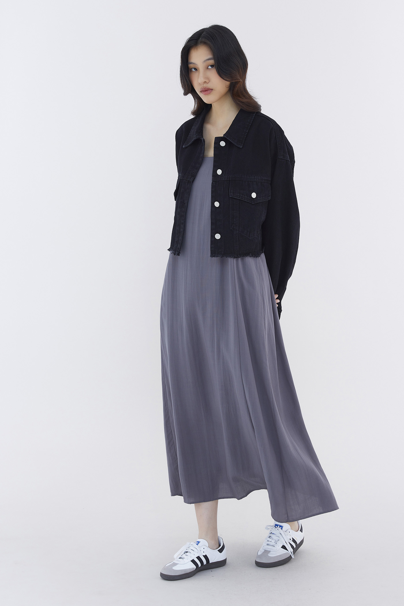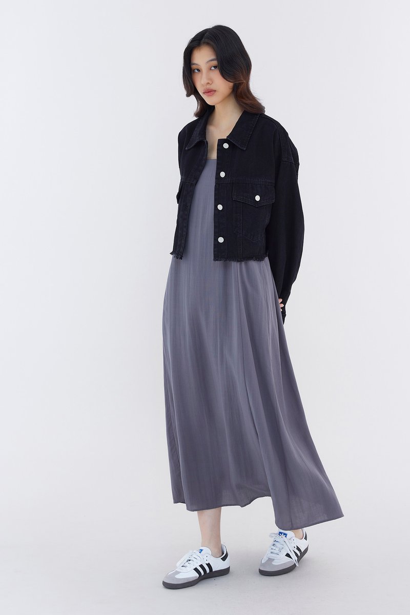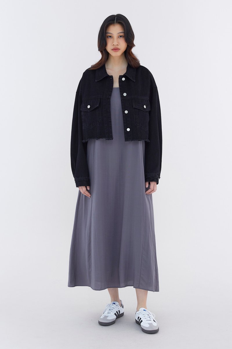 You need more denim days. Made from softly structured cotton, this cropped denim jacket features a frayed hemline, flap pockets and a front button-down closure. Worn in a relaxed, oversized fit.