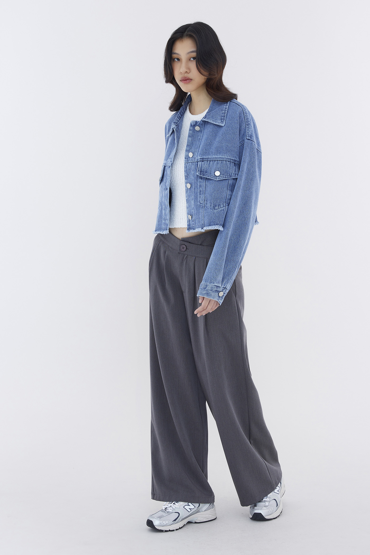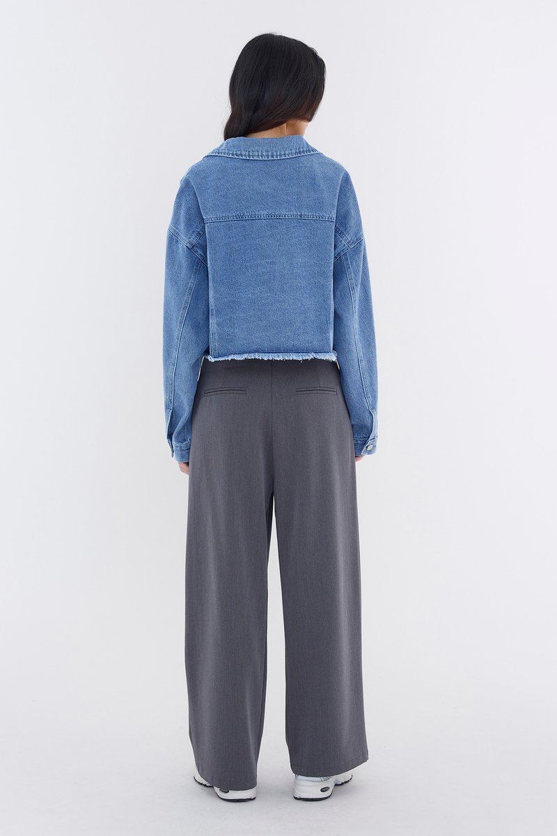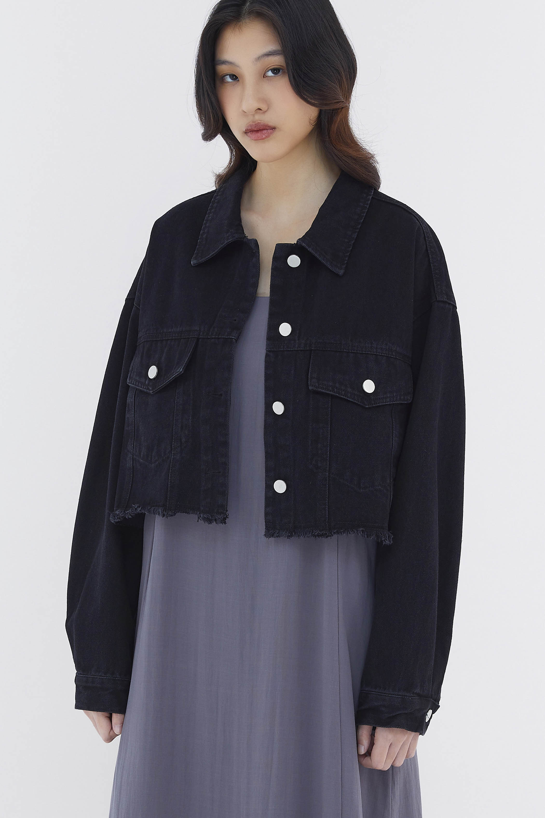 You need more denim days. Made from softly structured cotton, this cropped denim jacket features a frayed hemline, flap pockets and a front button-down closure. Worn in a relaxed, oversized fit.