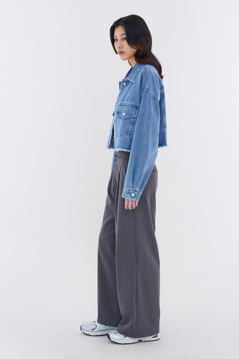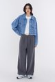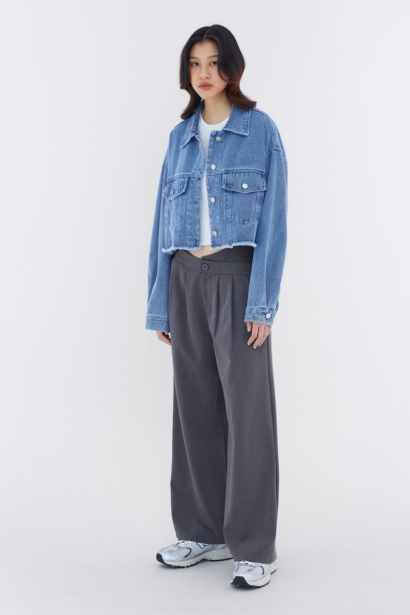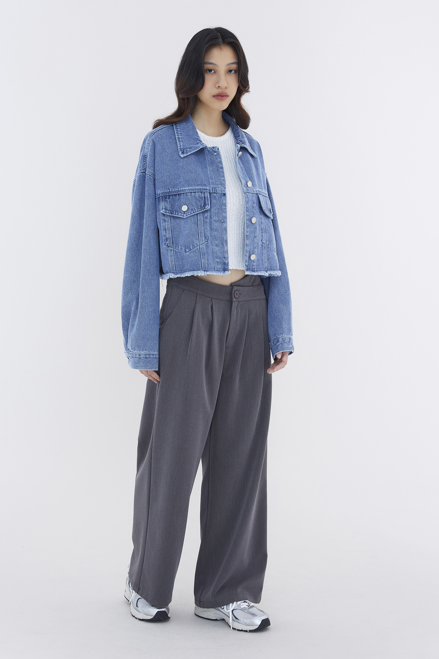 You need more denim days. Made from softly structured cotton, this cropped denim jacket features a frayed hemline, flap pockets and a front button-down closure. Worn in a relaxed, oversized fit.