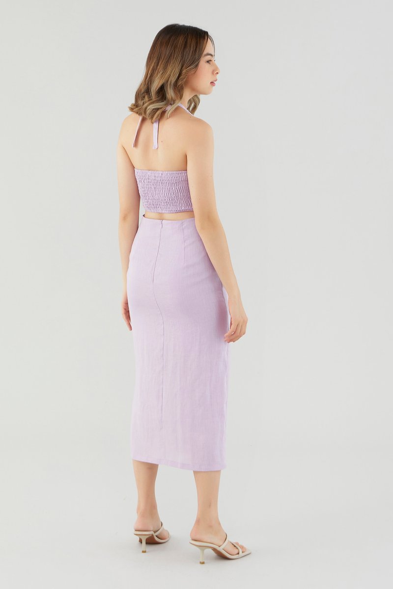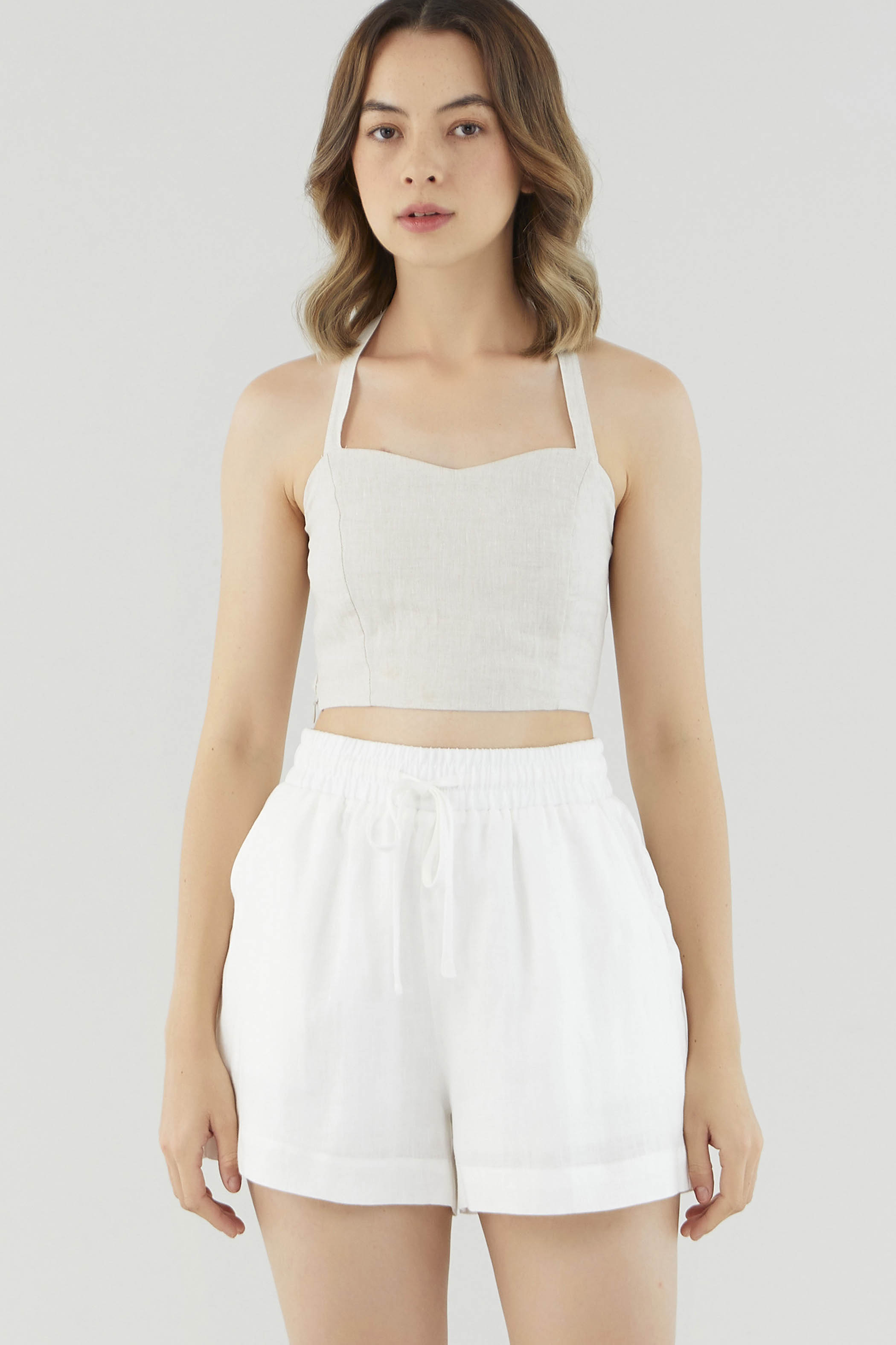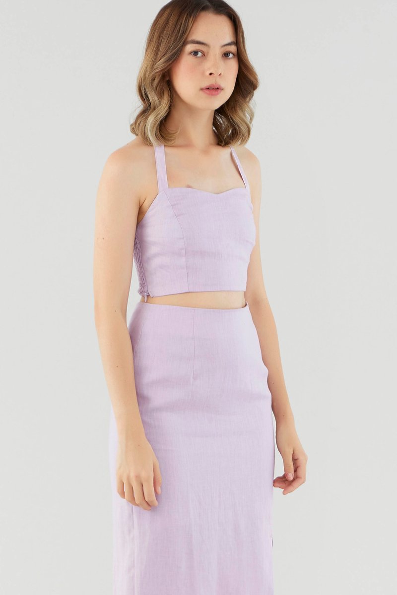<p><span style="font-weight: 400;">Fabric Composition: 100% Linen</span></p> <p><span style="font-weight: 400;">Lining: Partial. Front bodice is fully lined, back is unlined. </span></p> <p><span style="font-weight: 400;">Sheerness: Not sheer</span></p> <p><span style="font-weight: 400;">Pockets: None</span></p> <p><span style="font-weight: 400;">Summer in a top. Cut from airy and softly tailored 100% linen, this sleeveless cropped top features a dipped neckline, self-tie neck straps and a smocked back. Fits slim with a zip closure on the side. </span></p> <p><span style="font-weight: 400;">Care Instructions: Do not soak / Do not bleach / Handwash or Machine wash on gentle mode / Do not machine dry / Iron using low heat</span></p> <p><i><span style="font-weight: 400;">This piece is made from 100% linen, the unsung hero of hot days and one of the least environmentally damaging fabrics. Derived from the unfussy flax plant, not only does its cultivation consume significantly less water, pesticides and arable land — but linen’s excellent durability and biodegradable nature also means your clothes have a longer, more waste-free life cycle.</span></i></p>