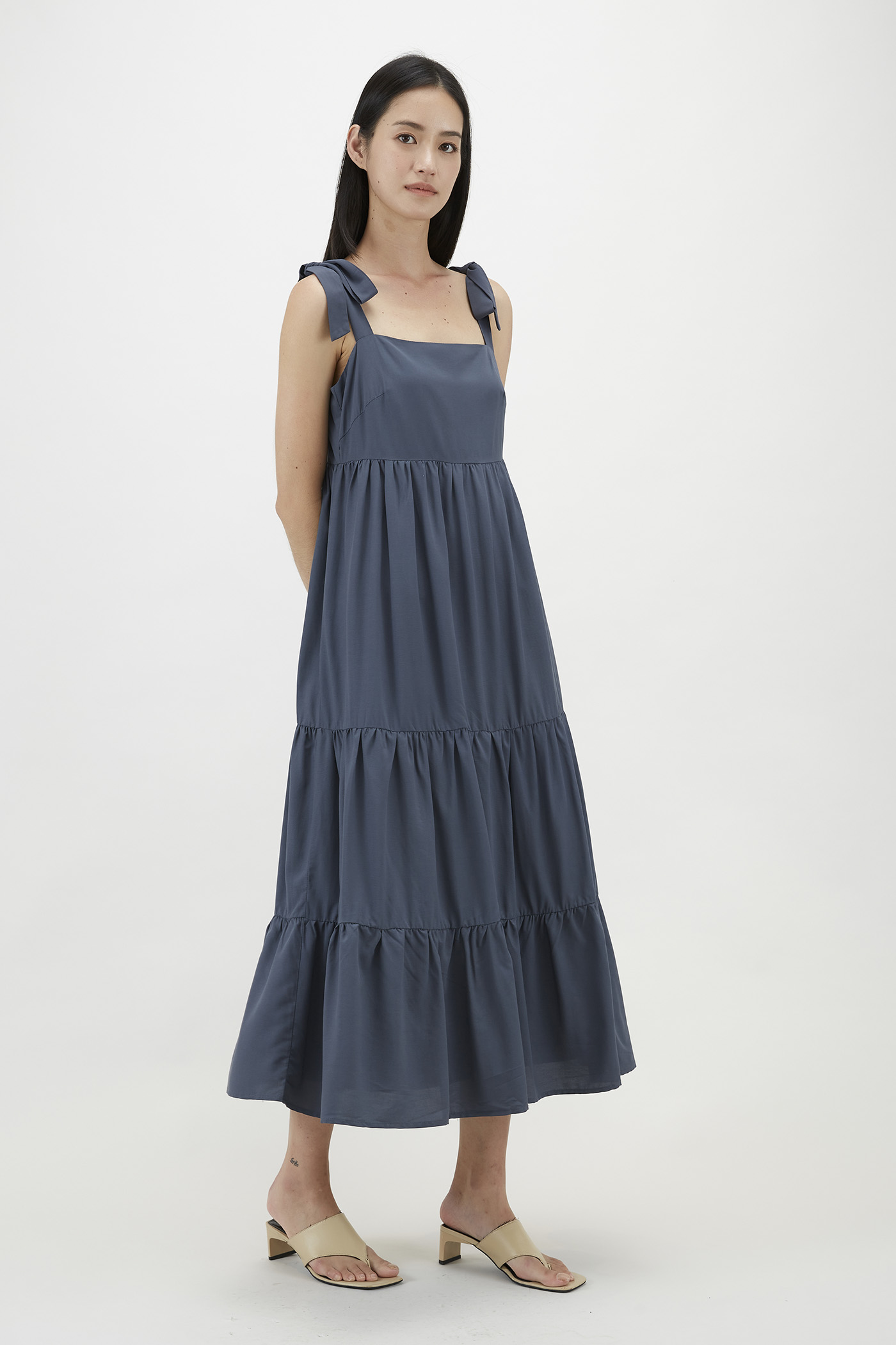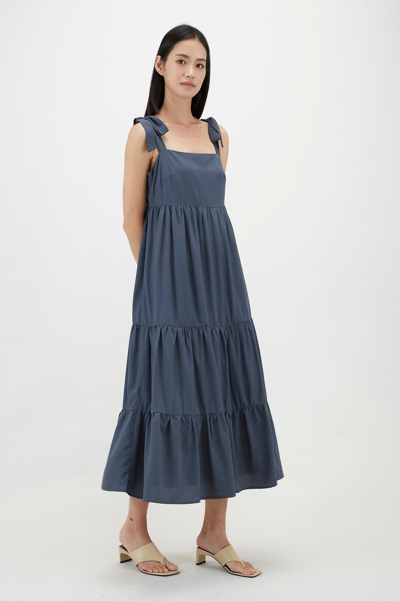 Greeta Tie-Strap Tiered Dress