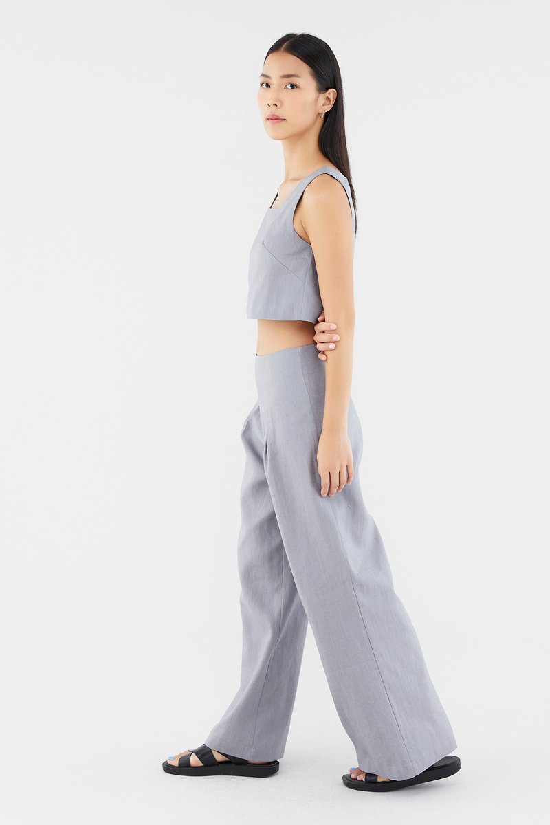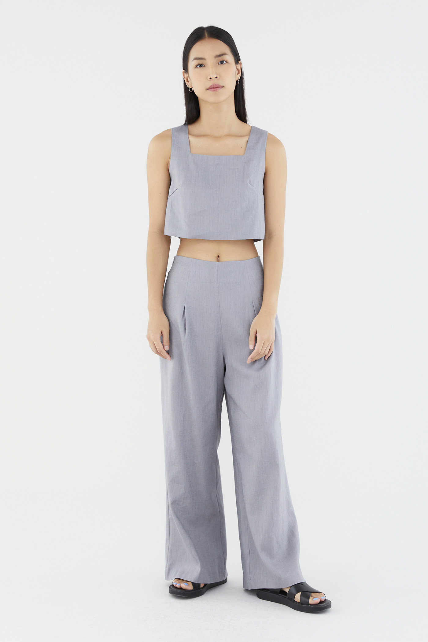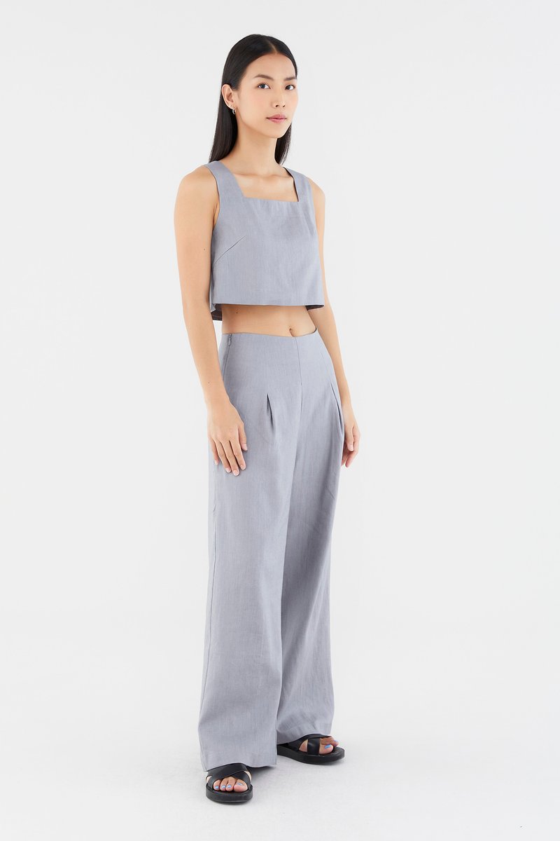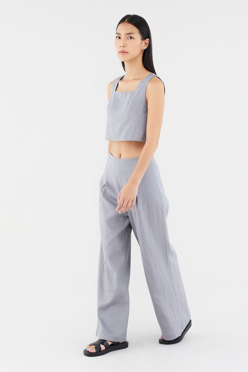 Beat the heat. Cut from airy and gently tailored 100% linen, this sleeveless top features a flattering boxy silhouette, a square neckline, wide shoulder straps and a side zip. Fits relaxed in a cropped length.
