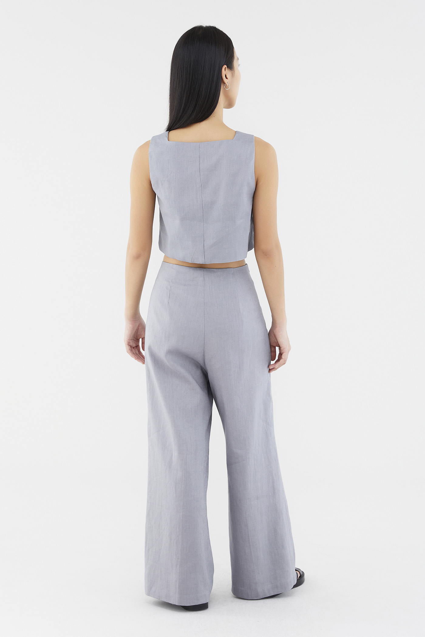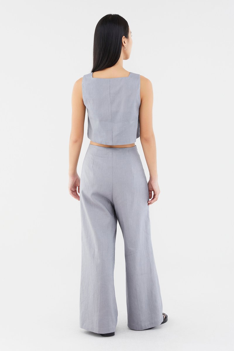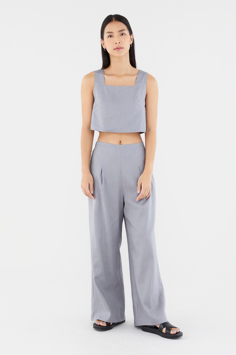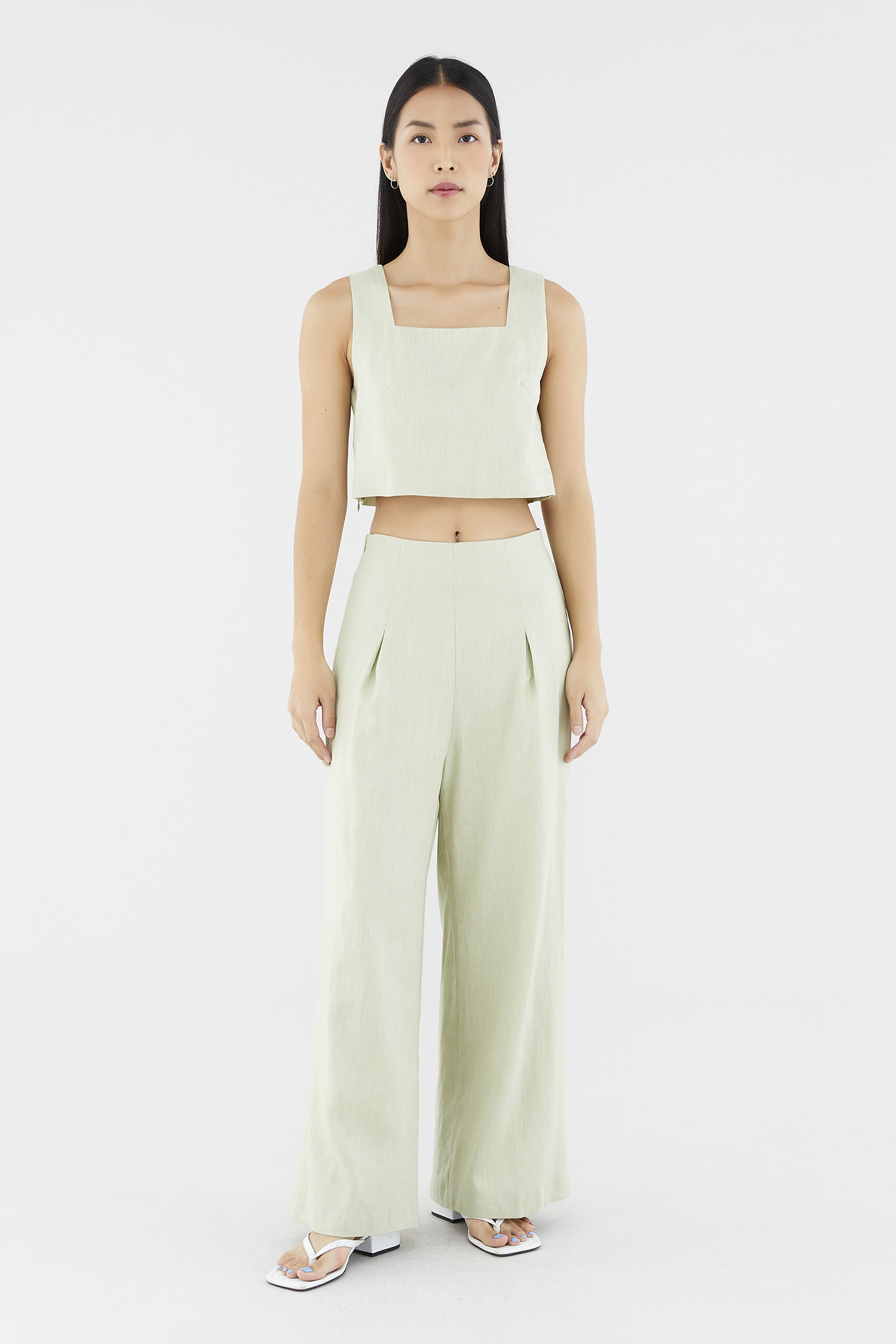 Beat the heat. Cut from airy and gently tailored 100% linen, this sleeveless top features a flattering boxy silhouette, a square neckline, wide shoulder straps and a side zip. Fits relaxed in a cropped length.