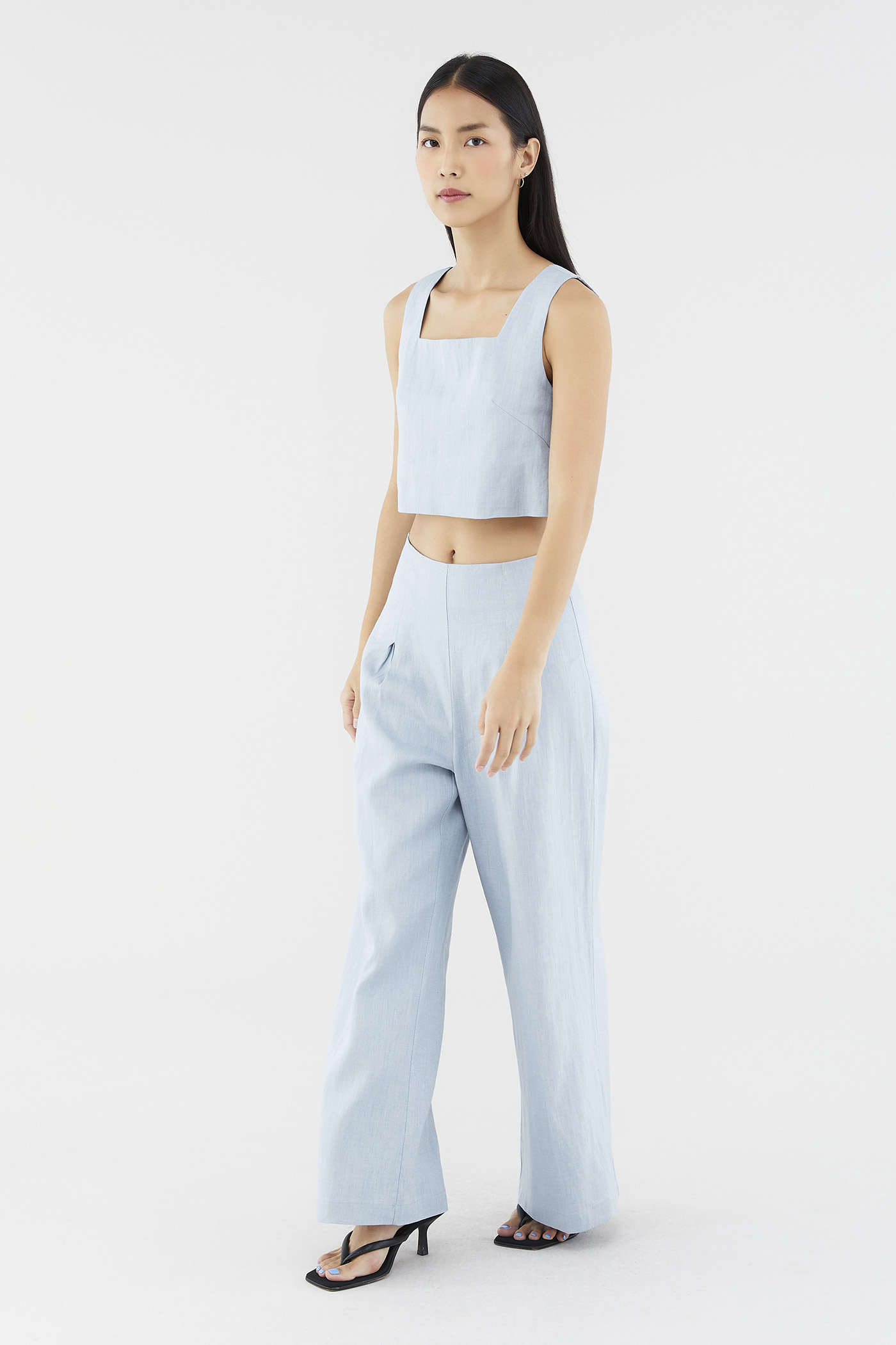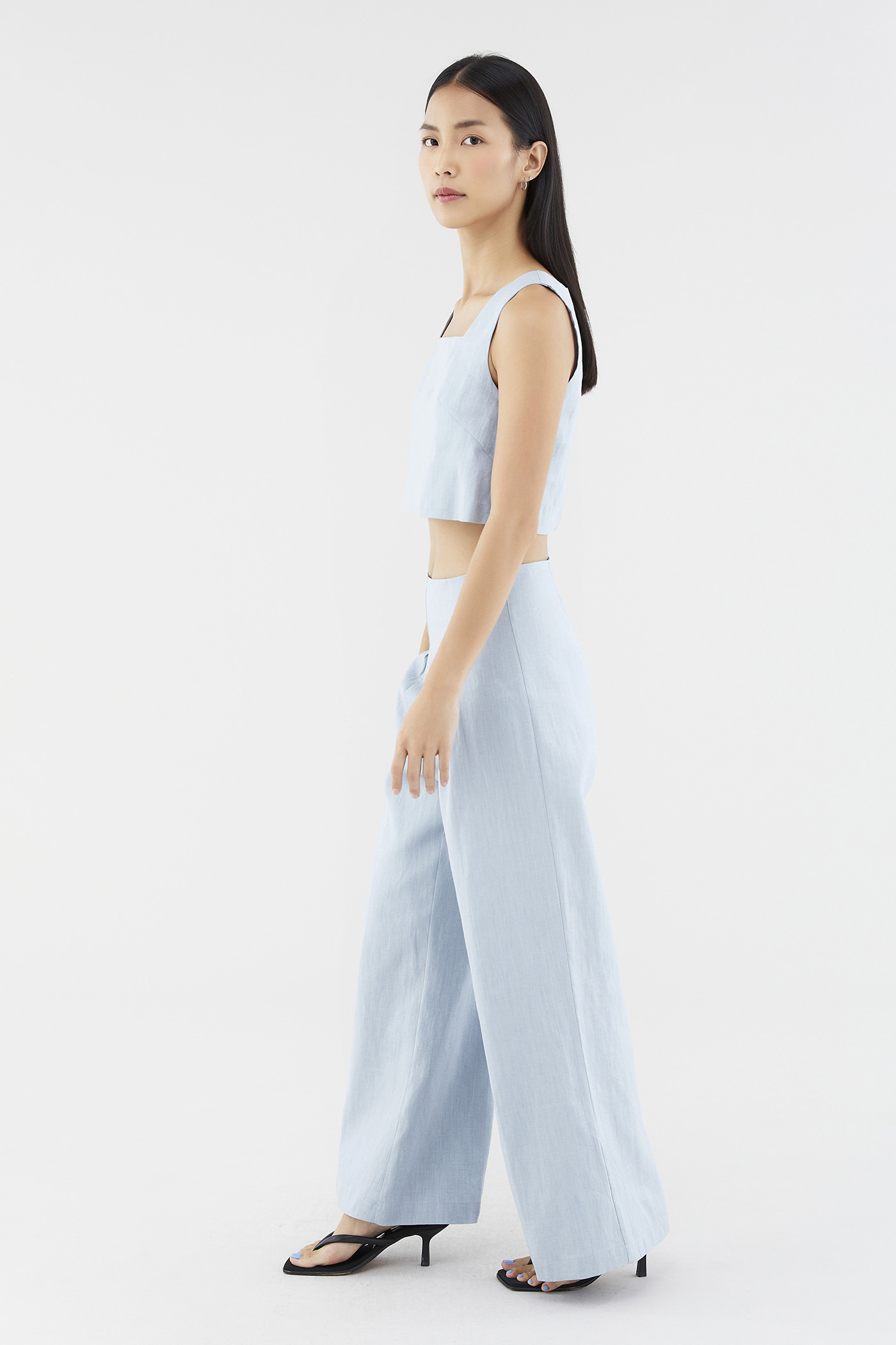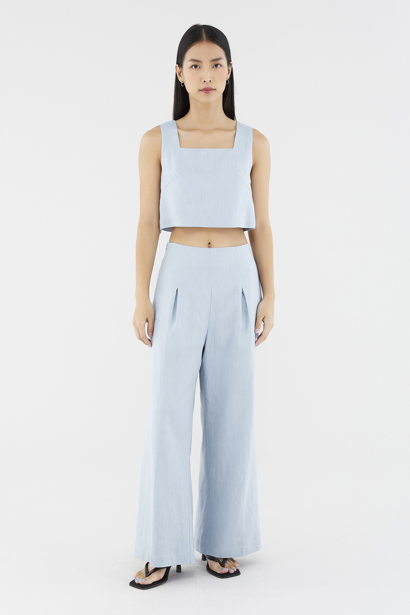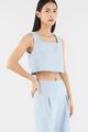 Beat the heat. Cut from airy and gently tailored 100% linen, this sleeveless top features a flattering boxy silhouette, a square neckline, wide shoulder straps and a side zip. Fits relaxed in a cropped length.