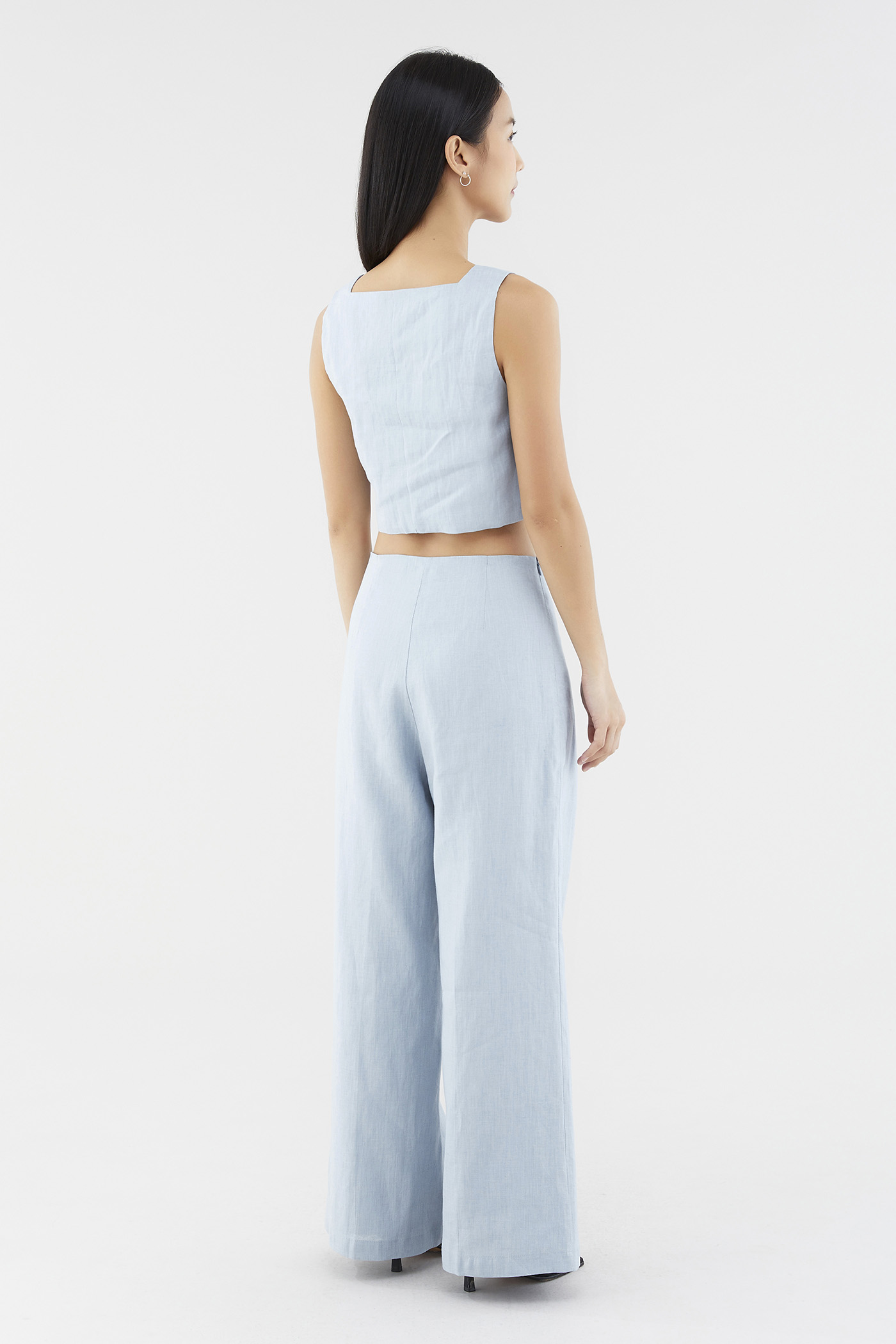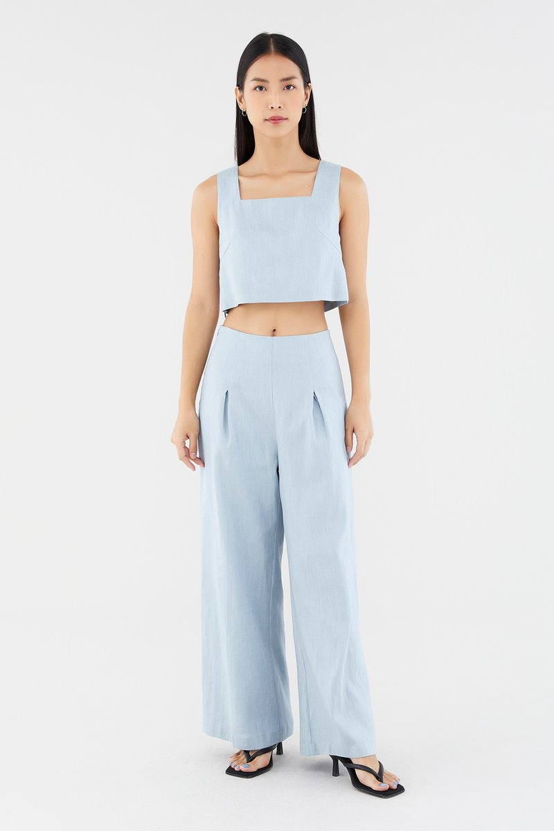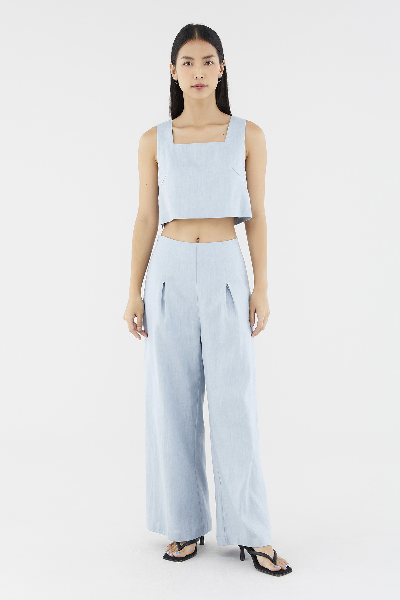 Beat the heat. Cut from airy and gently tailored 100% linen, this sleeveless top features a flattering boxy silhouette, a square neckline, wide shoulder straps and a side zip. Fits relaxed in a cropped length.