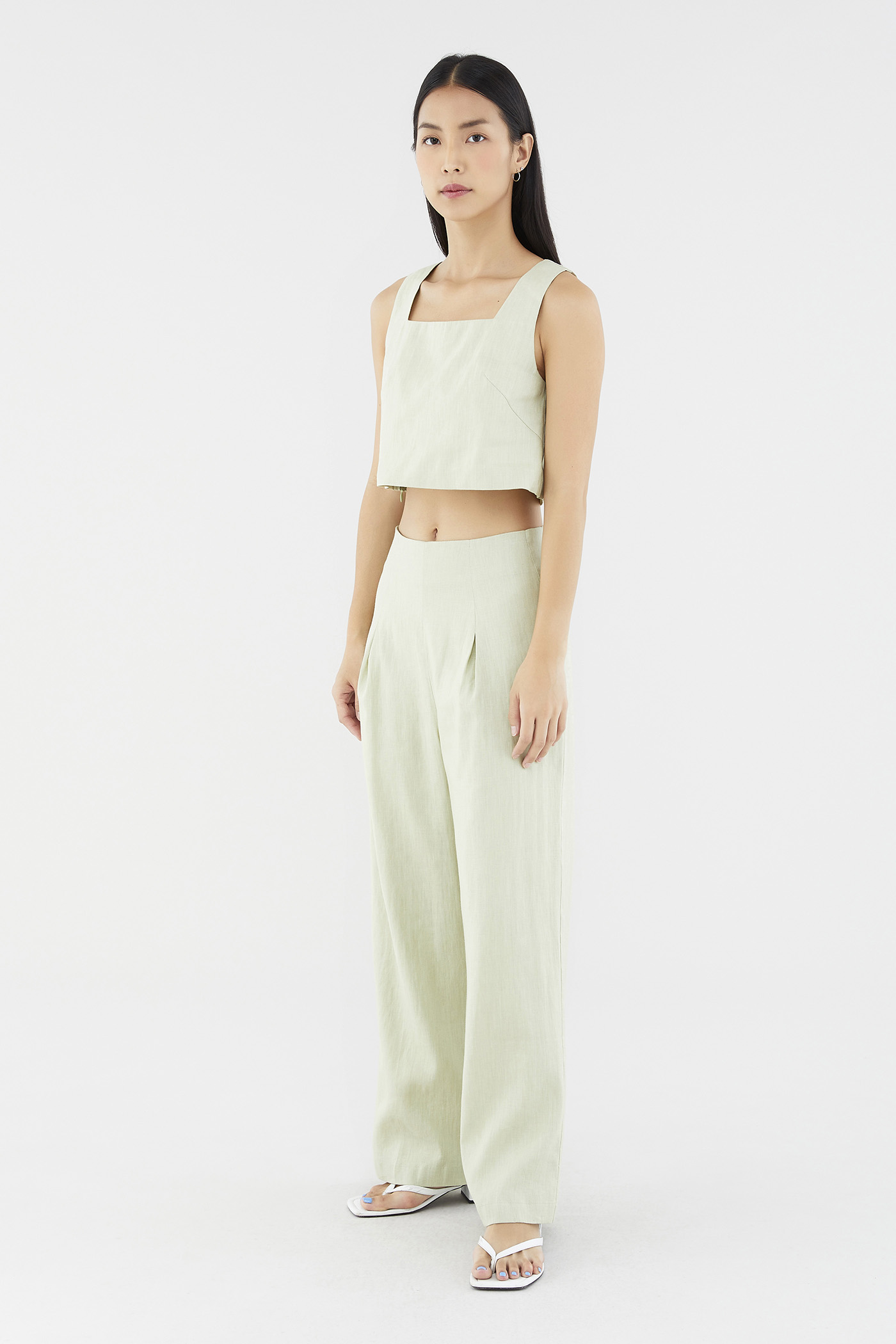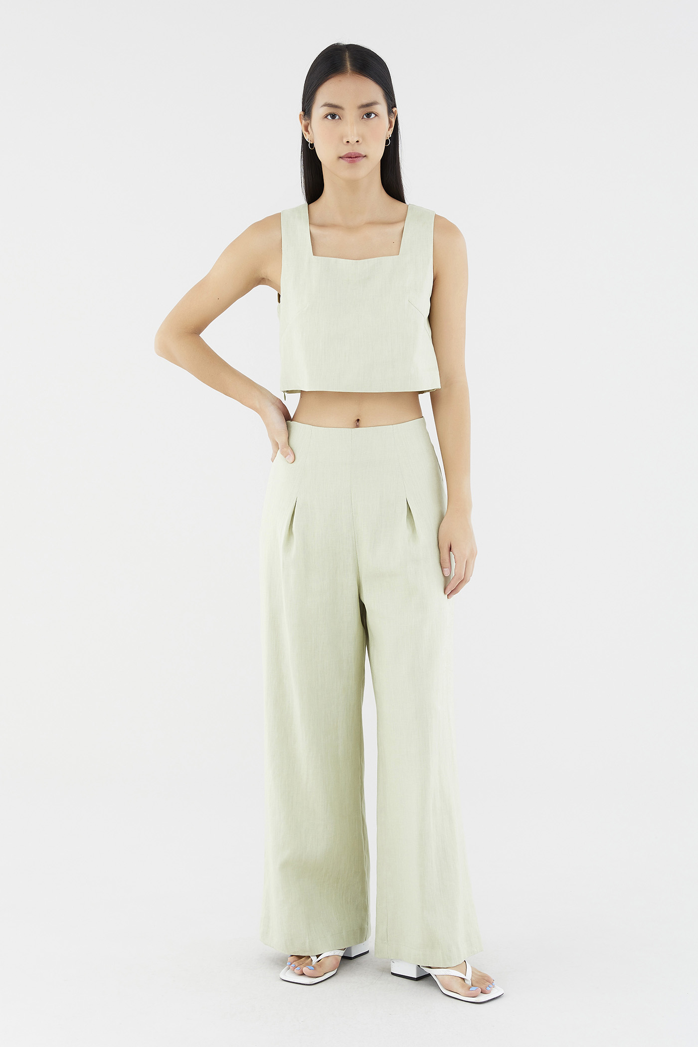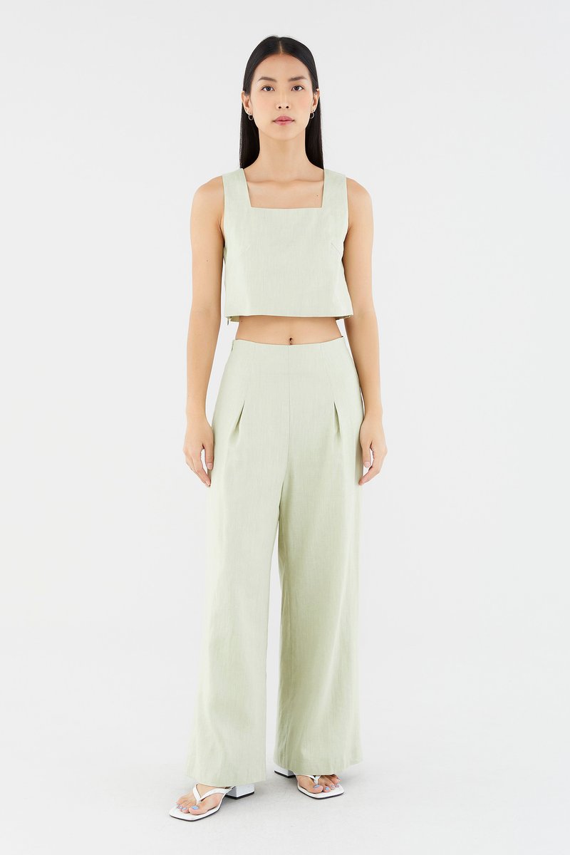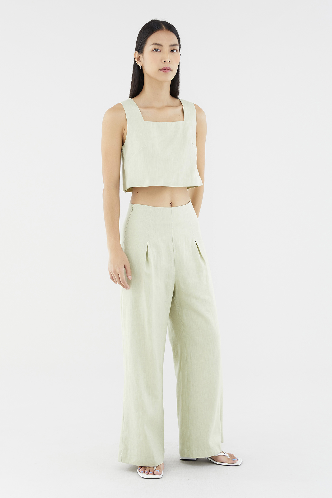Beat the heat. Cut from airy and gently tailored 100% linen, this sleeveless top features a flattering boxy silhouette, a square neckline, wide shoulder straps and a side zip. Fits relaxed in a cropped length.