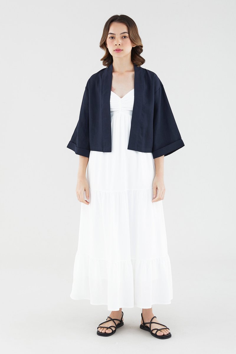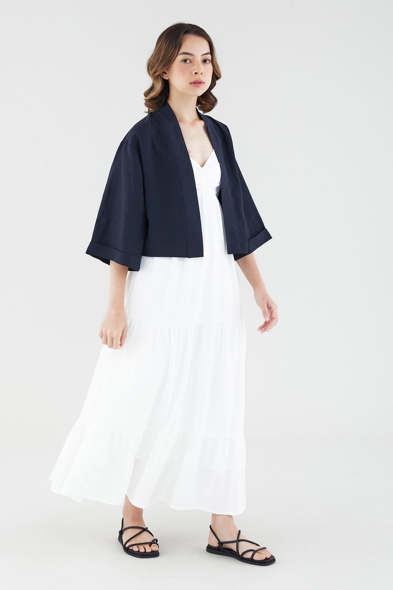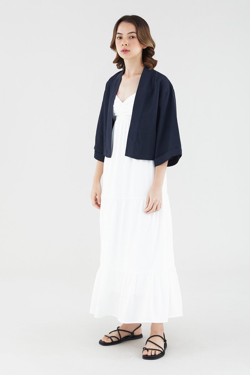 Rotation-ready. Cut from soft and unlined fabric, this oversized layering essential flaunts a timeless kimono silhouette, wide sleeves and a broad lapel panel. Fits relaxed in a cropped length.