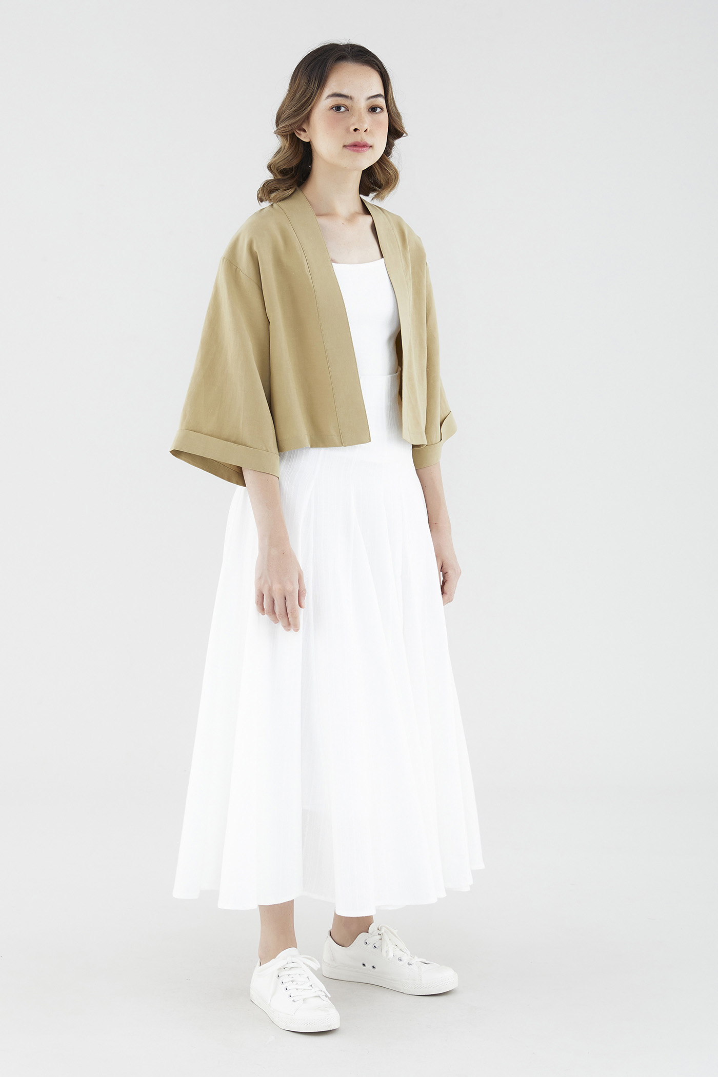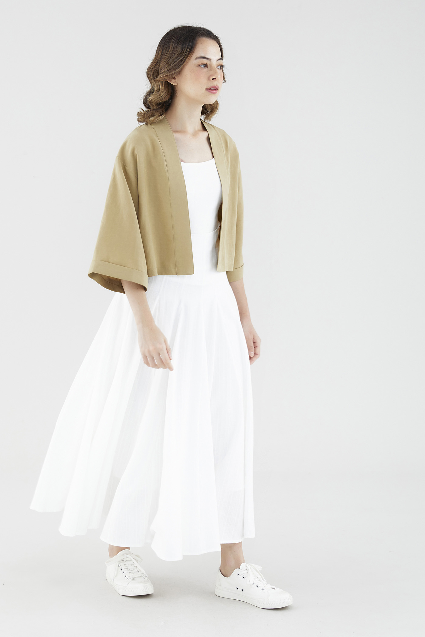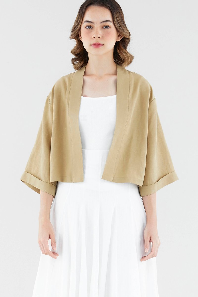 Rotation-ready. Cut from soft and unlined fabric, this oversized layering essential flaunts a timeless kimono silhouette, wide sleeves and a broad lapel panel. Fits relaxed in a cropped length.