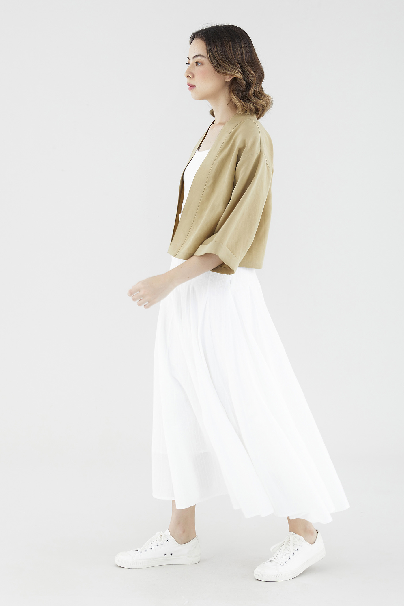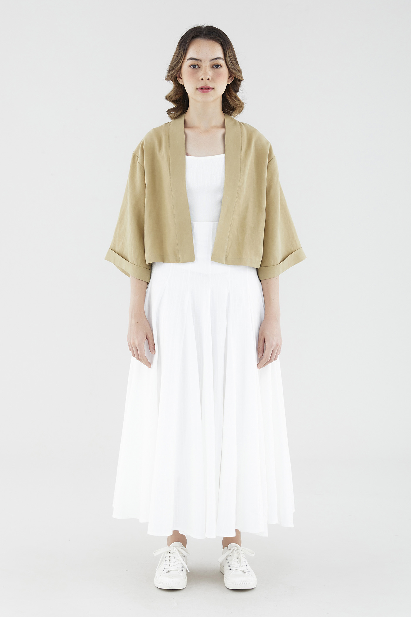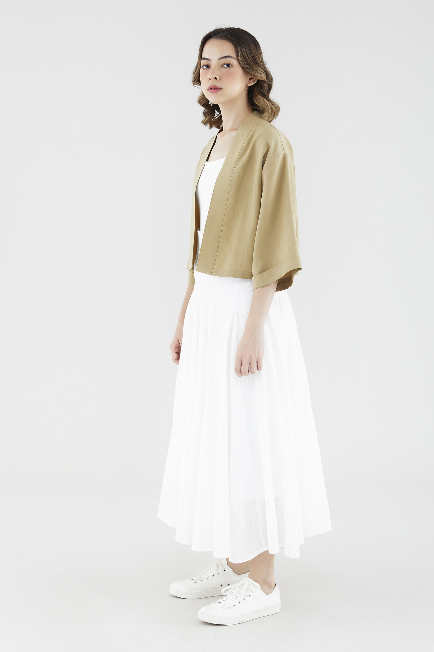 Rotation-ready. Cut from soft and unlined fabric, this oversized layering essential flaunts a timeless kimono silhouette, wide sleeves and a broad lapel panel. Fits relaxed in a cropped length.