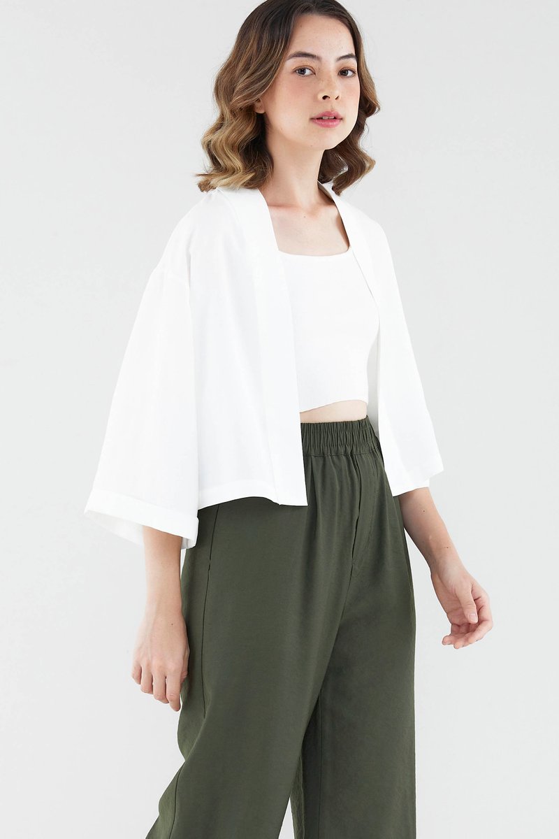 Rotation-ready. Cut from soft and unlined fabric, this oversized layering essential flaunts a timeless kimono silhouette, wide sleeves and a broad lapel panel. Fits relaxed in a cropped length.