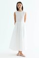 Rock the smock. Made from crisp and softly structured cotton, this sleeveless maxi dress features a gathered neckline and stretchy smocked bodice. Worn in an A-line silhouette that fits slim at the top before flowing out at the waist.