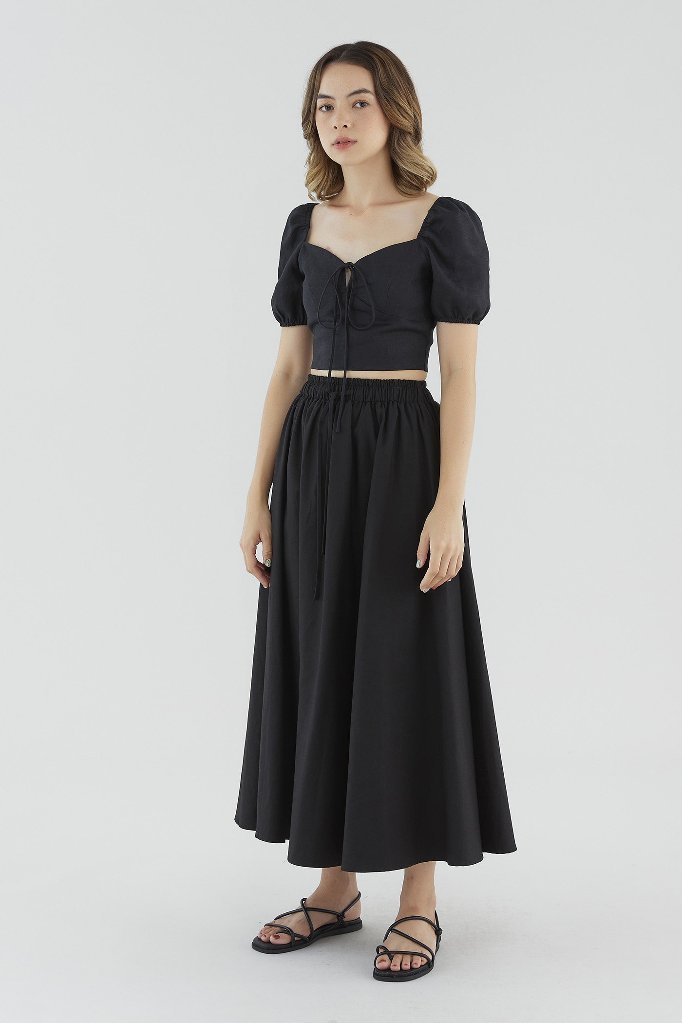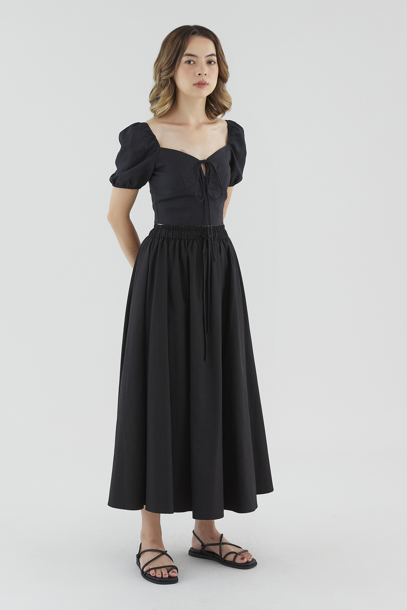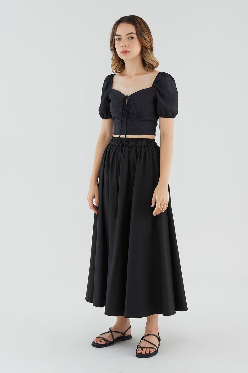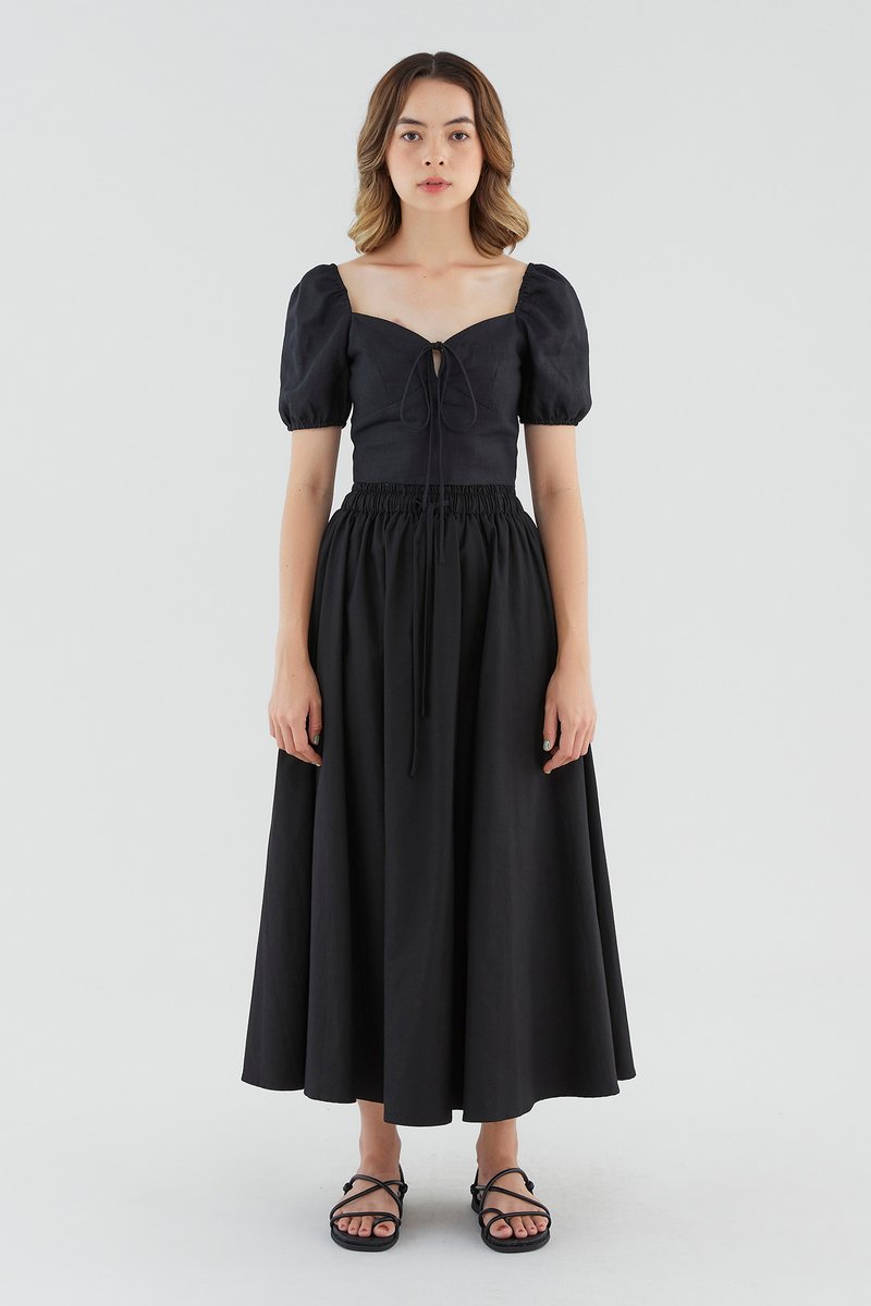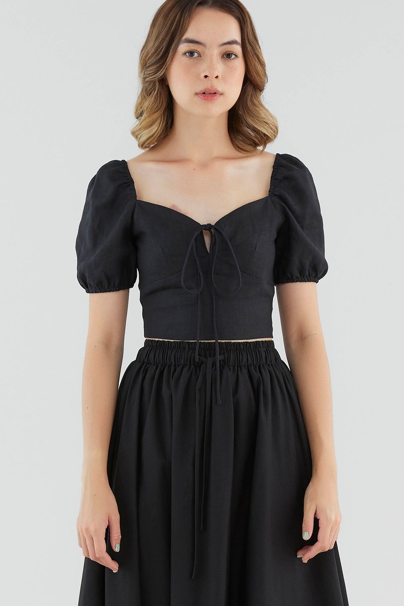 <p><span style="font-weight: 400;">Fabric composition: 100% Linen</span></p> <p><span style="font-weight: 400;">Lining: Full</span></p> <p><span style="font-weight: 400;">Sheerness: Not sheer</span></p> <p><span style="font-weight: 400;">Pockets: None</span></p> <p><span style="font-weight: 400;">Look casually put-together. Made from lightweight and non-stretch 100% linen, this blouse features short puff sleeves with an elasticated hem, a self-tie closure on the front and a subtle sweetheart neckline. Worn in a slim fit and cropped length. </span></p> <p><span style="font-weight: 400;">Care Instructions: Do not soak / Do not bleach / Handwash or Machine wash on gentle mode / Do not machine dry / Iron using low heat</span></p> <p><i><span style="font-weight: 400;">This piece is made from 100% linen, the unsung hero of hot days and one of the least environmentally damaging fabrics. Derived from the unfussy flax plant, not only does its cultivation consume significantly less water, pesticides and arable land — but linen’s excellent durability and biodegradable nature also means your clothes have a longer, more waste-free life cycle.</span></i></p>