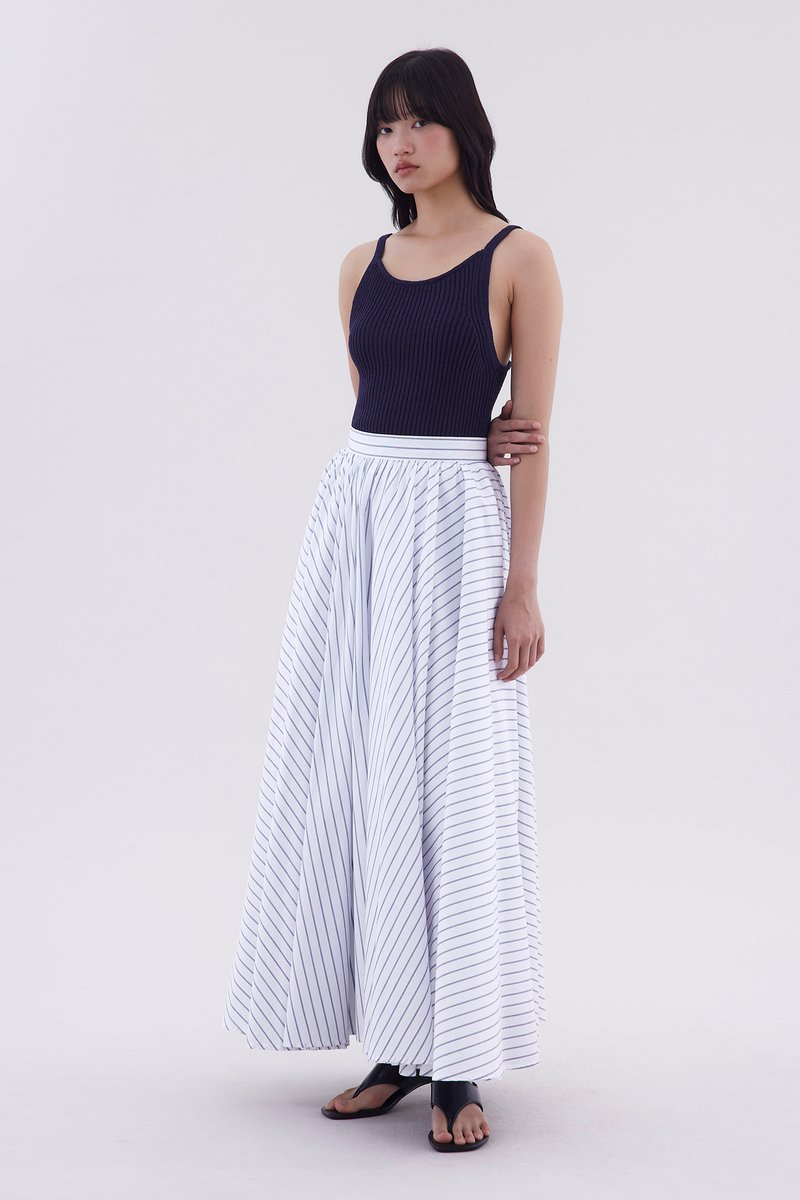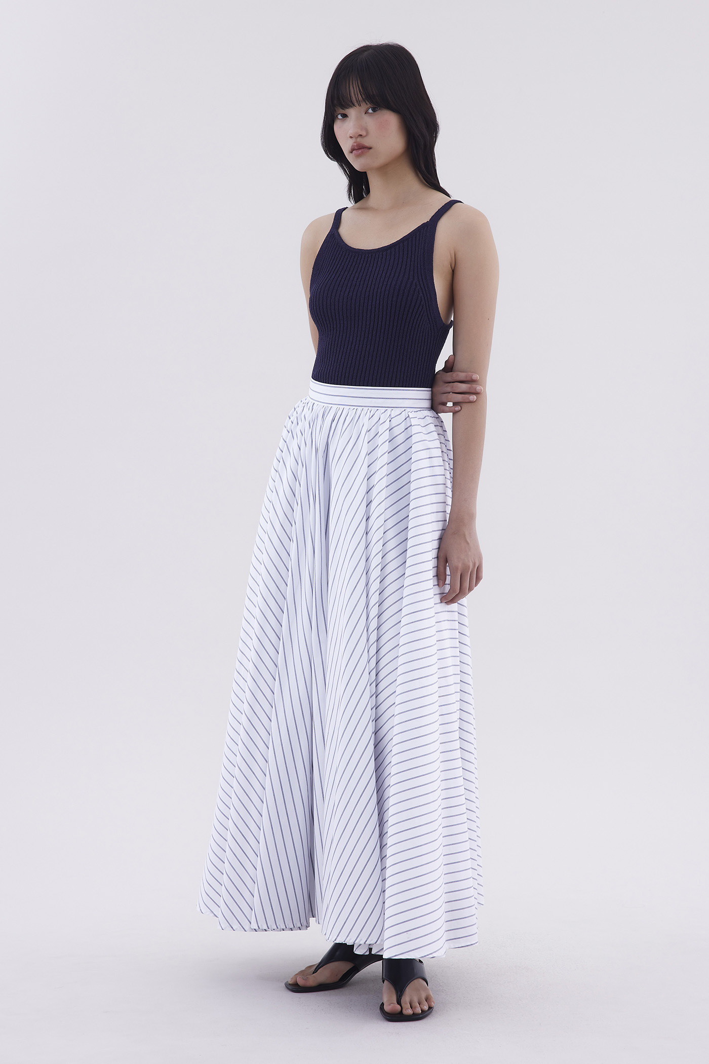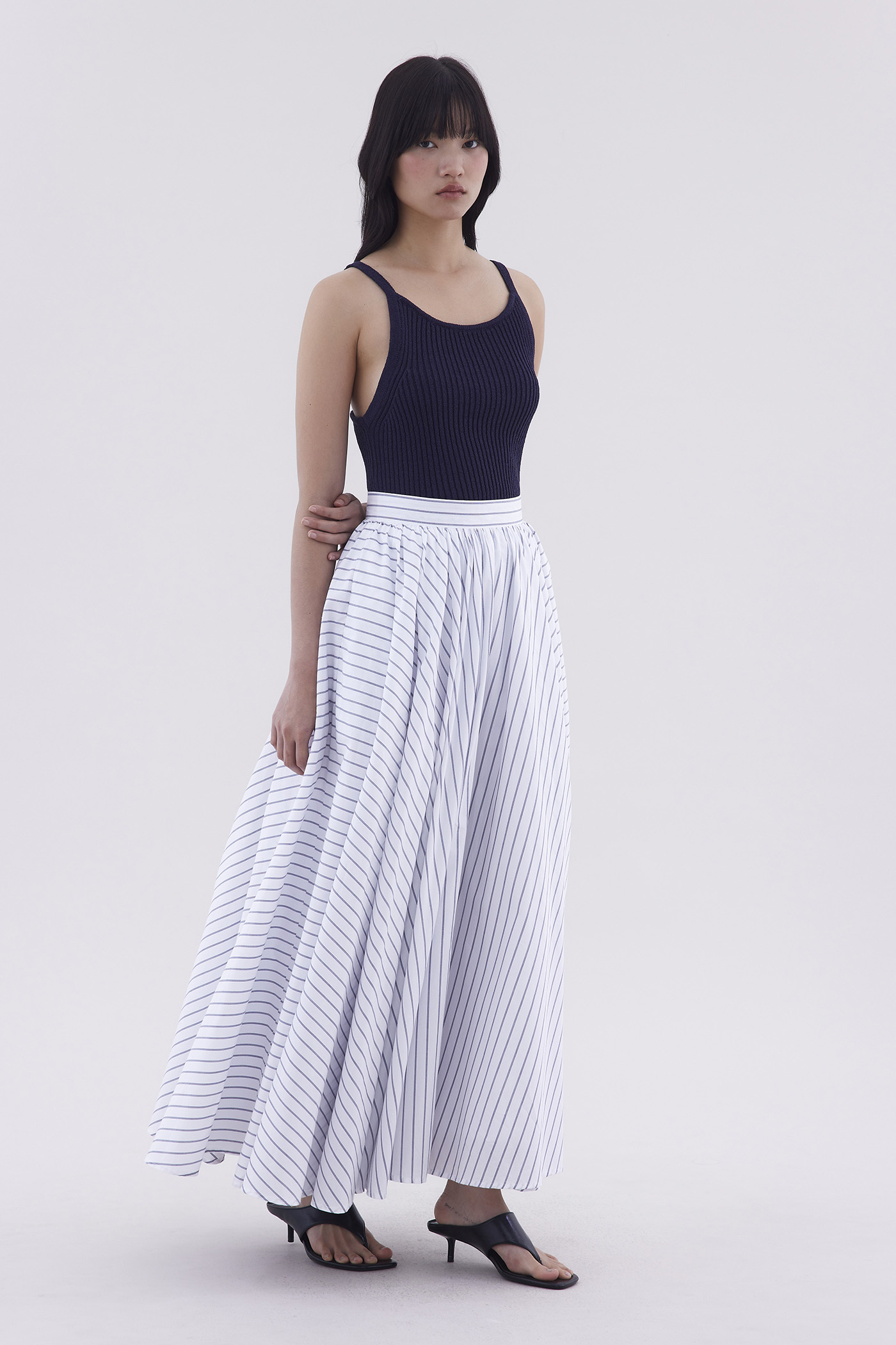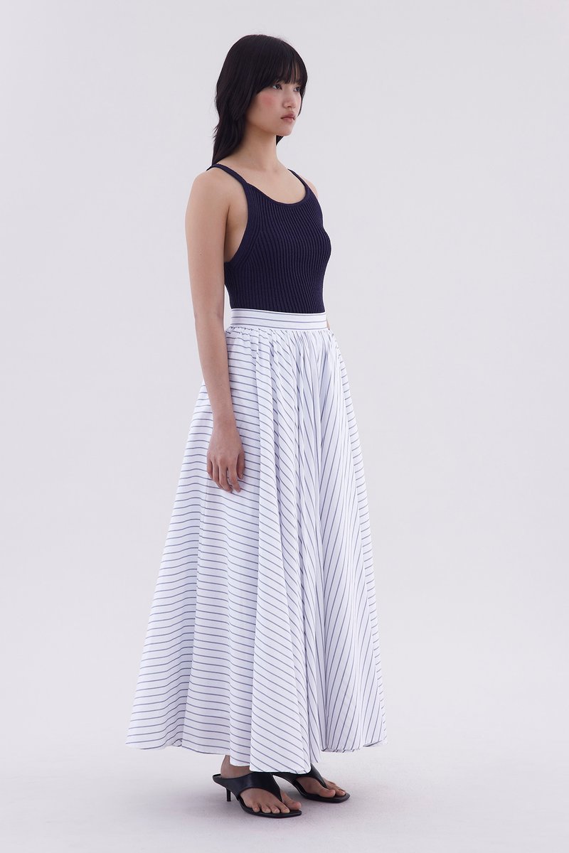 Volume up. Cut from smooth and softly structured cotton, this maxi skirt features a gathered waist, back zip closure and a voluminous A-line silhouette.