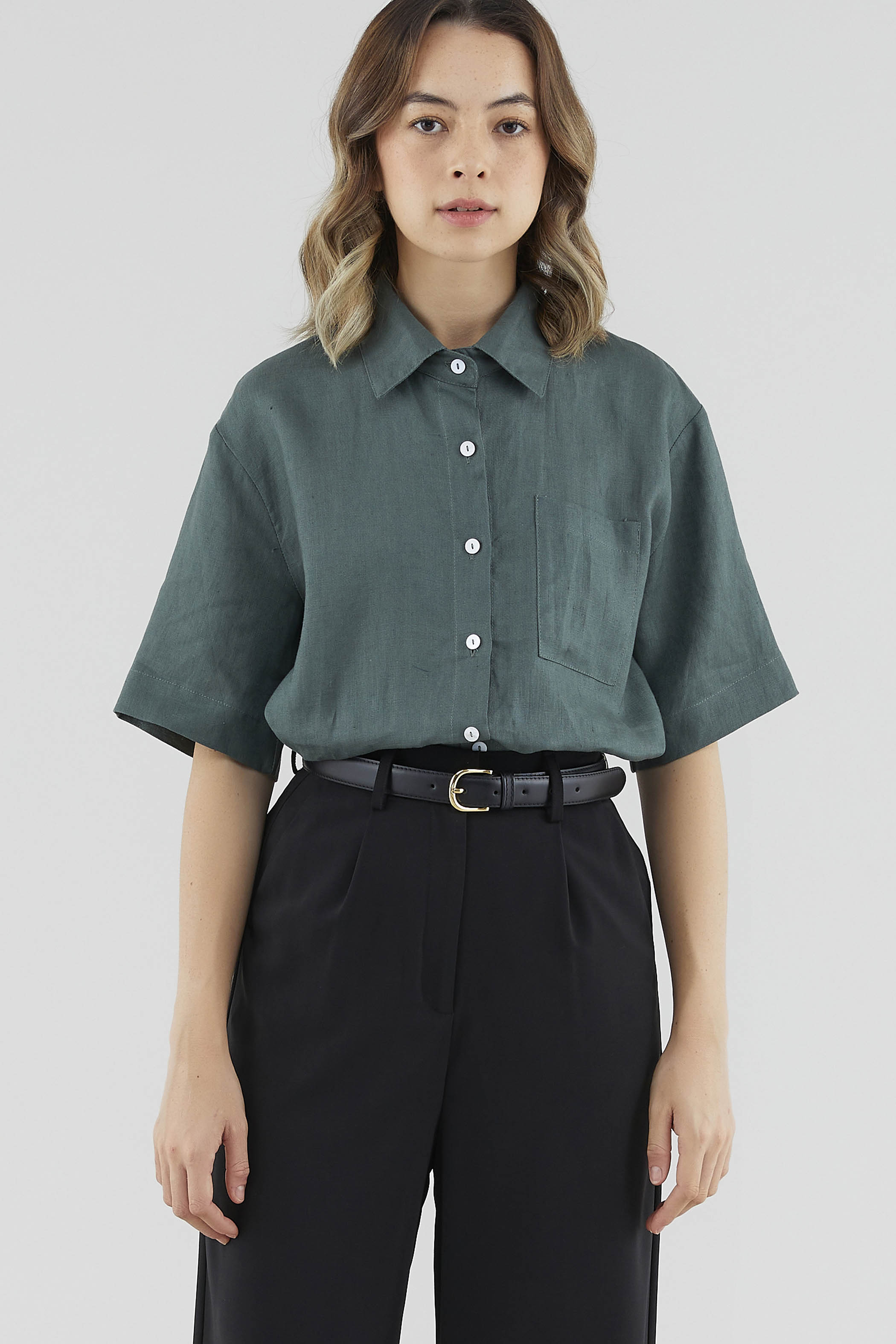 This piece is made from 100% linen, the unsung hero of hot days and one of the least environmentally damaging fabrics. Derived from the unfussy flax plant, not only does its cultivation consume significantly less water, pesticides and arable land — but linen’s excellent durability and biodegradable nature also means your clothes have a longer, more waste-free life cycle.