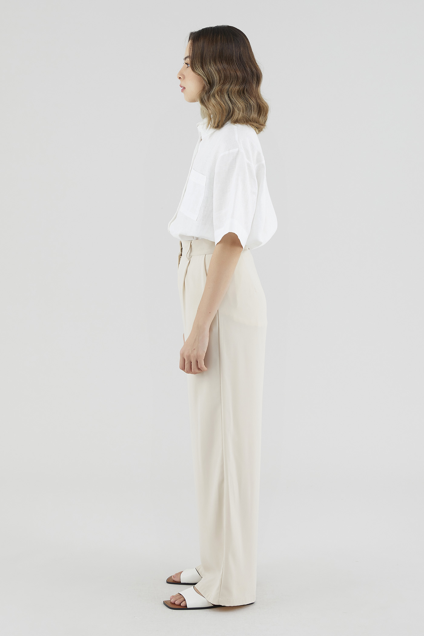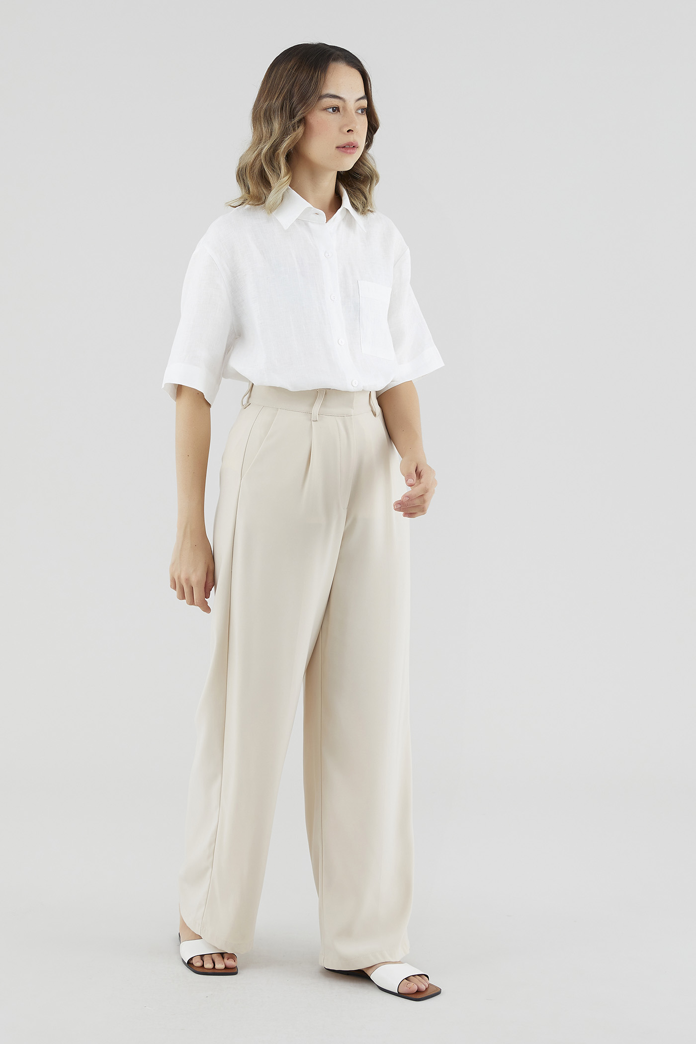 This piece is made from 100% linen, the unsung hero of hot days and one of the least environmentally damaging fabrics. Derived from the unfussy flax plant, not only does its cultivation consume significantly less water, pesticides and arable land — but linen’s excellent durability and biodegradable nature also means your clothes have a longer, more waste-free life cycle.