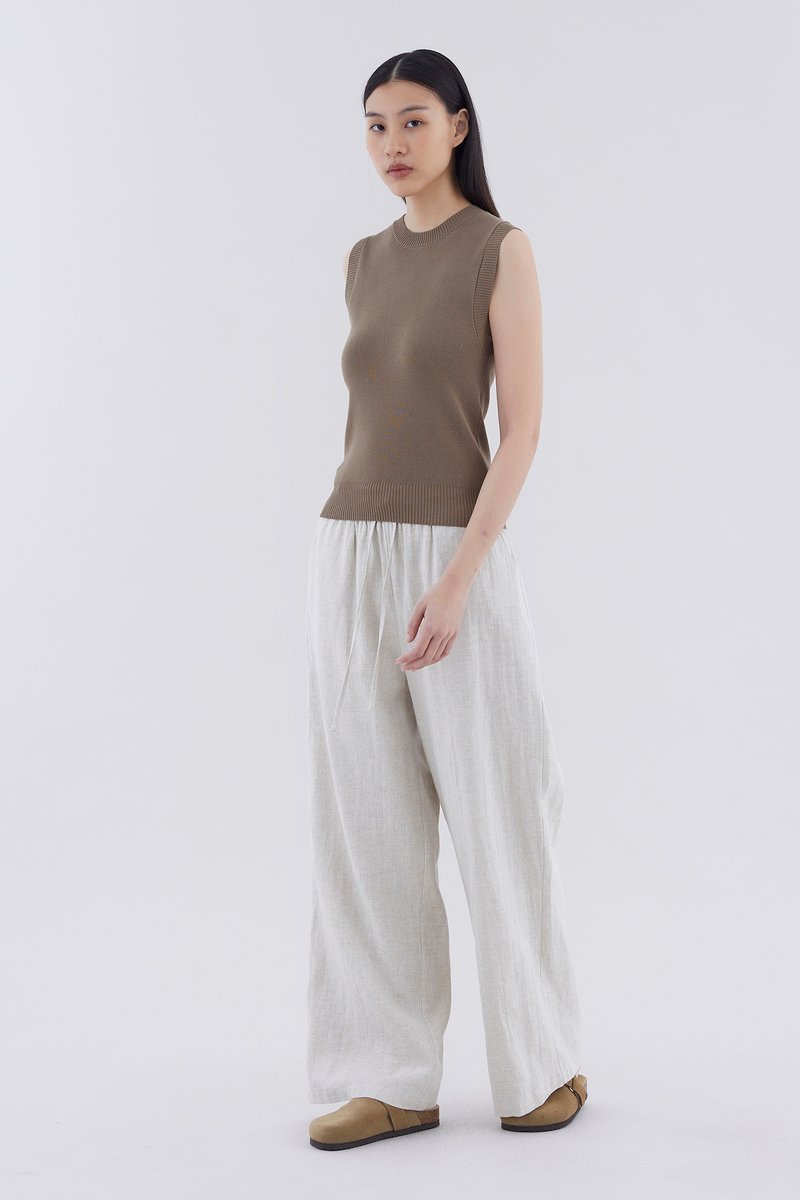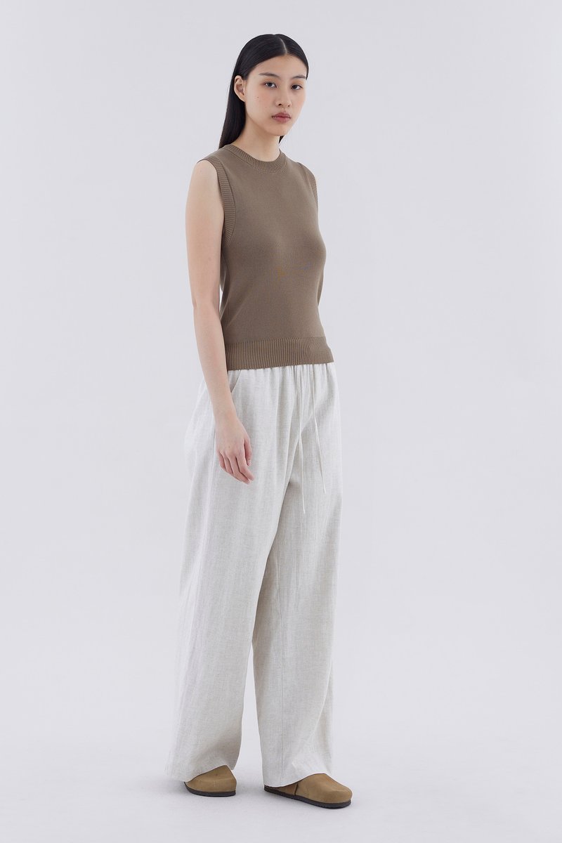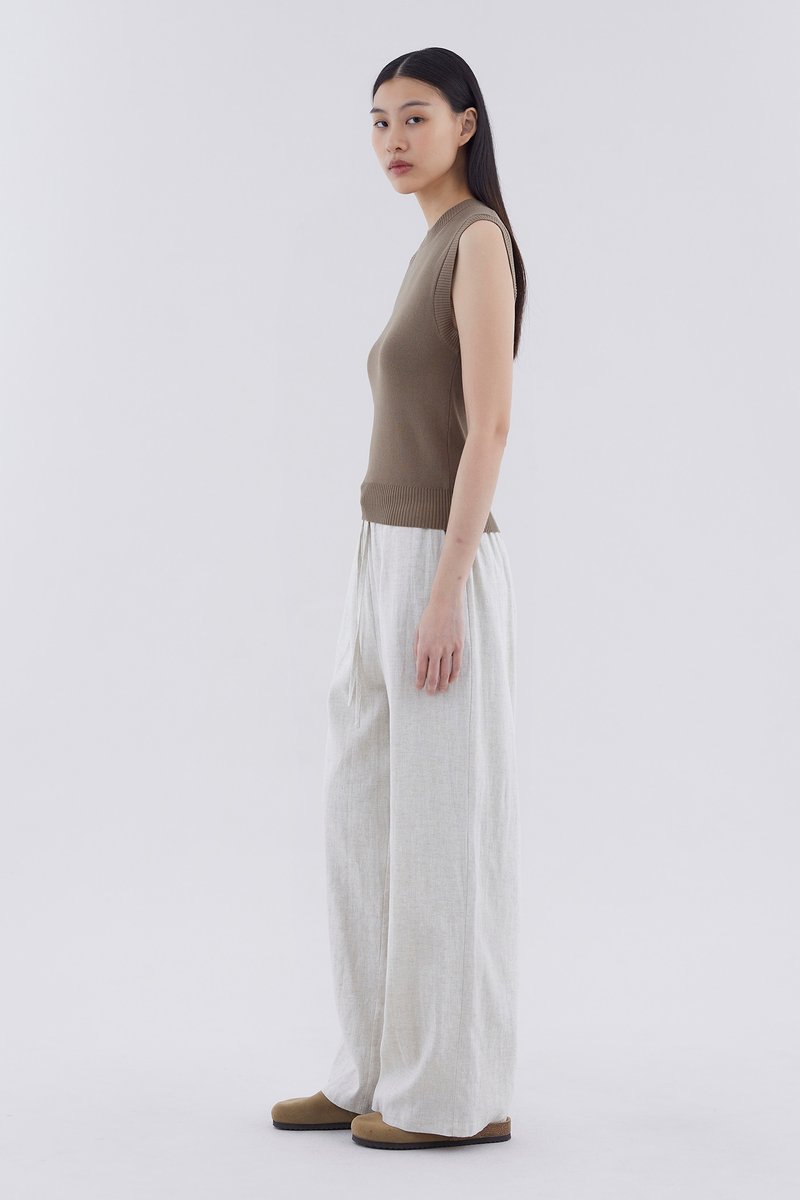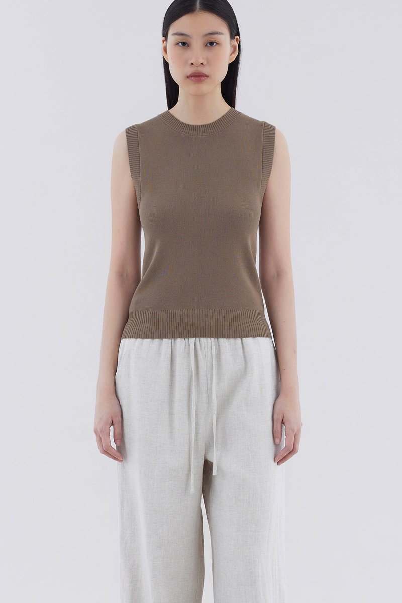 Hot stuff. Made from soft and stretchy knit, this sleeveless tank features a round ribbed neckline as well as a ribbed hemline. Worn in a slim fit.