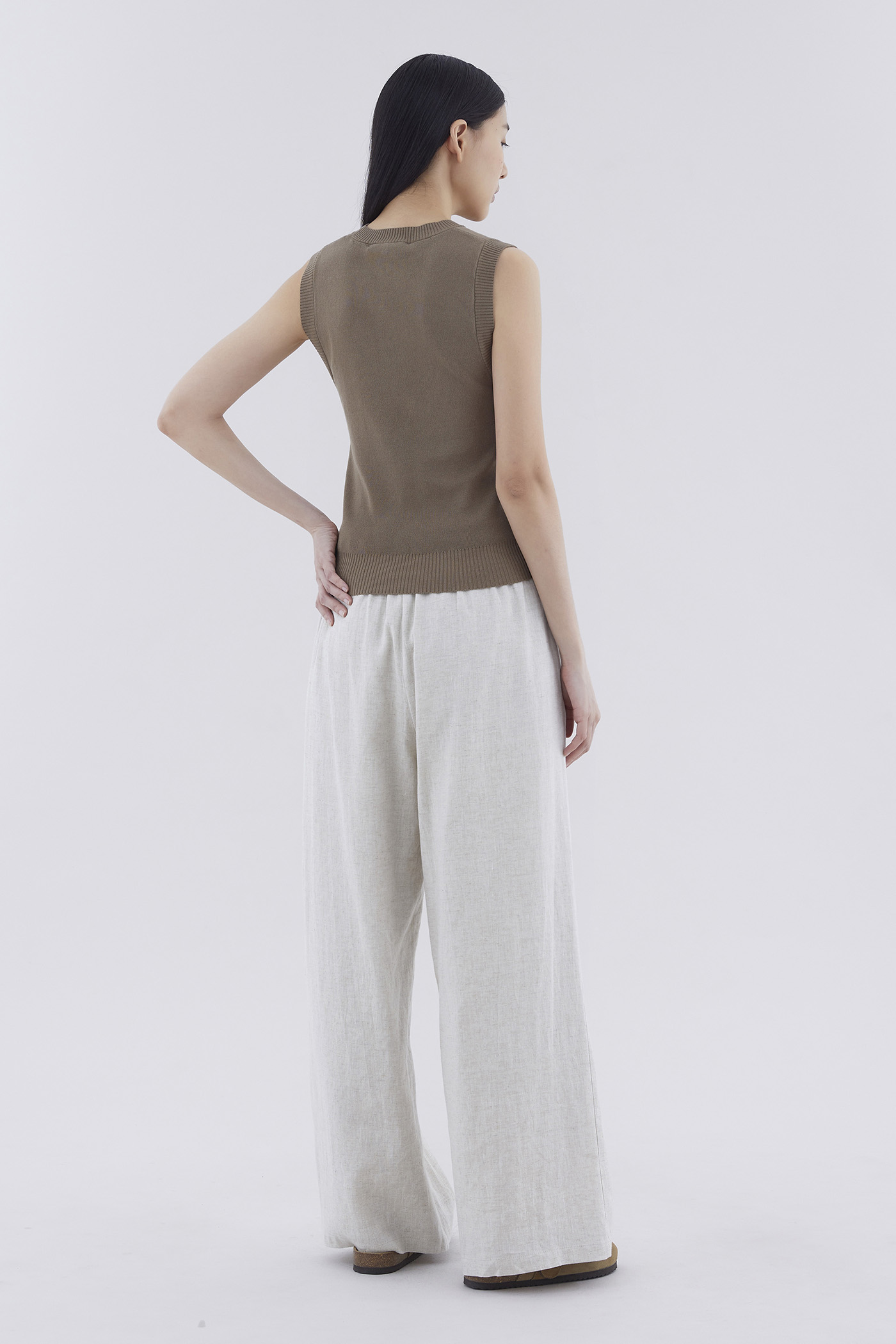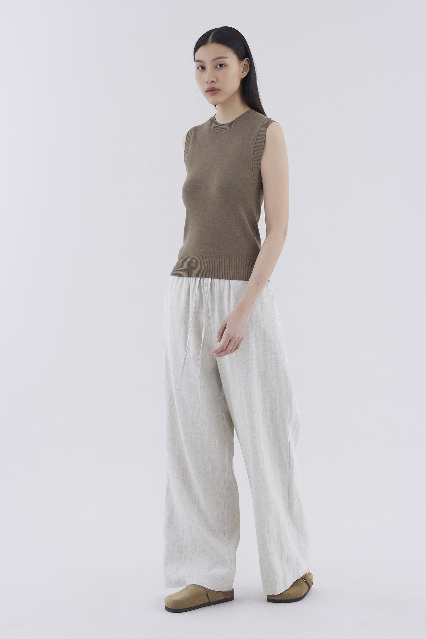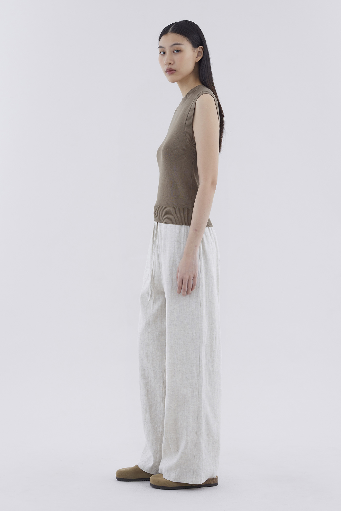 Hot stuff. Made from soft and stretchy knit, this sleeveless tank features a round ribbed neckline as well as a ribbed hemline. Worn in a slim fit.