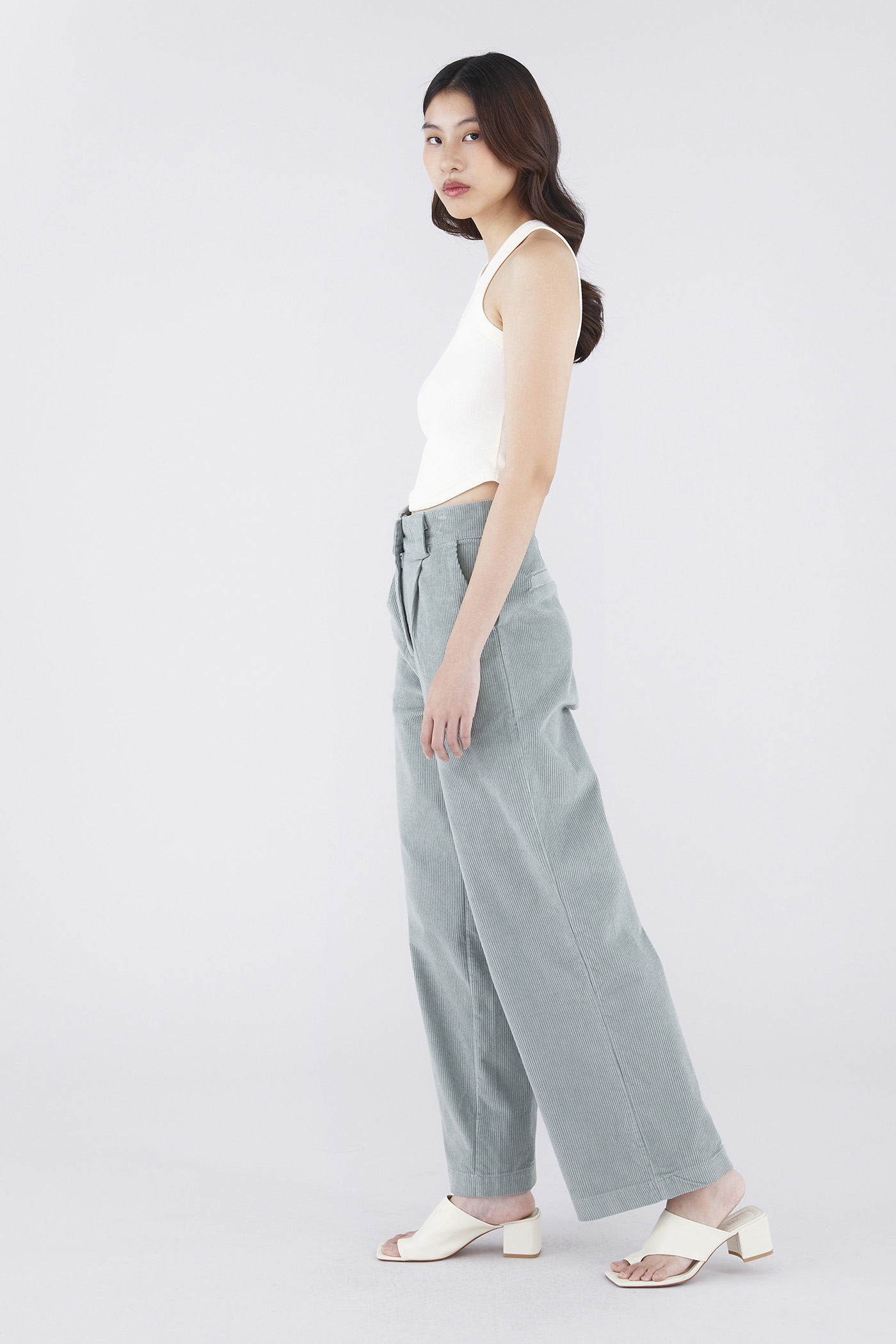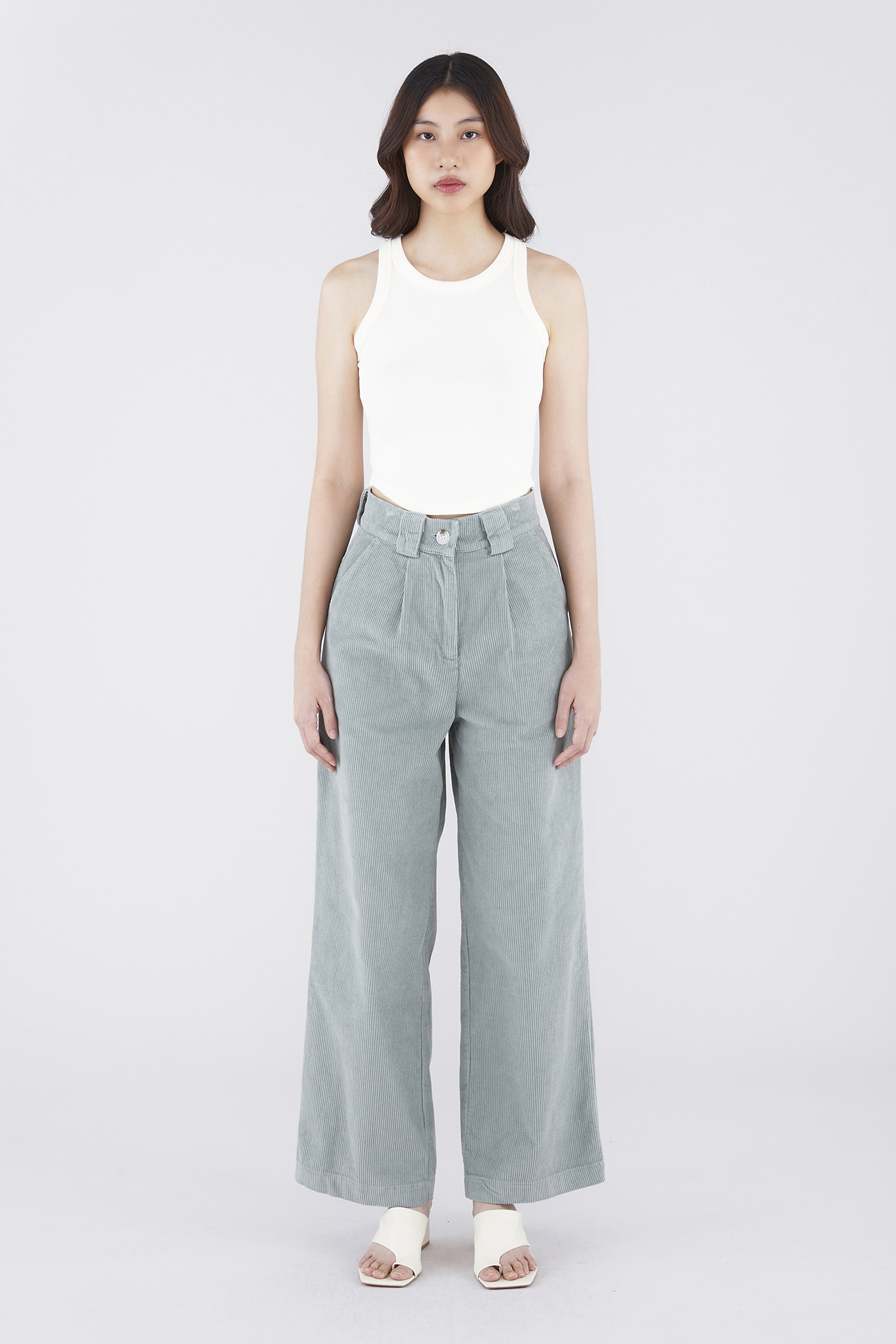 Something new. Made from soft and velvety corduroy, these high-waisted pants feature wide legs, oversized belt loops and a front zip and button closure. Worn in a relaxed fit.