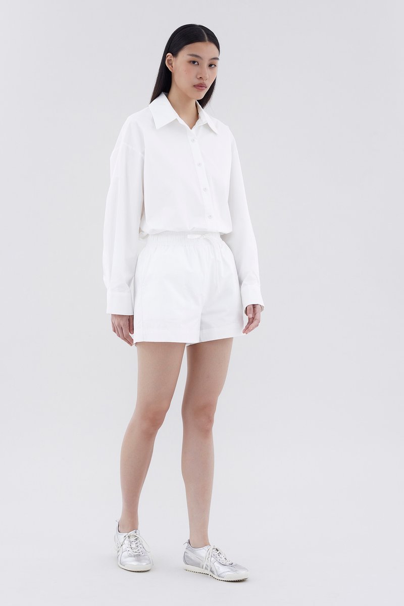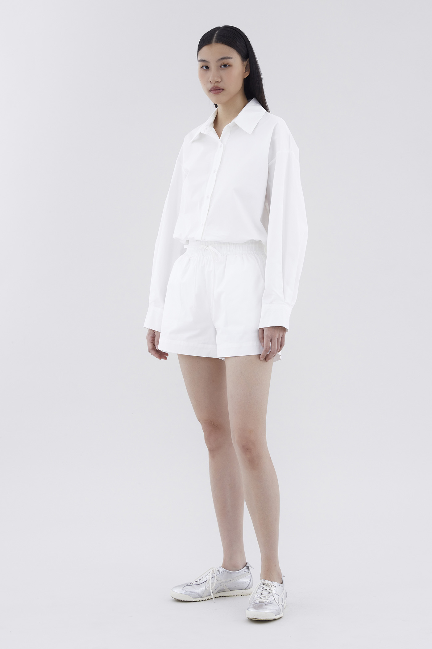 Staple cuts. Made from crisp and non-stretch cotton, this shirt features long sleeves with a buttoned hem, a front button-down closure and a flattering oversized silhouette. Worn in a relaxed fit.