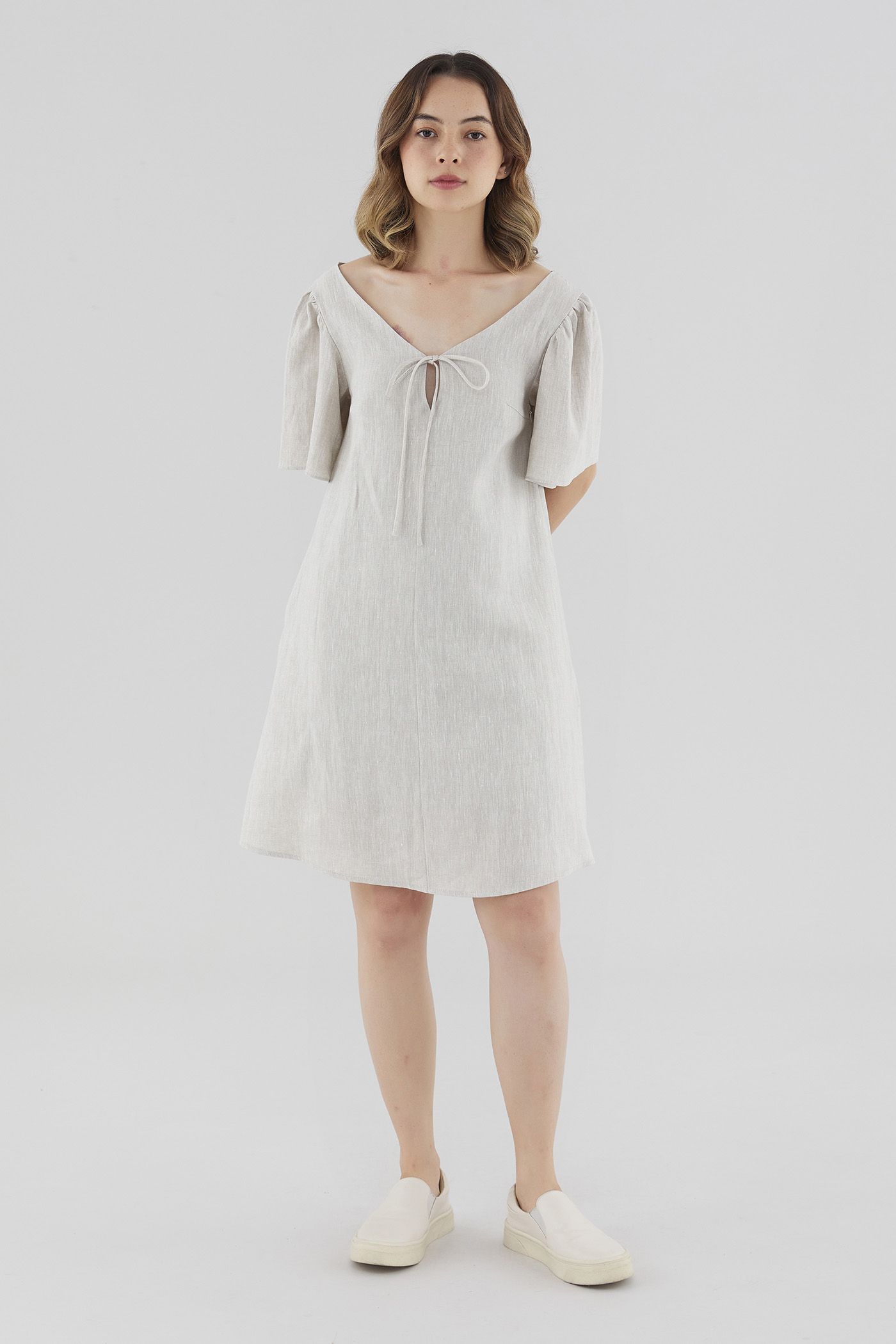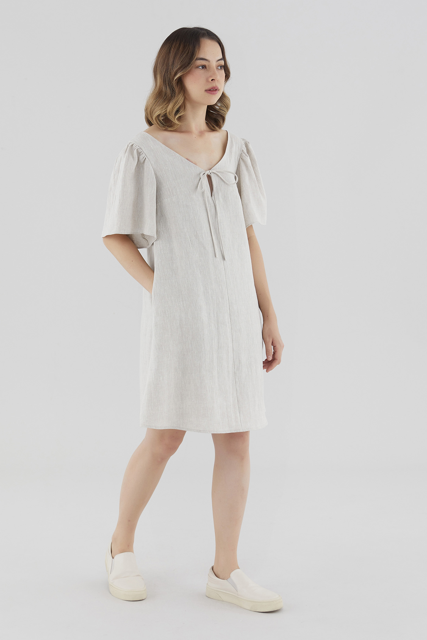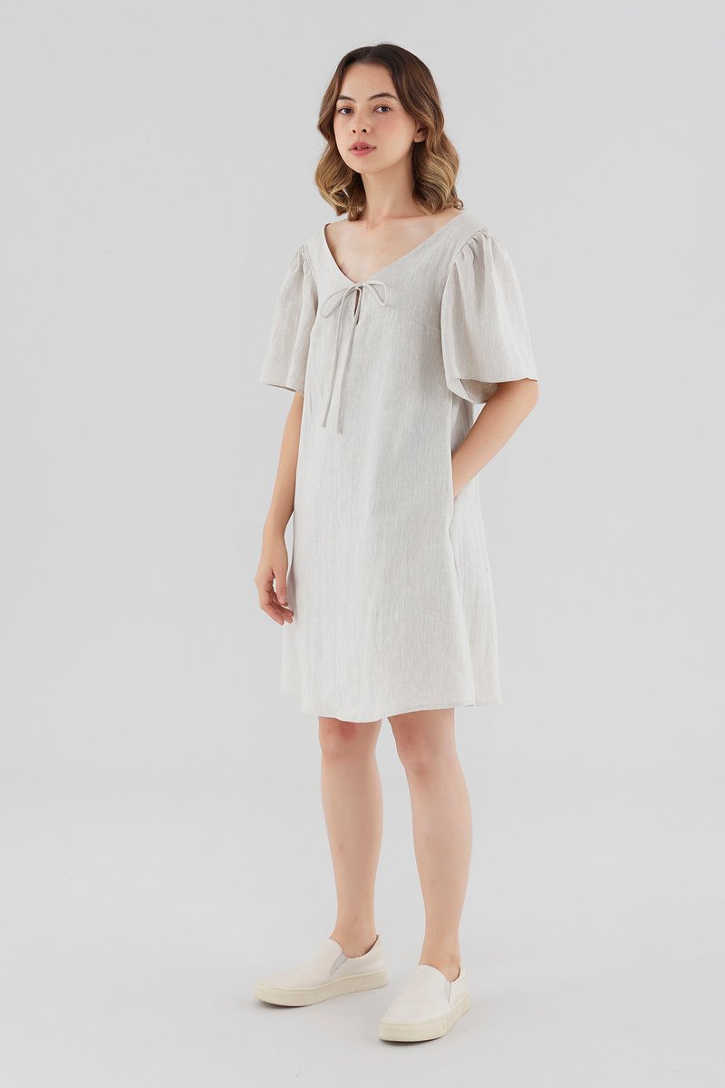 Kalinda Linen V-Neck Dress