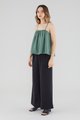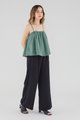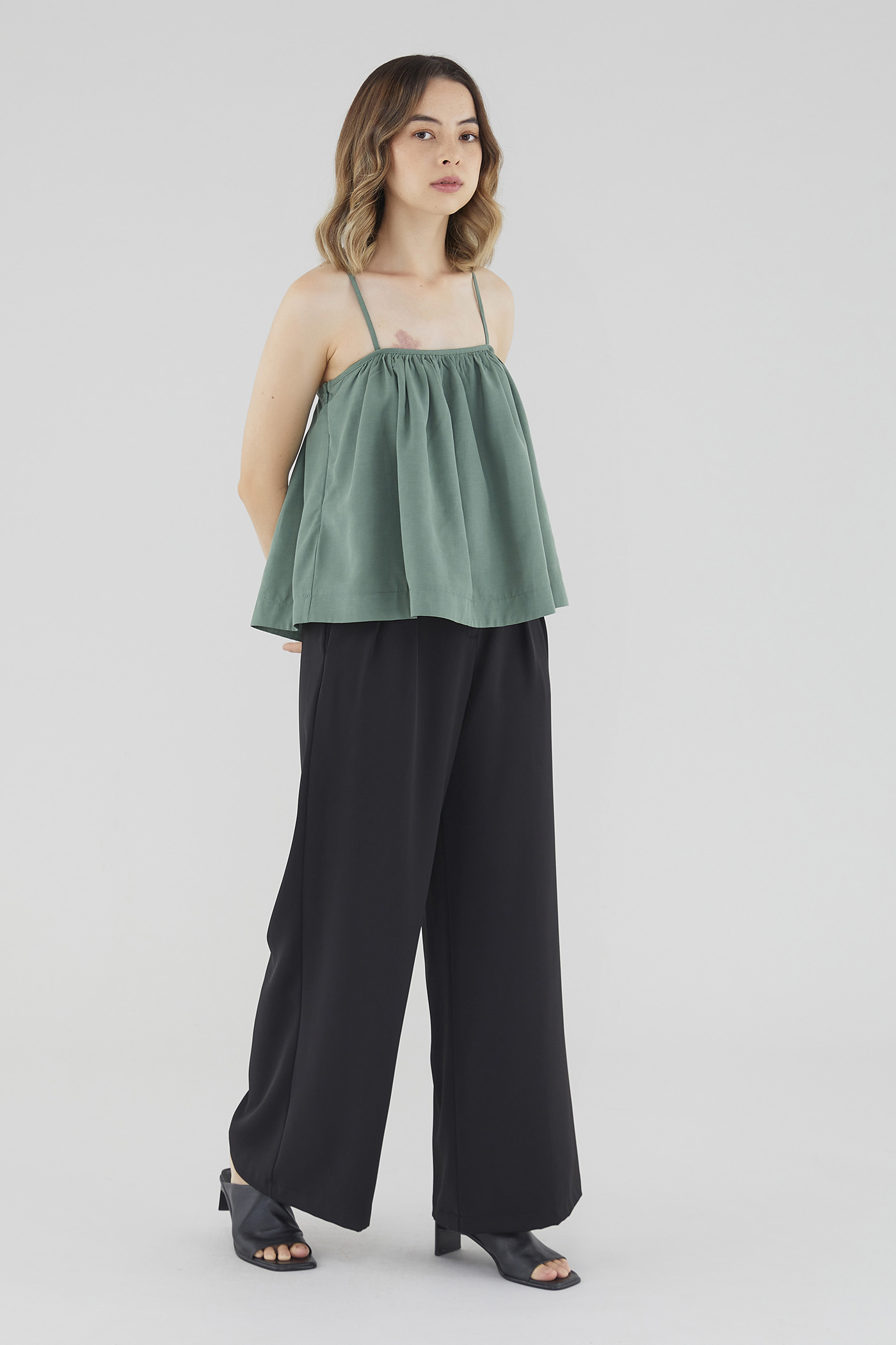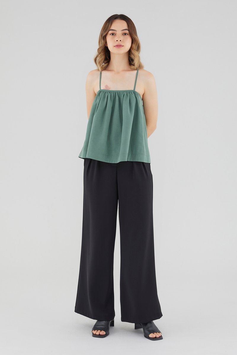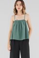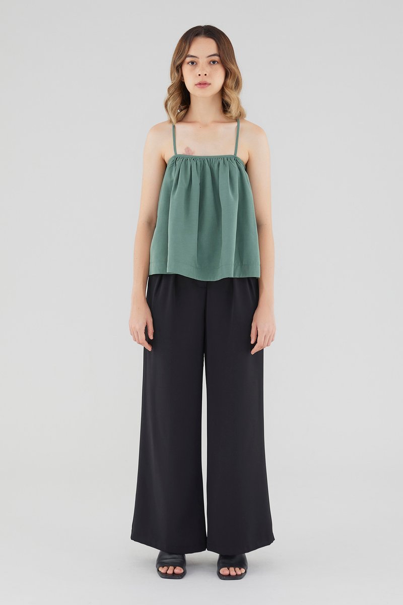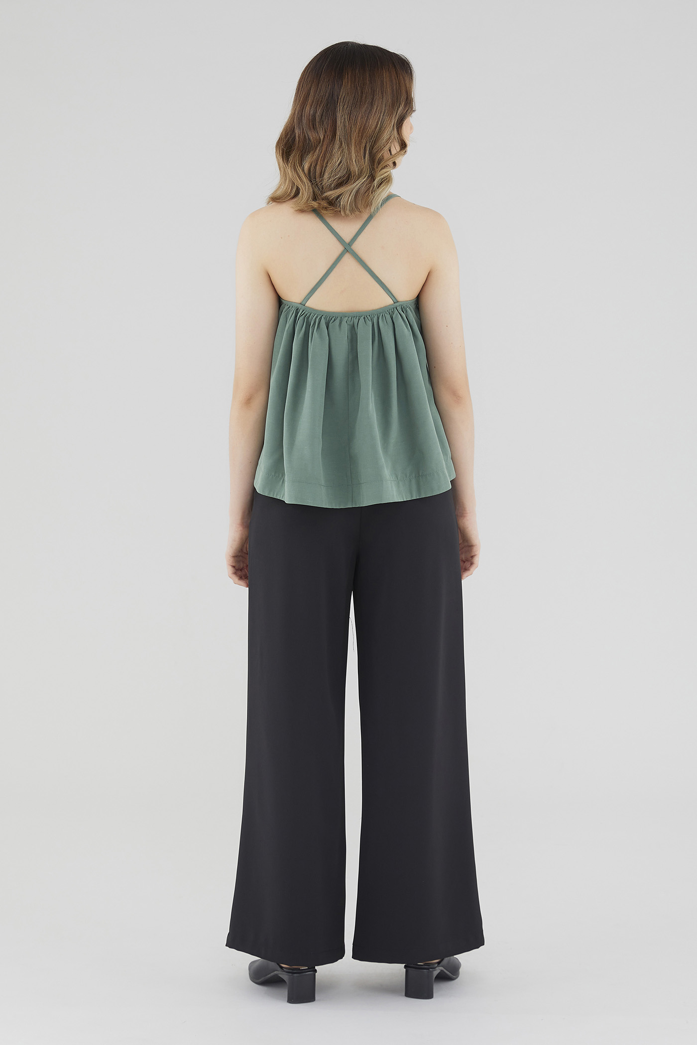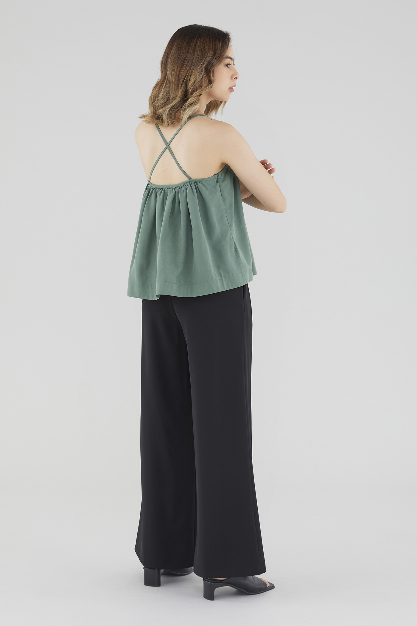 Versatile volume. Made from non-stretch fabric with a structured drape, this sleeveless top features a gathered straight neckline, slim non-adjustable straps that cross over at the back and a side zip closure. Fits relaxed in a flattering tent silhouette.