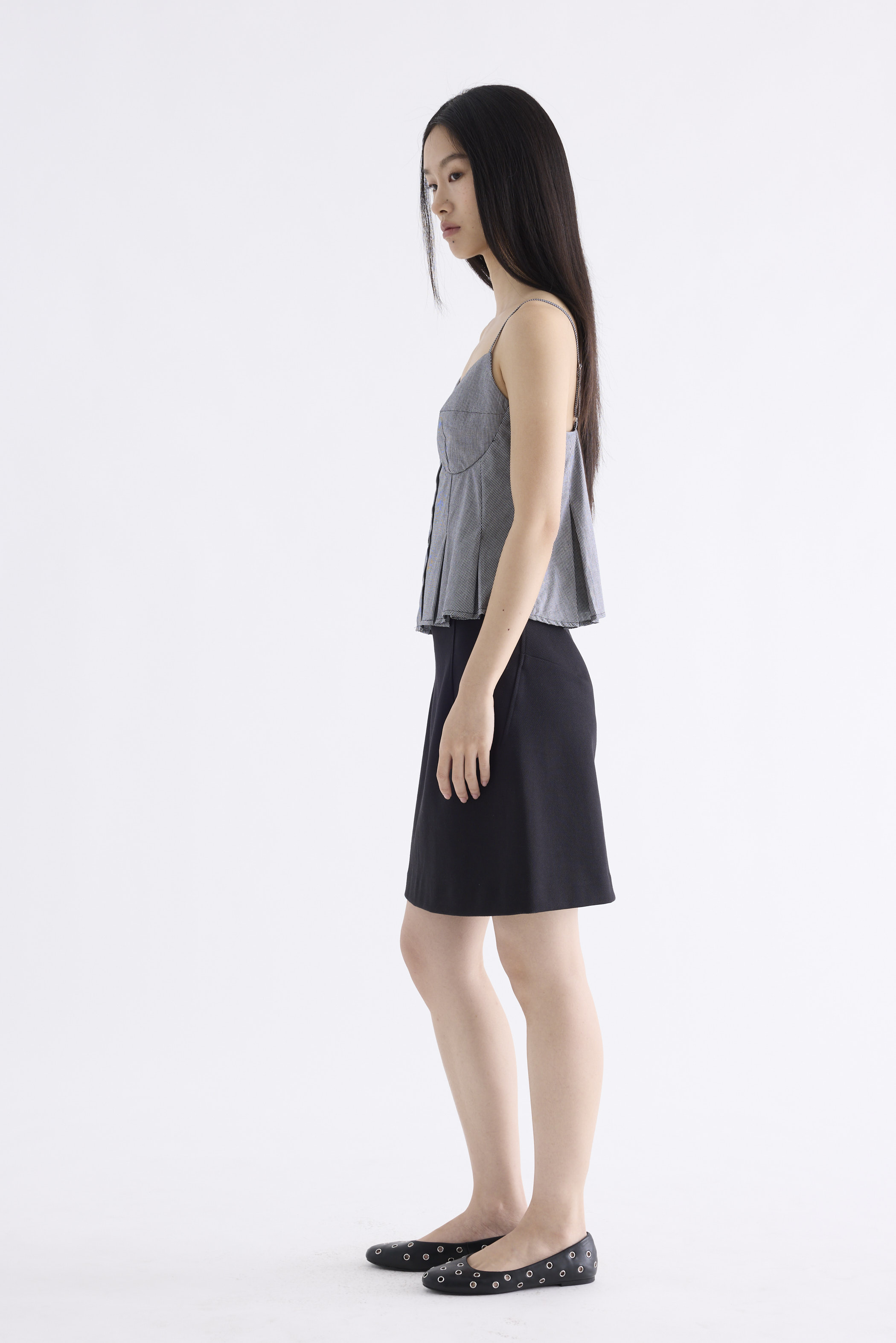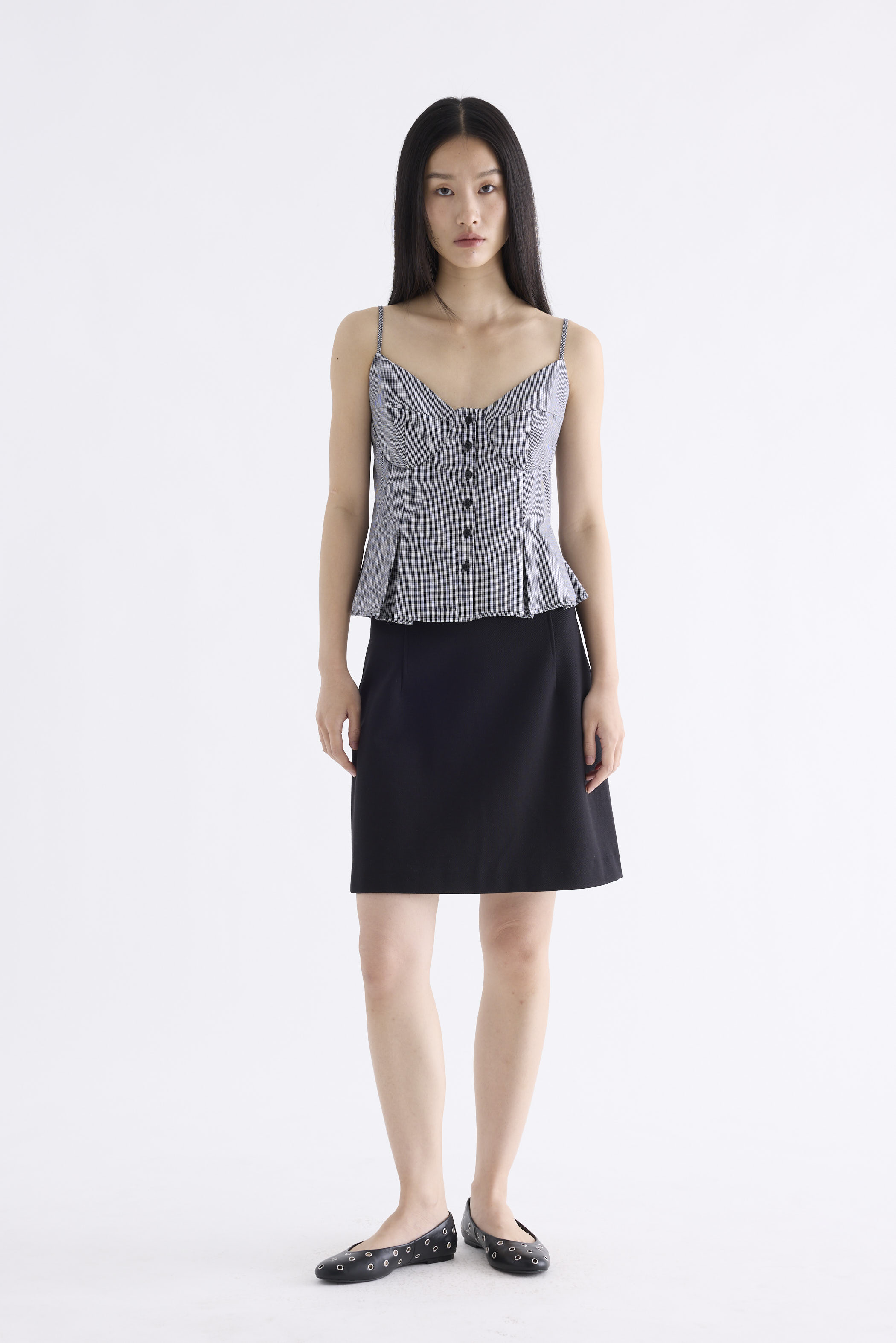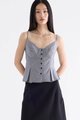 From the Postscript collection. This sleeveless top features a bustier neckline, pleats, a button-down front and adjustable shoulder straps. Fits slim.