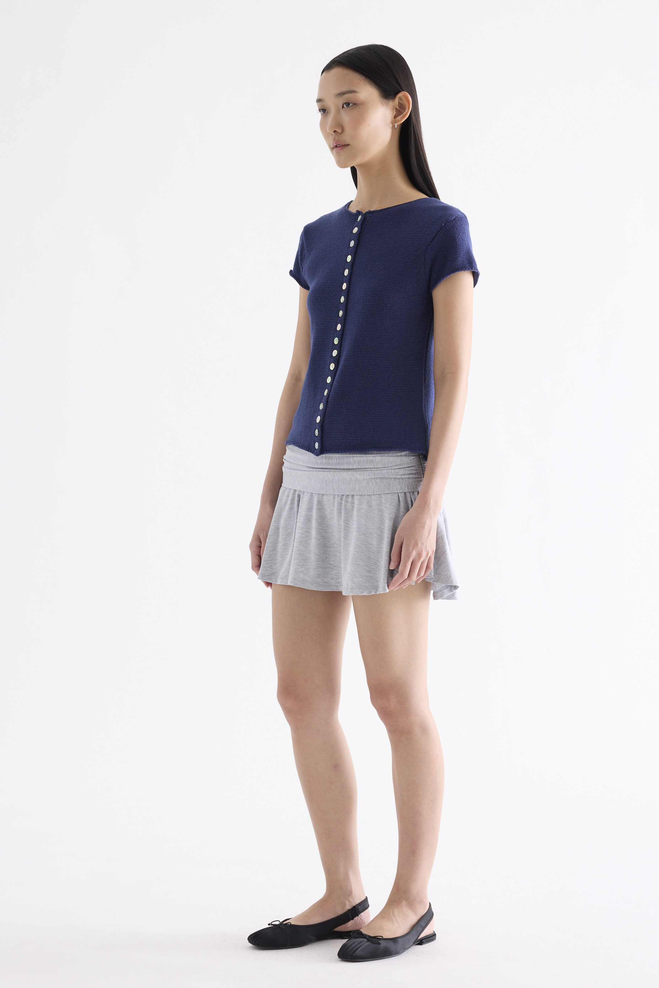 Subtle details. Made from soft and cosy knit, this top features a round neckline, button-down front and rolled hem. Worn in a slim fit.