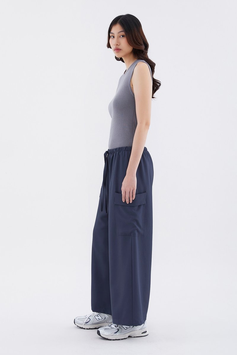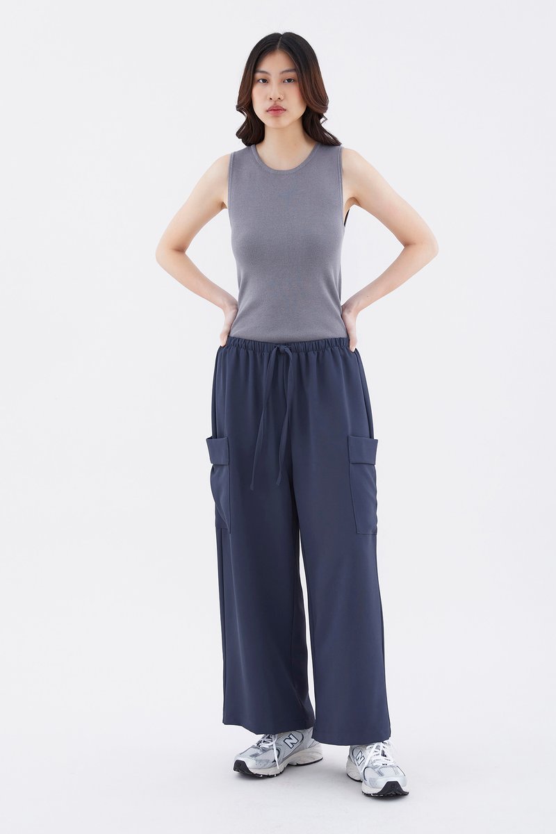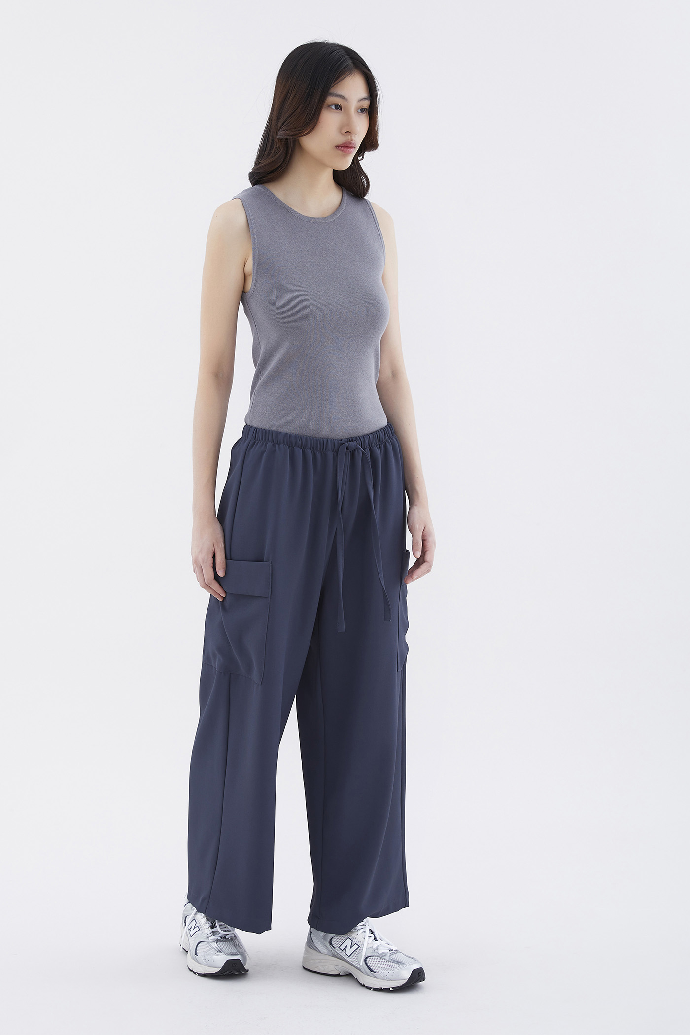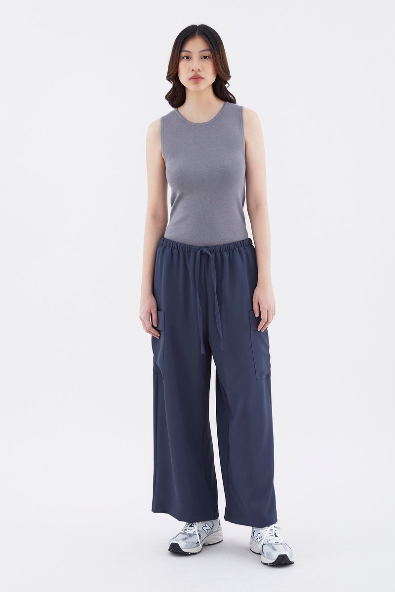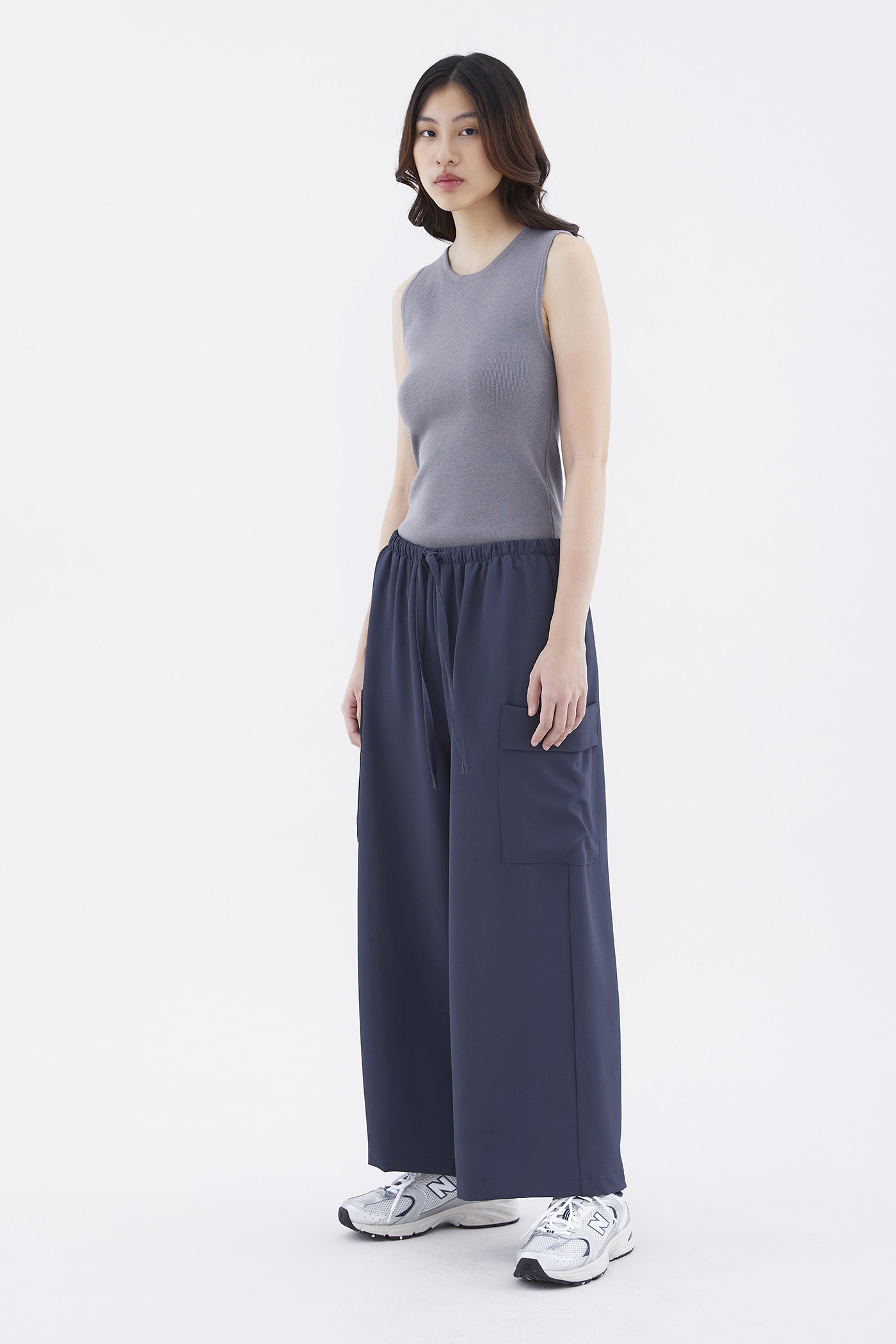 Big pocket energy. Made from drapey, non-stretch fabric, these mid-waisted pants feature wide legs with oversized pockets and an elasticated drawstring waistband. Worn in a relaxed fit.