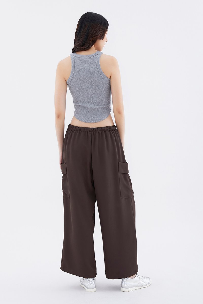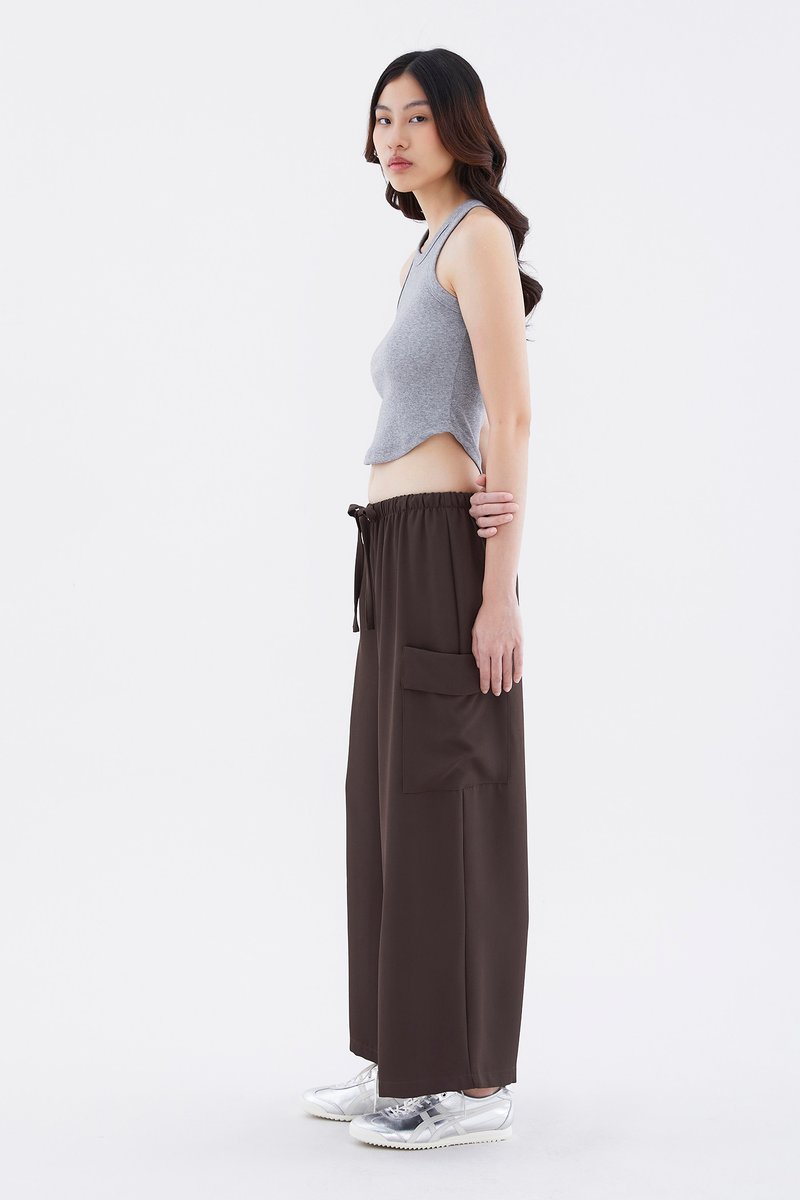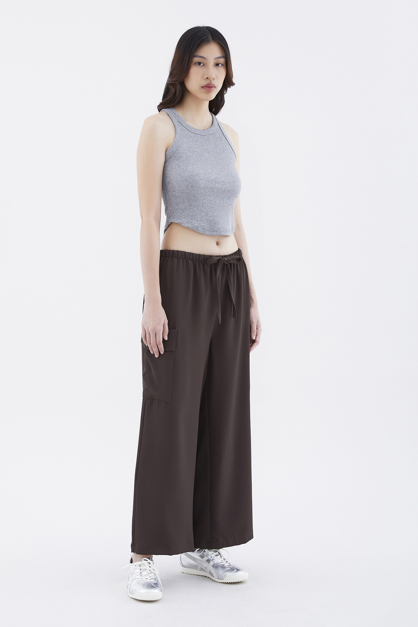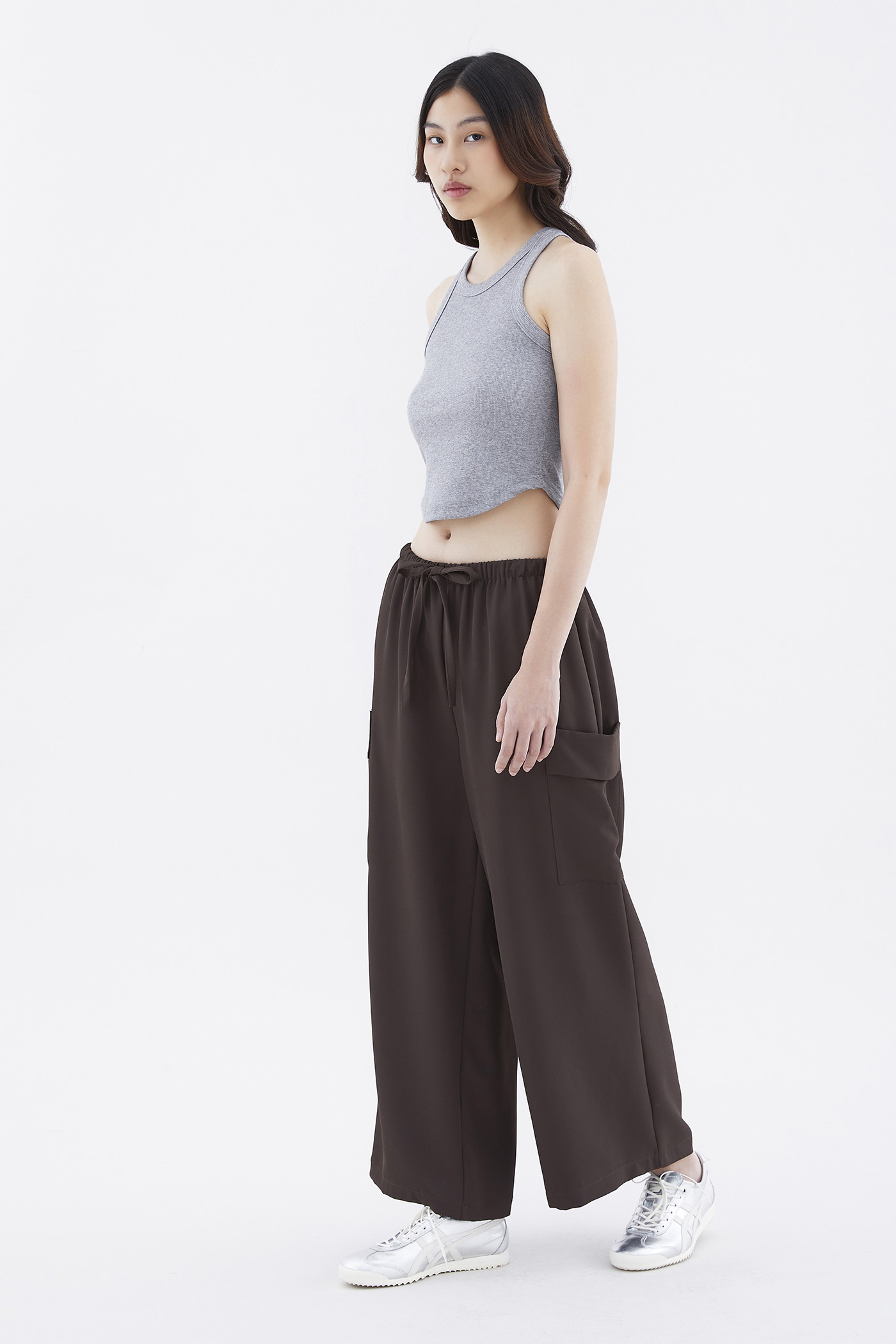 Big pocket energy. Made from drapey, non-stretch fabric, these mid-waisted pants feature wide legs with oversized pockets and an elasticated drawstring waistband. Worn in a relaxed fit.