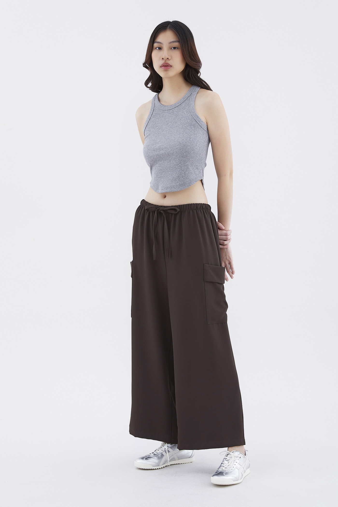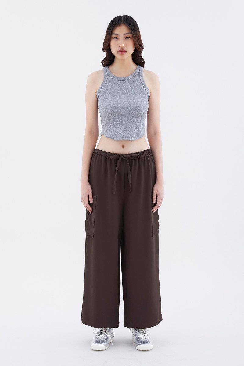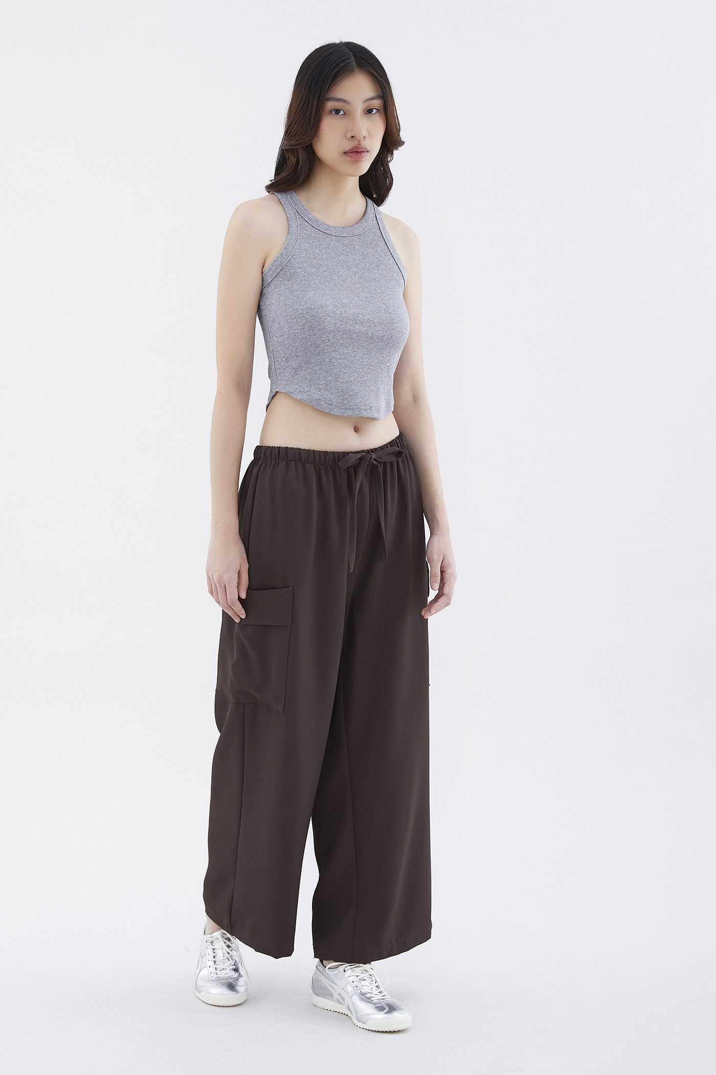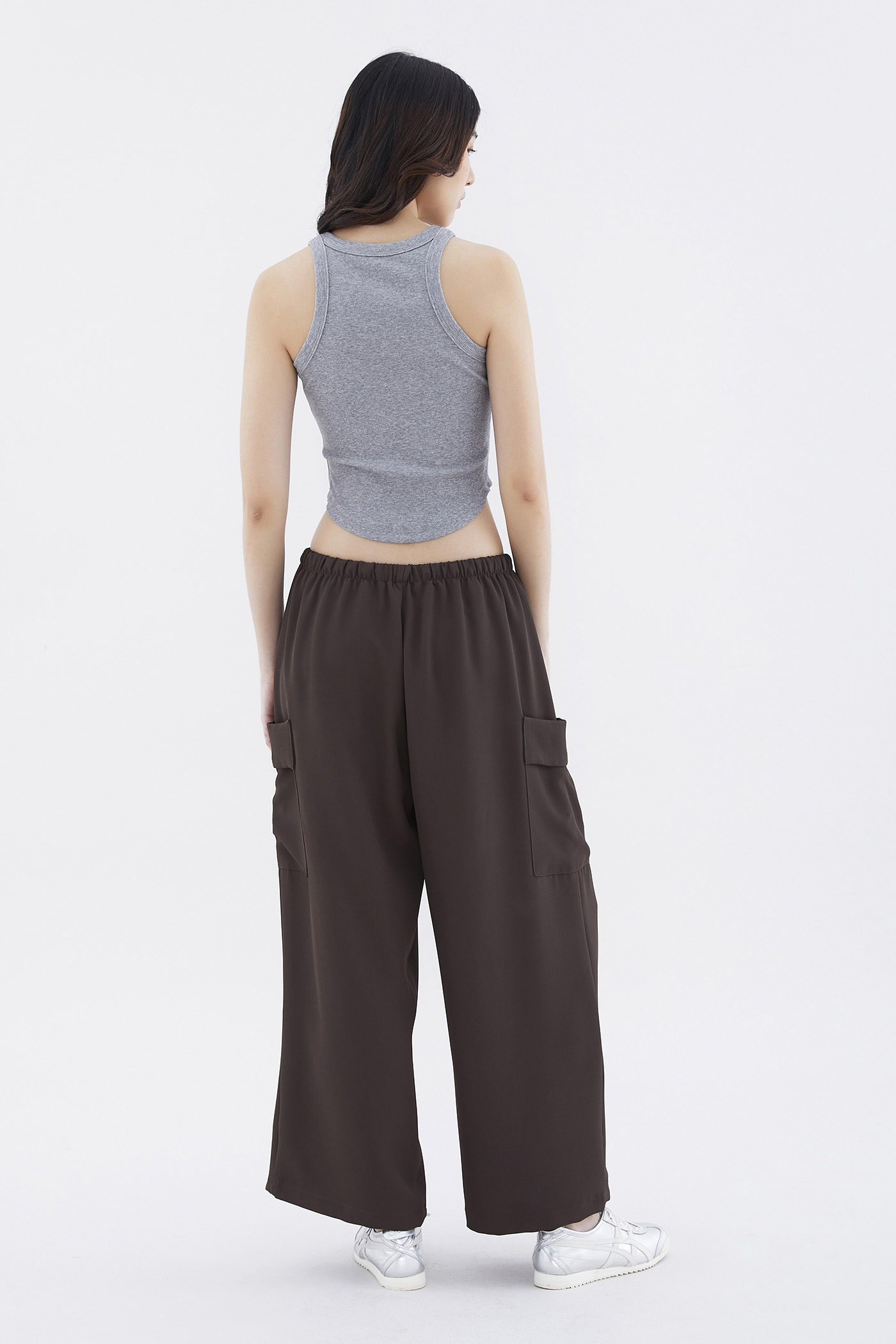 Big pocket energy. Made from drapey, non-stretch fabric, these mid-waisted pants feature wide legs with oversized pockets and an elasticated drawstring waistband. Worn in a relaxed fit.