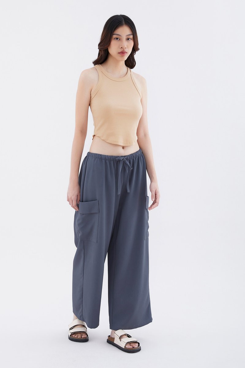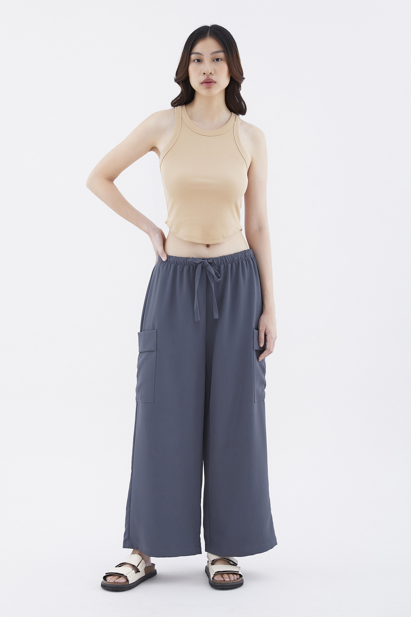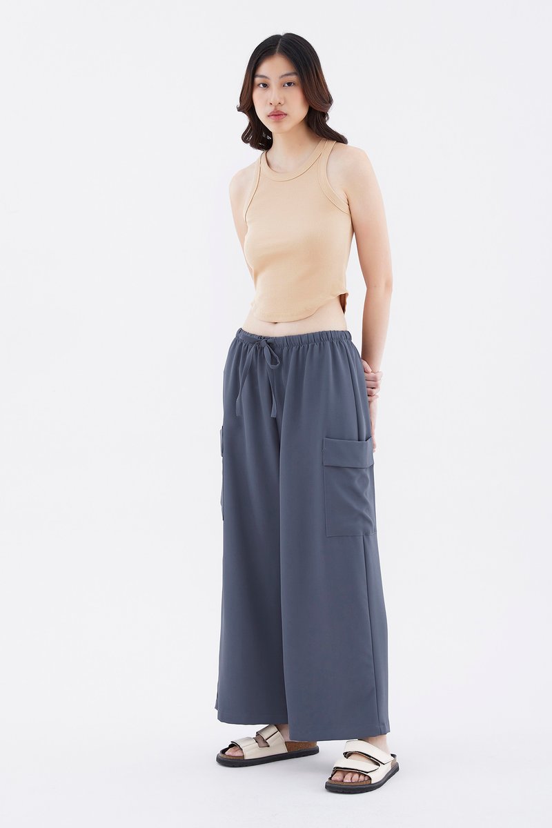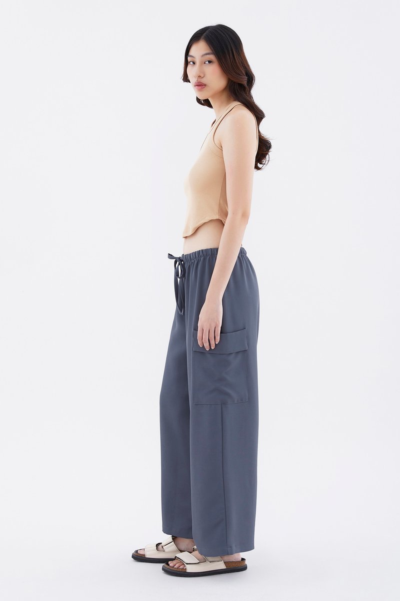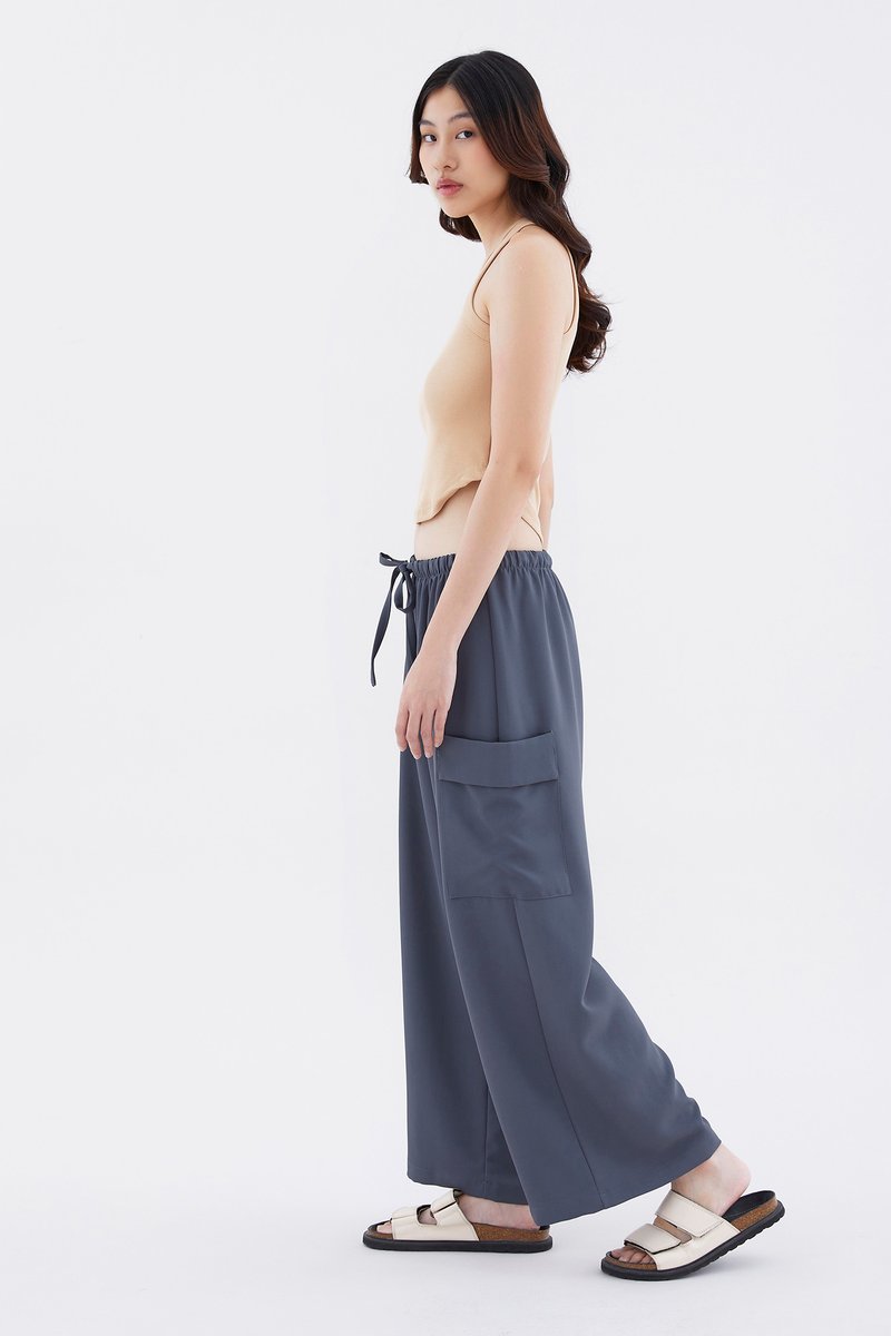 Big pocket energy. Made from drapey, non-stretch fabric, these mid-waisted pants feature wide legs with oversized pockets and an elasticated drawstring waistband. Worn in a relaxed fit.