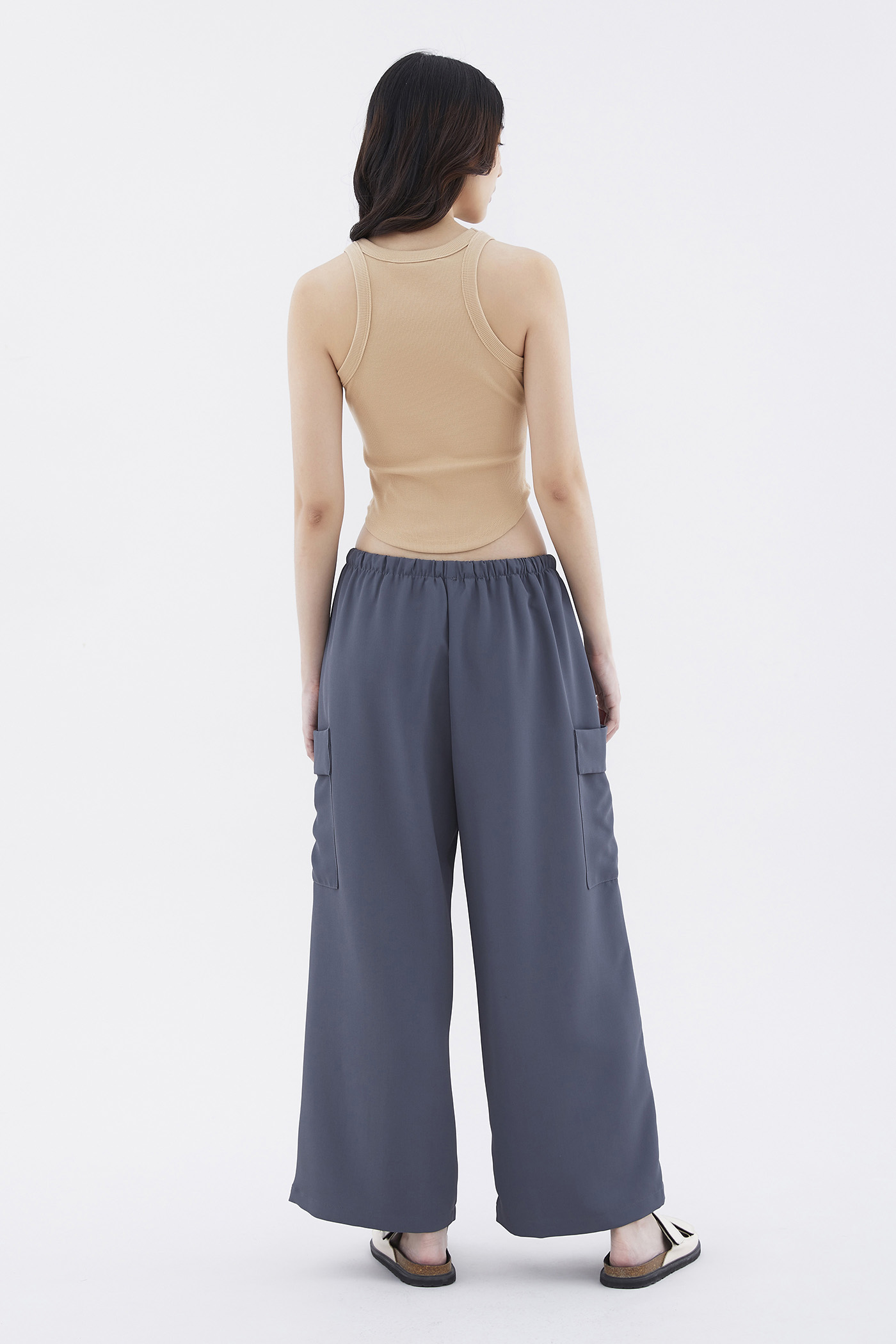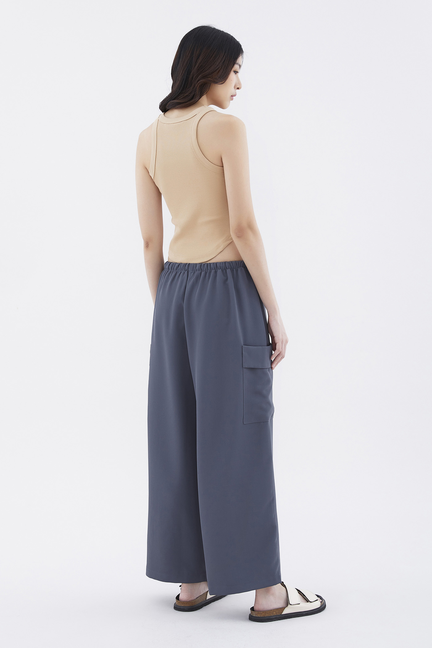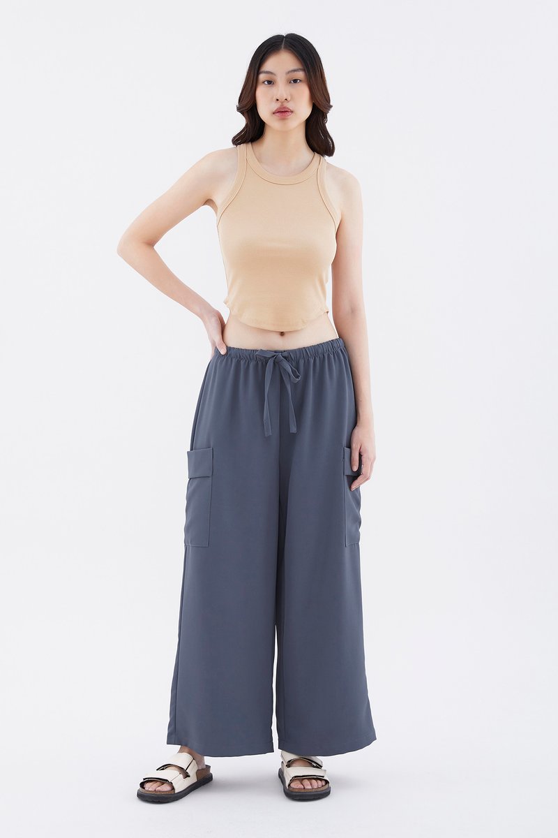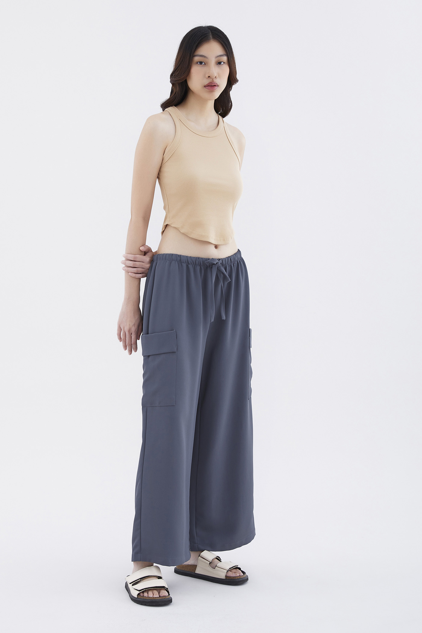 Big pocket energy. Made from drapey, non-stretch fabric, these mid-waisted pants feature wide legs with oversized pockets and an elasticated drawstring waistband. Worn in a relaxed fit.