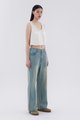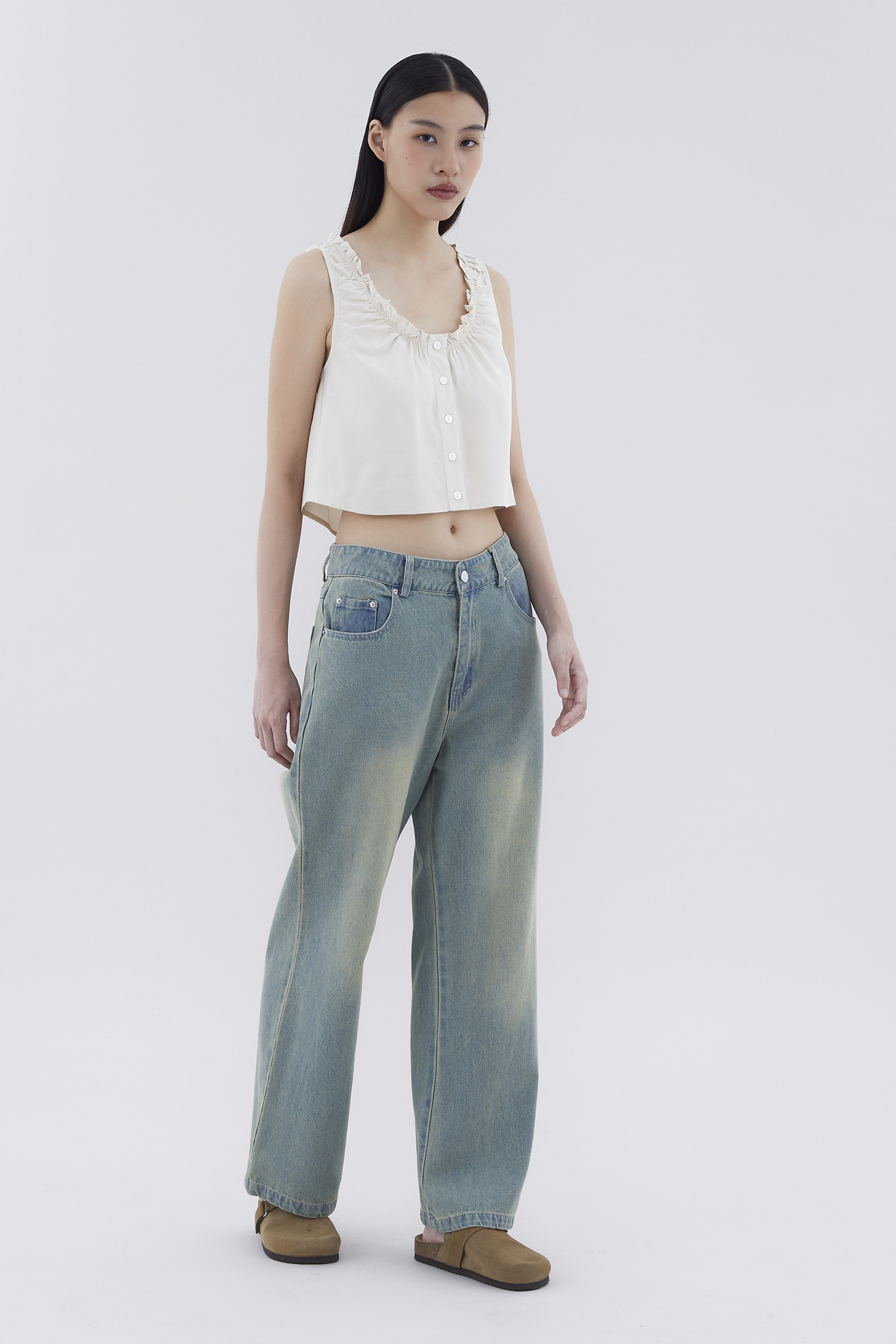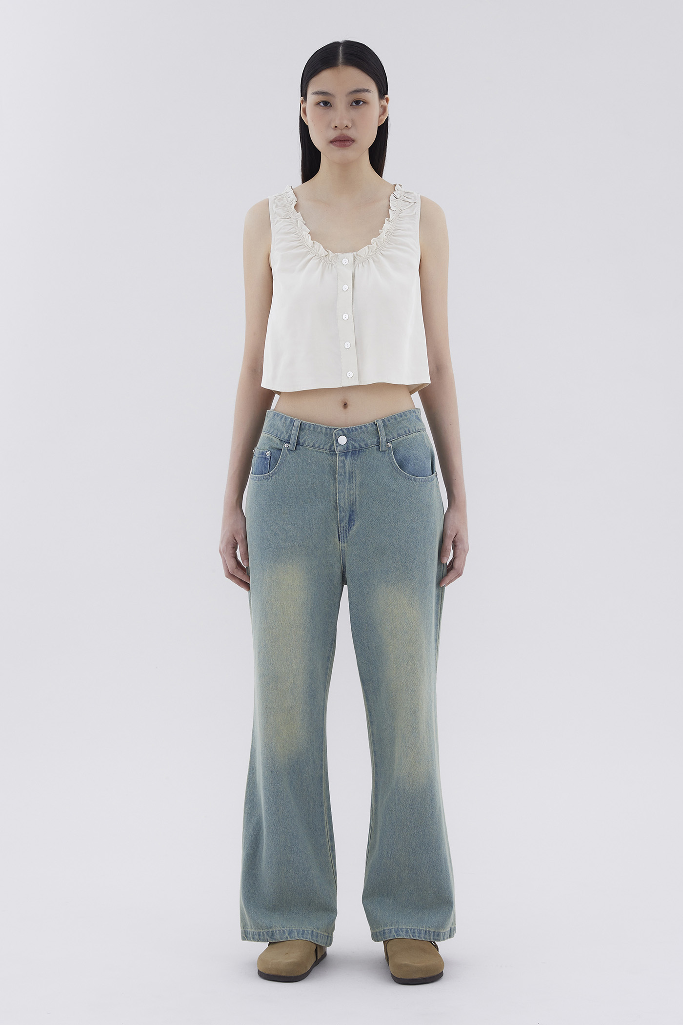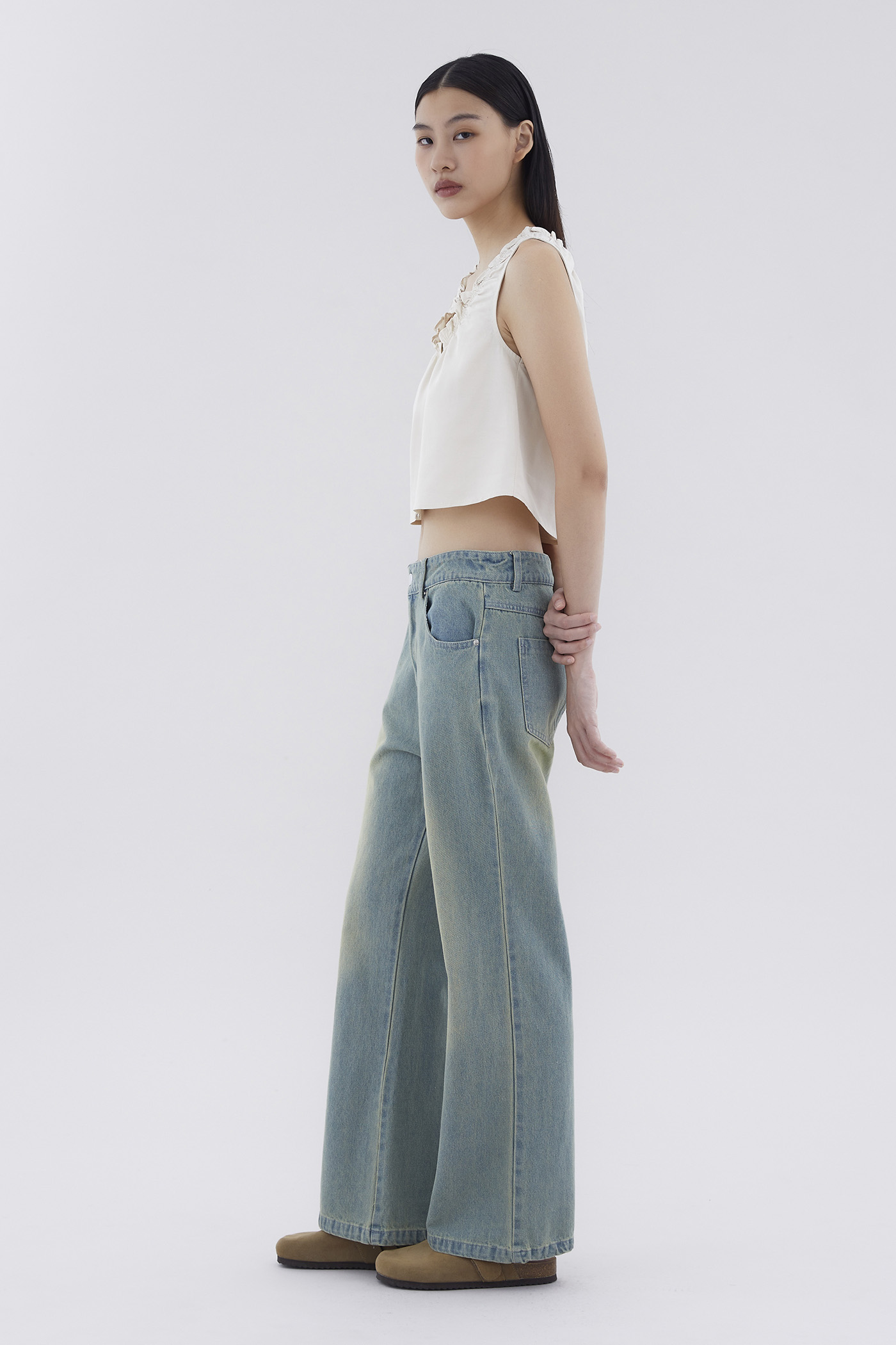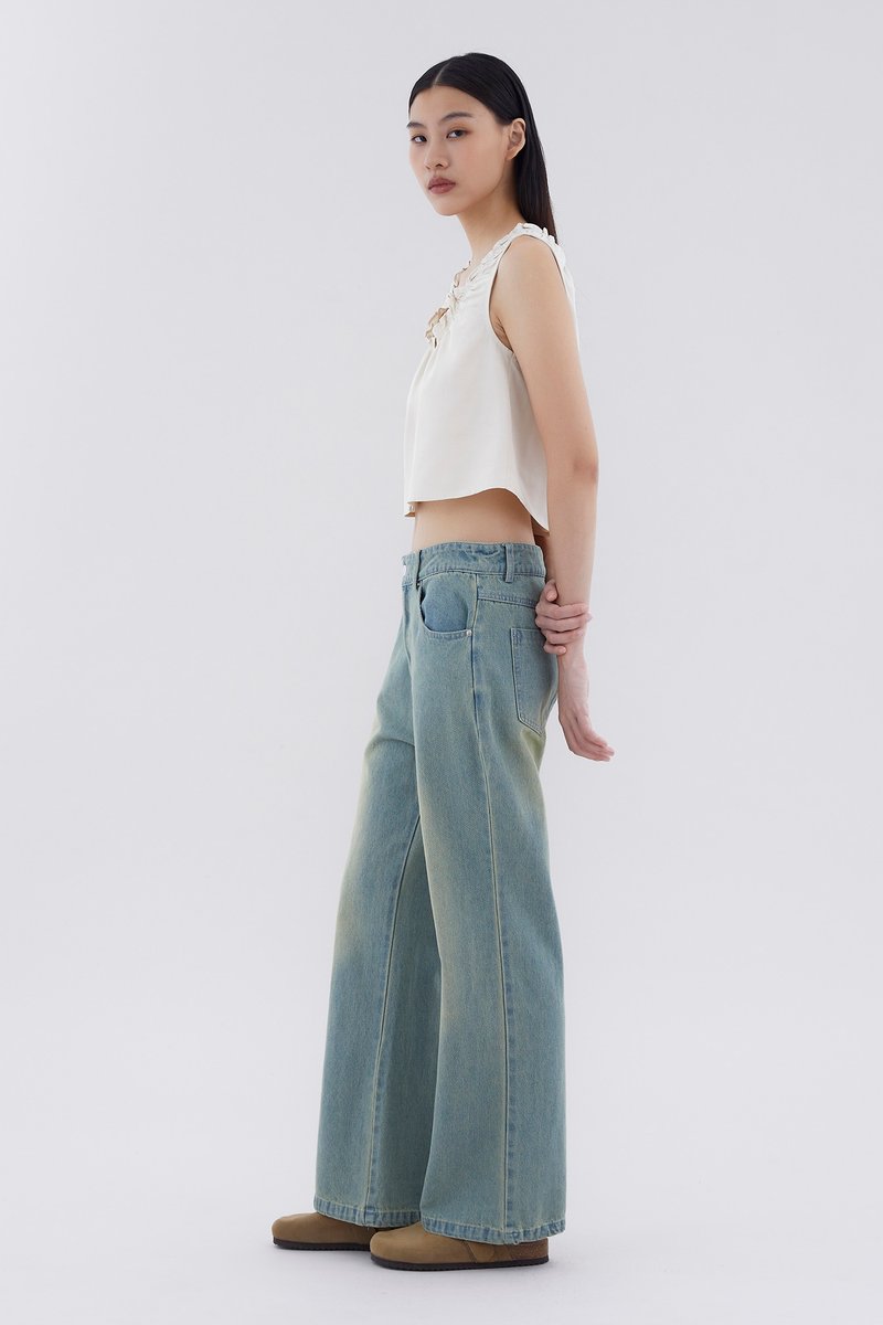 Refresh your denims. Made from softly structured cotton denim, these mid-waisted denim jeans feature belt loops, flared legs, and two side and back pockets. Worn in a relaxed fit.