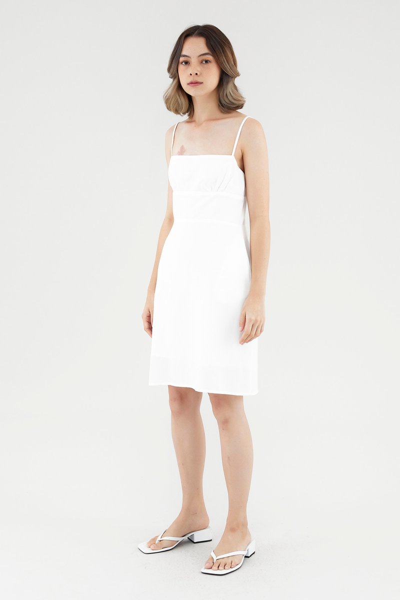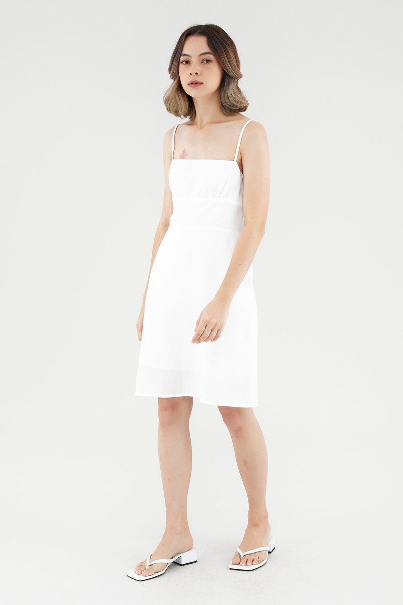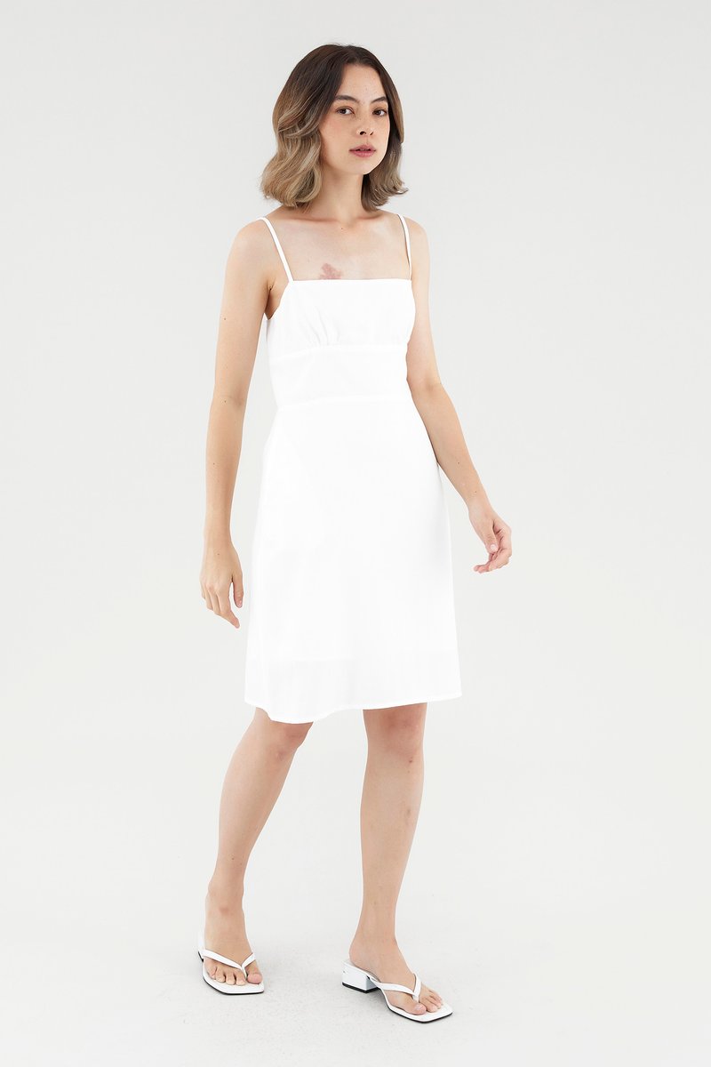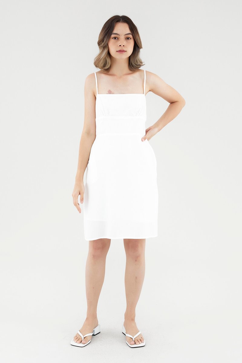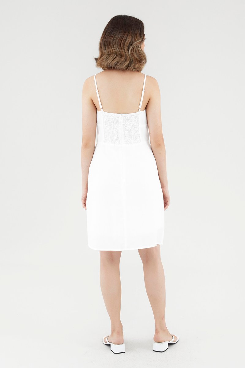 <p><span style="font-weight: 400;">Fabric Composition: 70% Lyocell 30% Linen</span></p> <p><span style="font-weight: 400;">Lining: Full</span></p> <p><span style="font-weight: 400;">Sheerness: Opaque</span></p> <p><span style="font-weight: 400;">Pockets: Two pockets on the side </span></p> <p><span style="font-weight: 400;">Your strappy, minimalist-approved sundress. Made from slightly textured and non-stretch fabric, this sleeveless mini dress features a straight neckline, slim adjustable straps and a wide band beneath the bust that brings in the silhouette. Fits slim with a smocked, zipped back. </span></p> <p><span style="font-weight: 400;">Care Instructions: Do not soak / Do not bleach / Handwash or Machine wash on gentle mode / Do not machine dry / Iron using low heat</span></p> <p><i><span style="font-weight: 400;">This piece is made from a combination of our Wear Better fabrics, linen and lyocell. Both are fully biodegradable, durable and derived from production processes that consume and generate significantly less resources and waste respectively — meaning your clothes have a longer, less environmentally damaging life cycle.</span></i></p>
