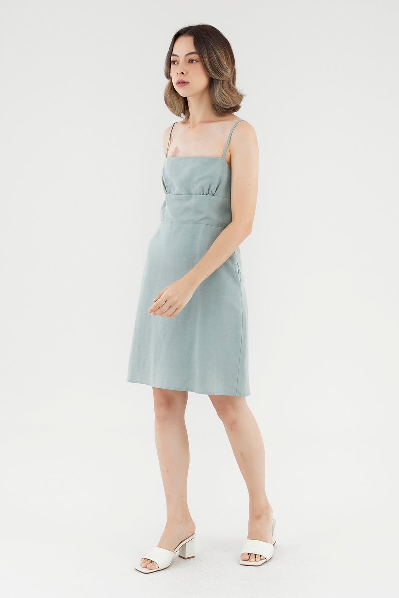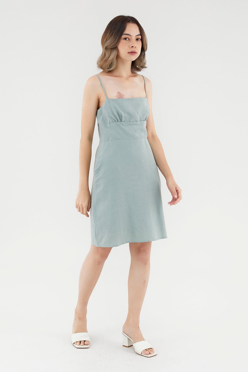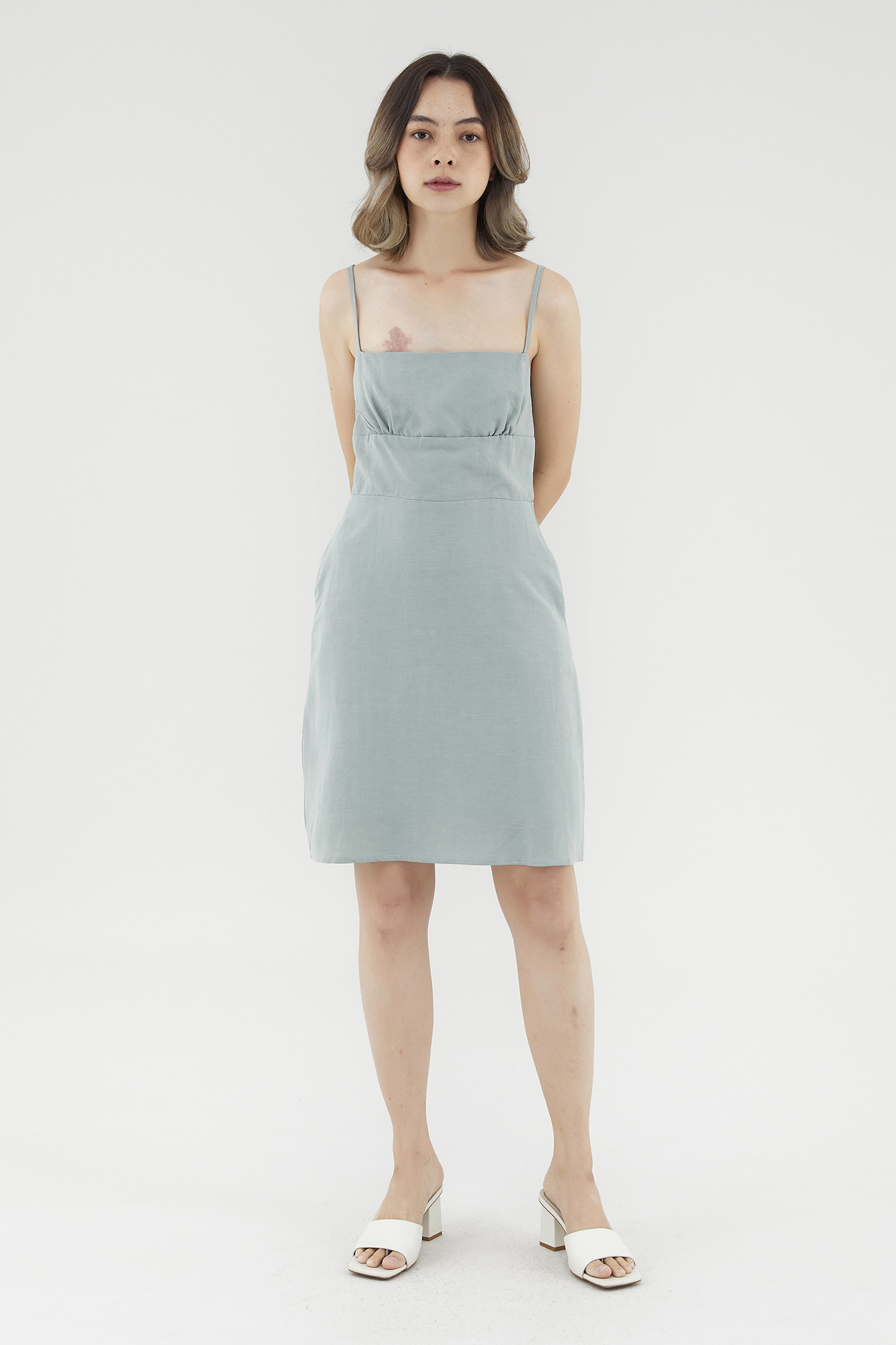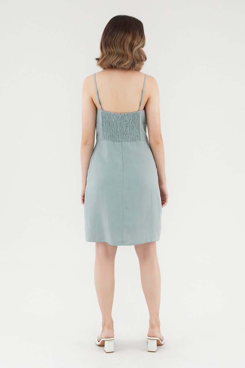 <p><span style="font-weight: 400;">Fabric Composition: 70% Lyocell 30% Linen</span></p> <p><span style="font-weight: 400;">Lining: Full</span></p> <p><span style="font-weight: 400;">Sheerness: Opaque</span></p> <p><span style="font-weight: 400;">Pockets: Two pockets on the side </span></p> <p><span style="font-weight: 400;">Your strappy, minimalist-approved sundress. Made from slightly textured and non-stretch fabric, this sleeveless mini dress features a straight neckline, slim adjustable straps and a wide band beneath the bust that brings in the silhouette. Fits slim with a smocked, zipped back. </span></p> <p><span style="font-weight: 400;">Care Instructions: Do not soak / Do not bleach / Handwash or Machine wash on gentle mode / Do not machine dry / Iron using low heat</span></p> <p><i><span style="font-weight: 400;">This piece is made from a combination of our Wear Better fabrics, linen and lyocell. Both are fully biodegradable, durable and derived from production processes that consume and generate significantly less resources and waste respectively — meaning your clothes have a longer, less environmentally damaging life cycle.</span></i></p>