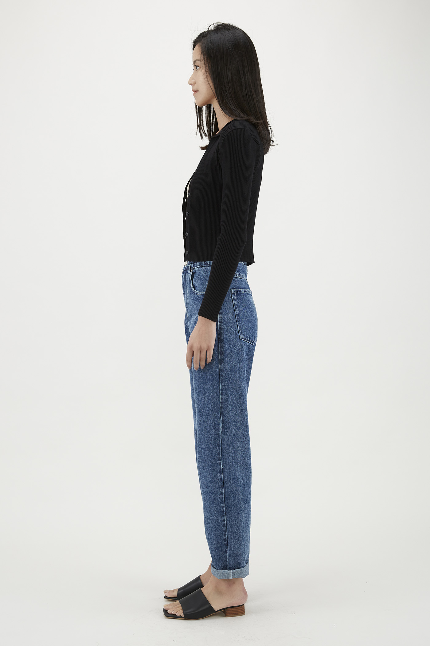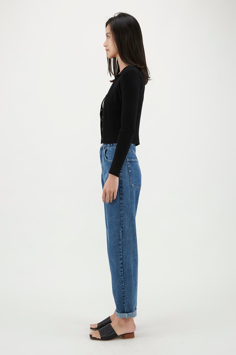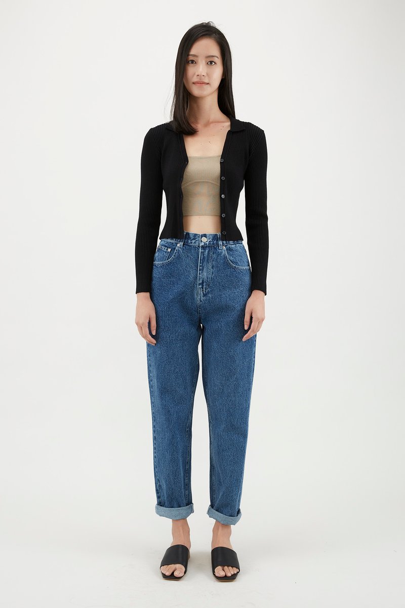 Another one for the knit essentials. Made from soft and stretchy ribbed fabric, this cardigan features slim long sleeves, a front button closure and a collared, V-neckline. Fits snug.