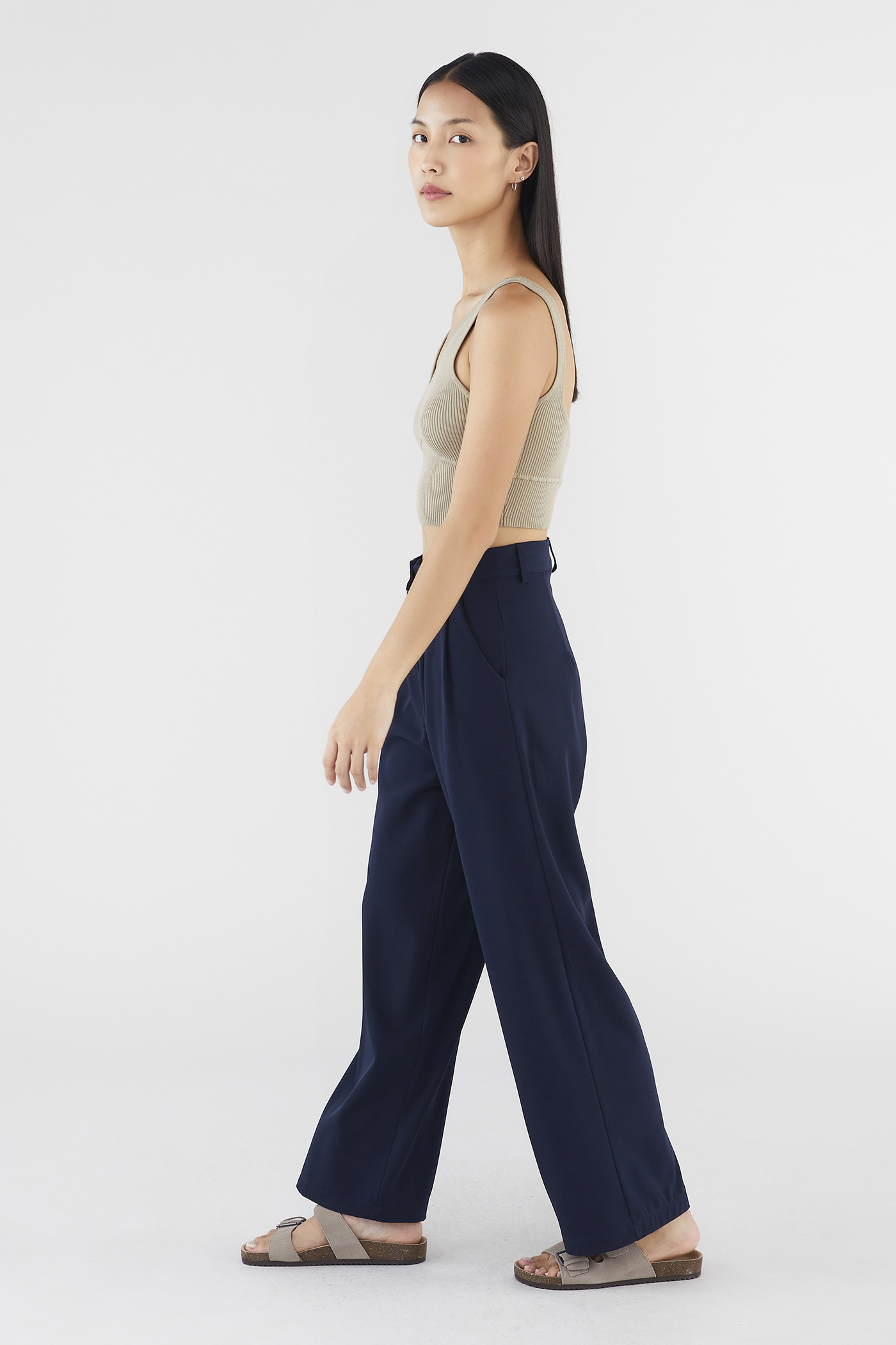 On-duty meets off-duty. Cut from softly tailored fabric with a structured drape, these pants feature a high waist with belt loops, wide legs and front pleats. Fits relaxed with a front zip and buckle closure.