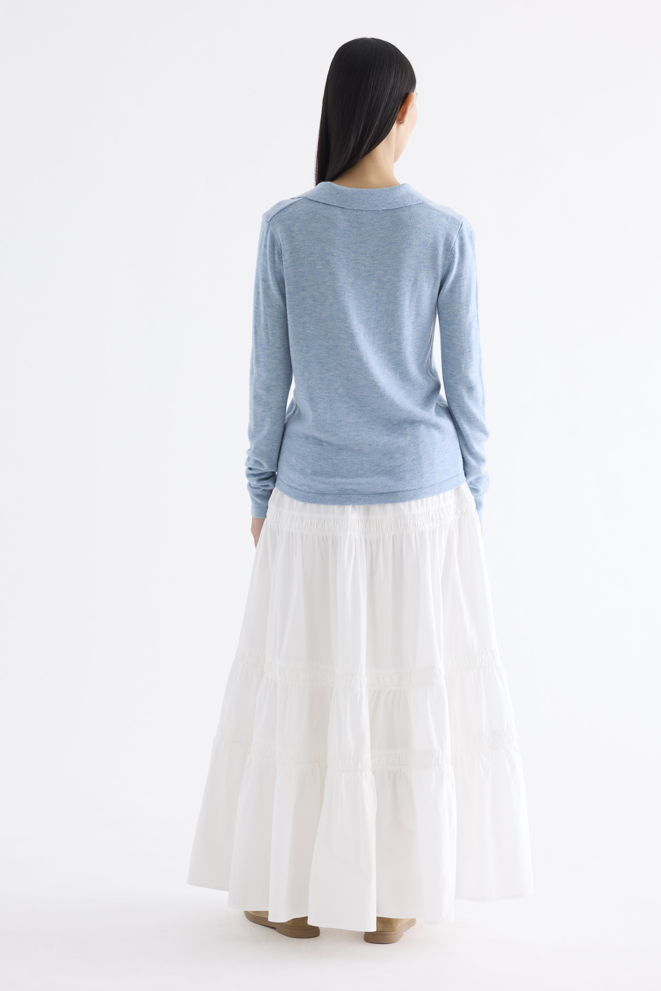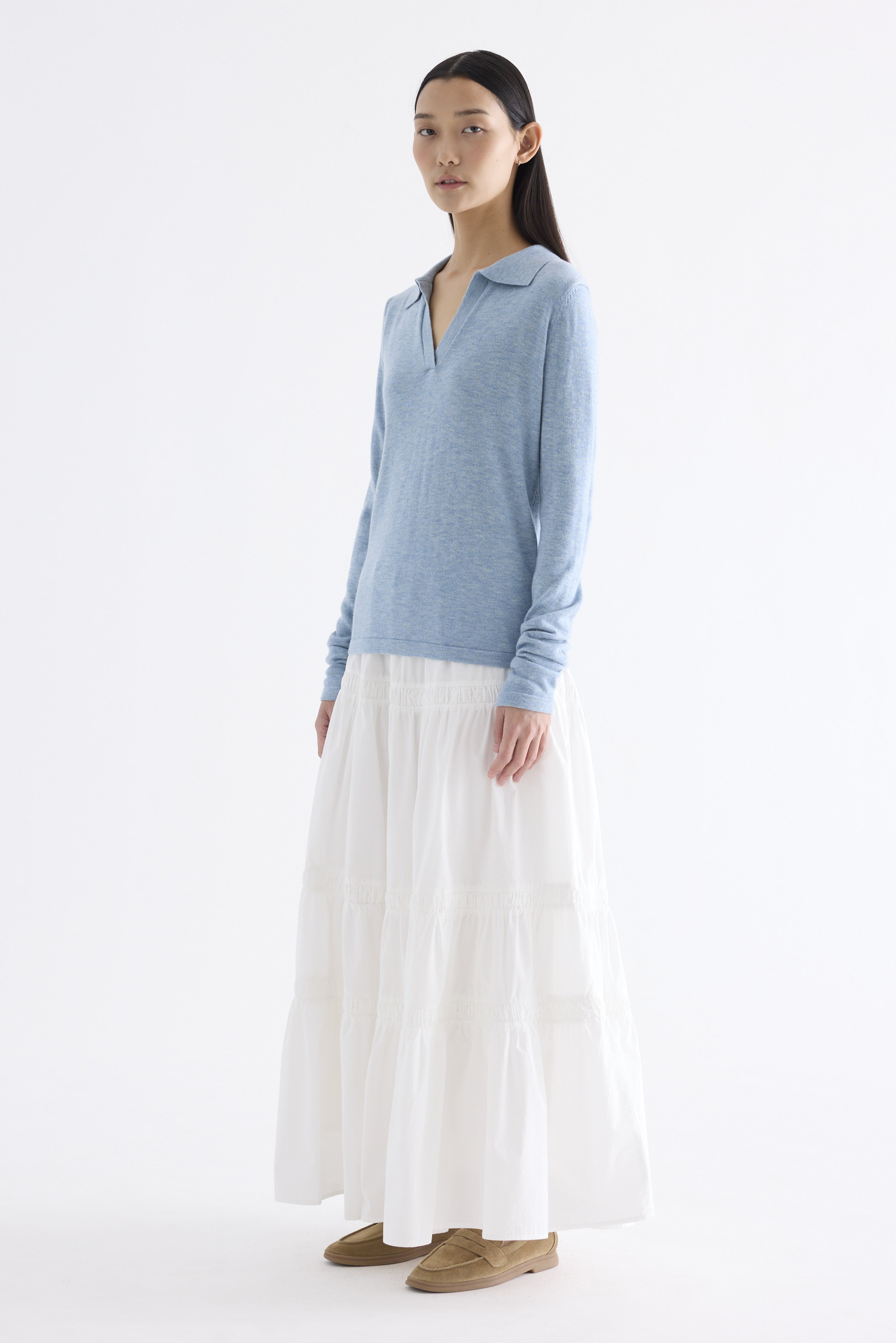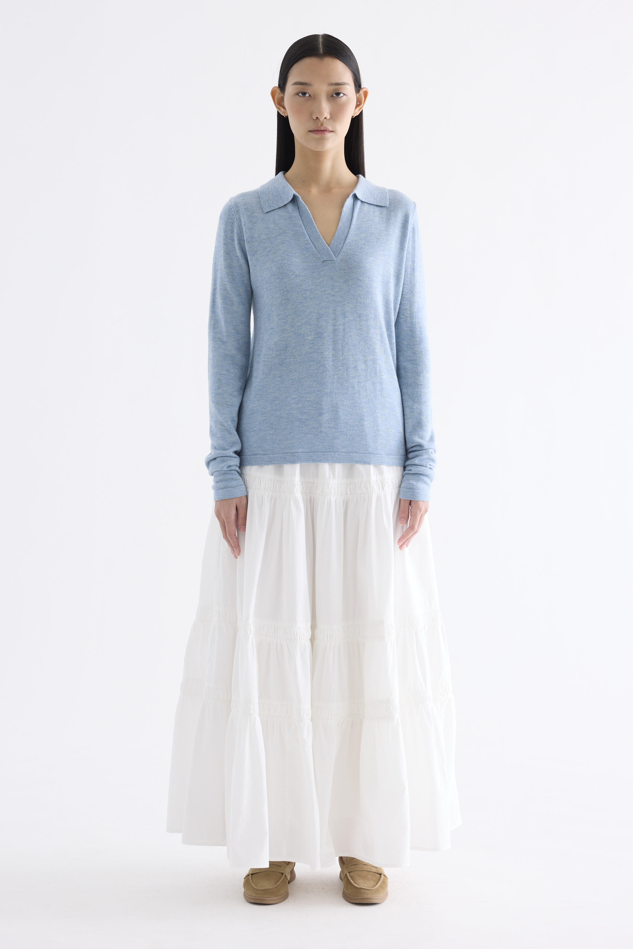 Snug enough. Made from soft and cosy knit, this sweater top features a collared V-neckline and slim fit.