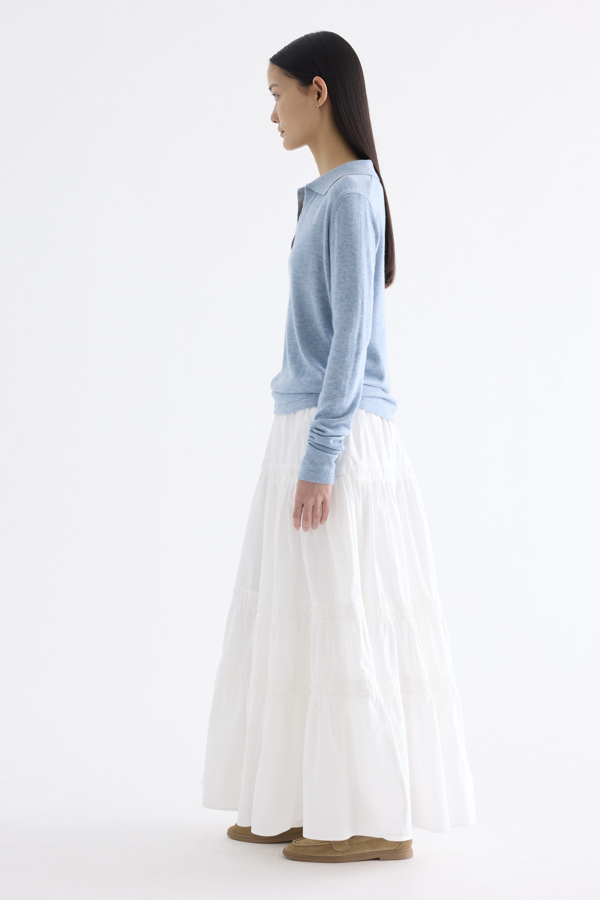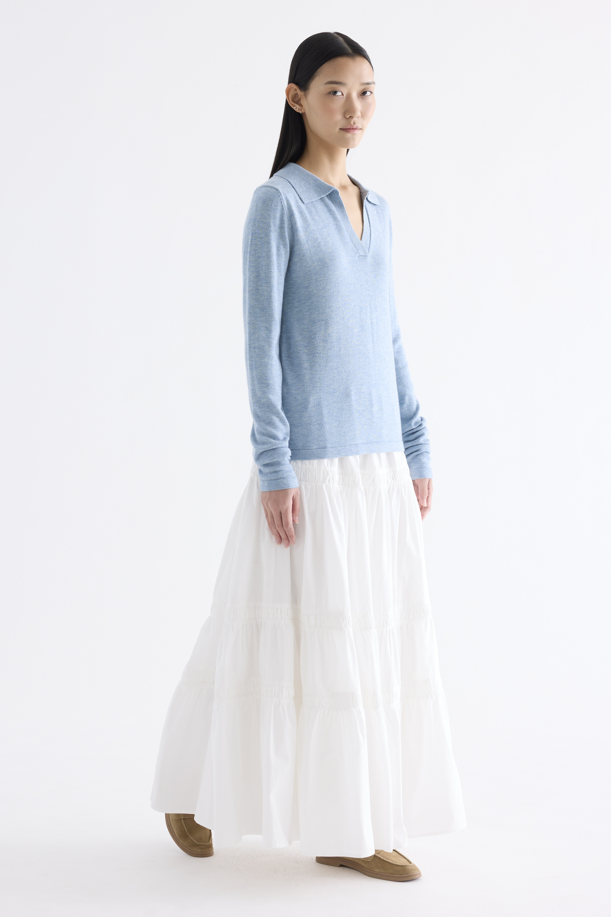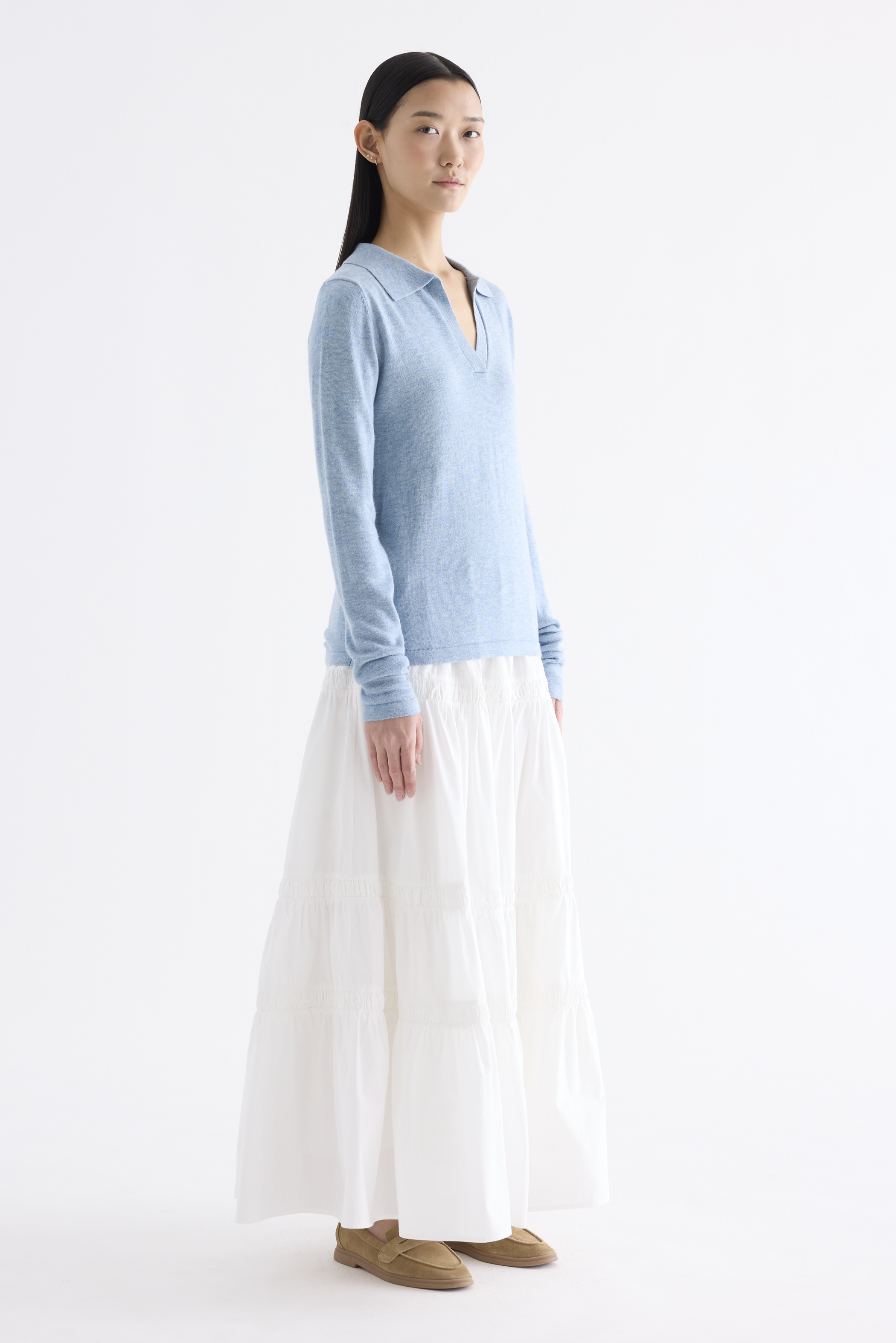 Snug enough. Made from soft and cosy knit, this sweater top features a collared V-neckline and slim fit.