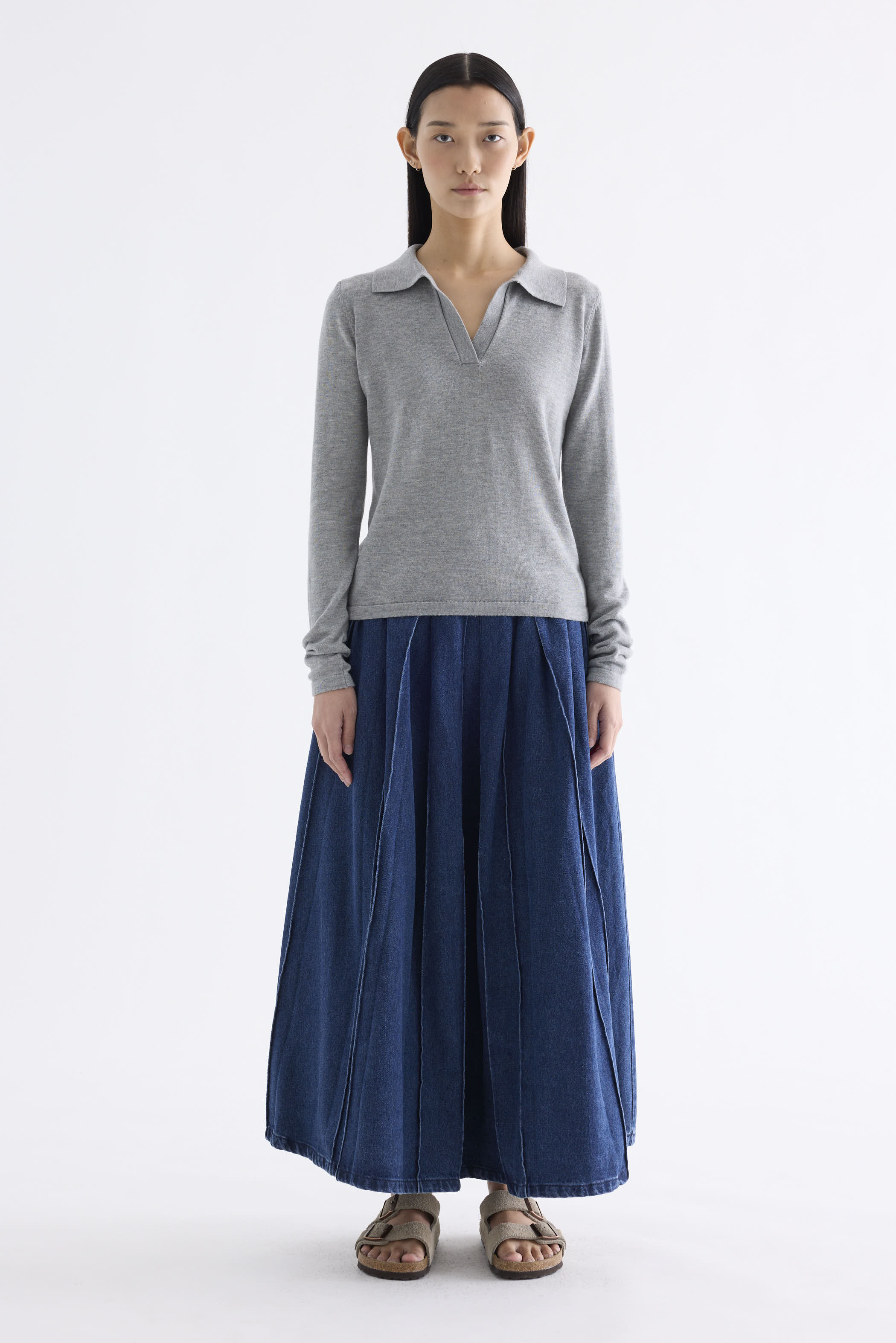 Snug enough. Made from soft and cosy knit, this sweater top features a collared V-neckline and slim fit.