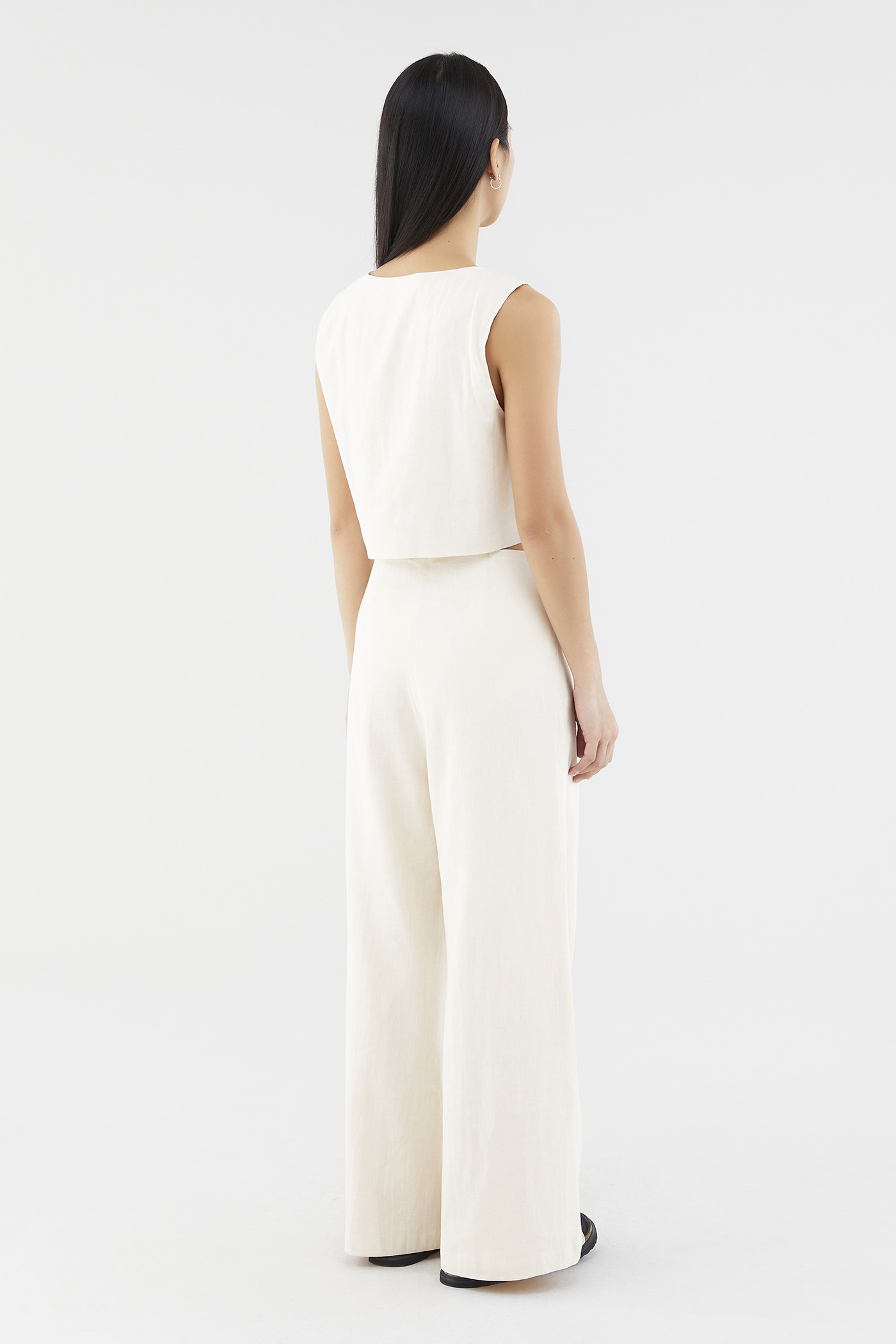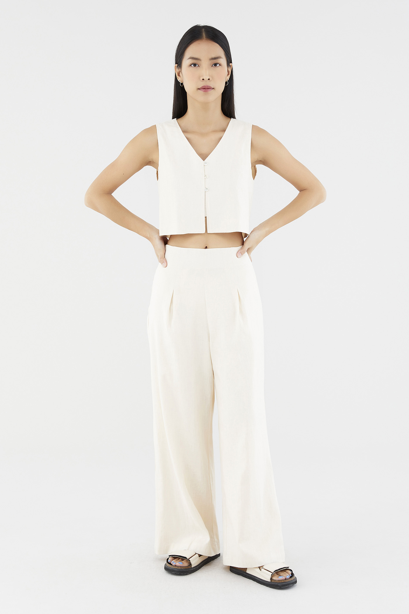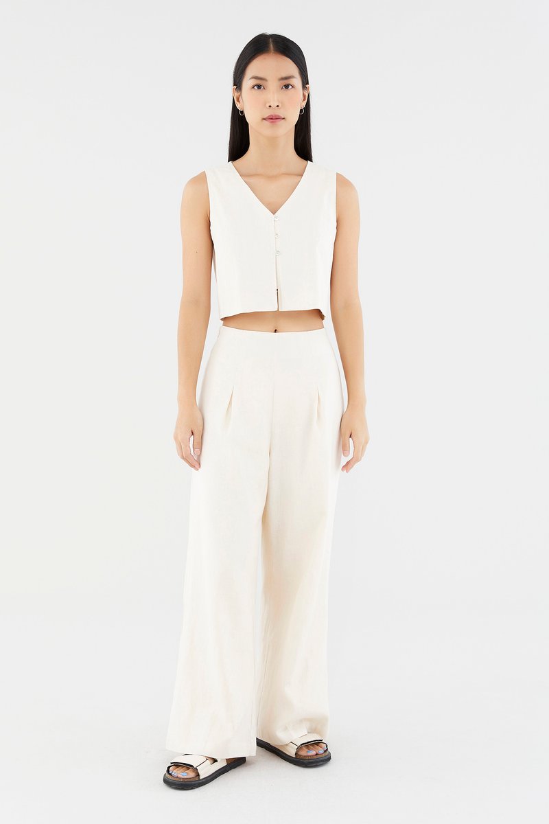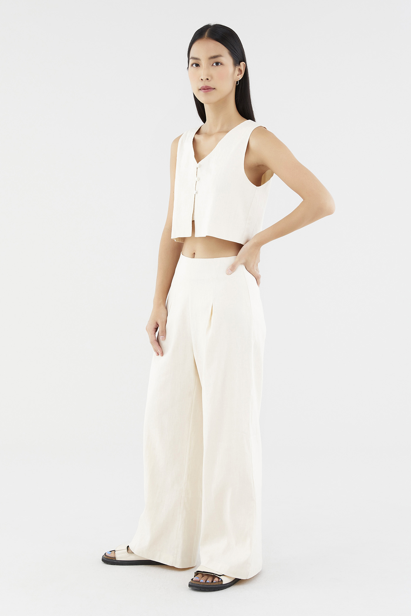 Cooler than the rest. Cut from airy and gently tailored 100% linen, these mid-rise pants feature a bandless waist, wide legs, front pleats and a side zip. Worn in a relaxed fit.