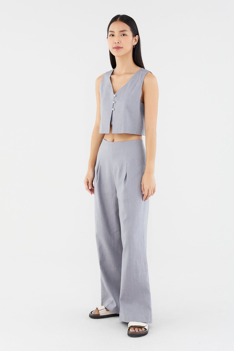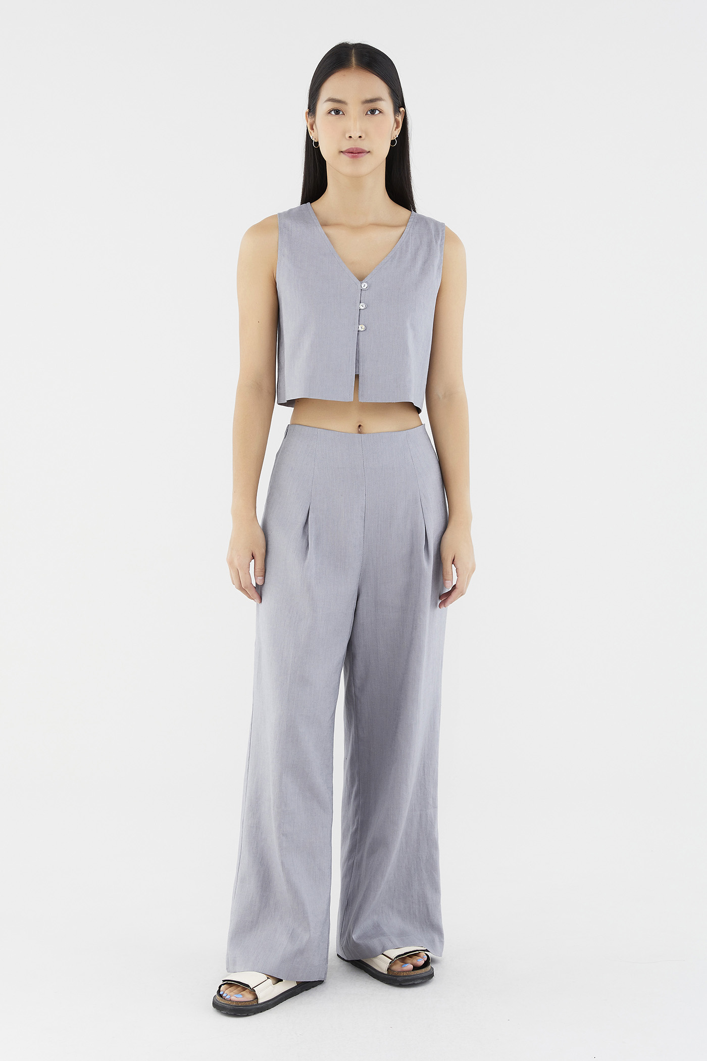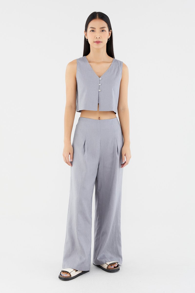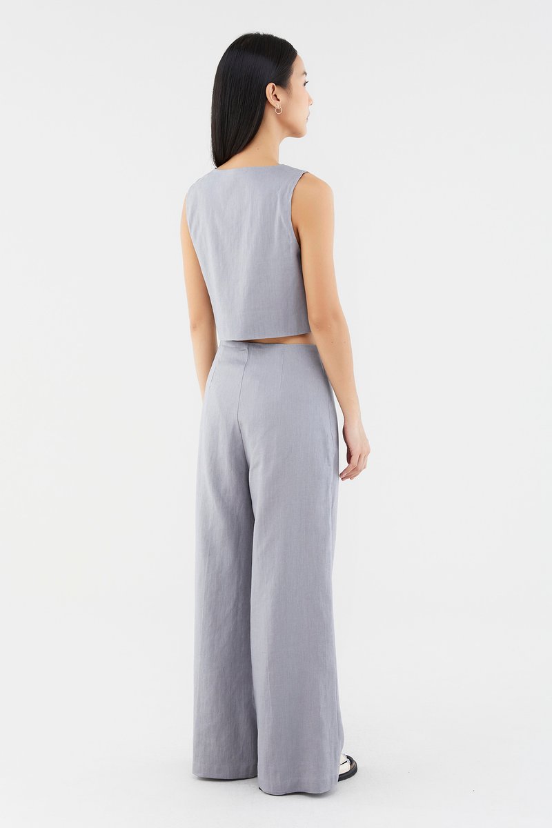 Cooler than the rest. Cut from airy and gently tailored 100% linen, these mid-rise pants feature a bandless waist, wide legs, front pleats and a side zip. Worn in a relaxed fit.