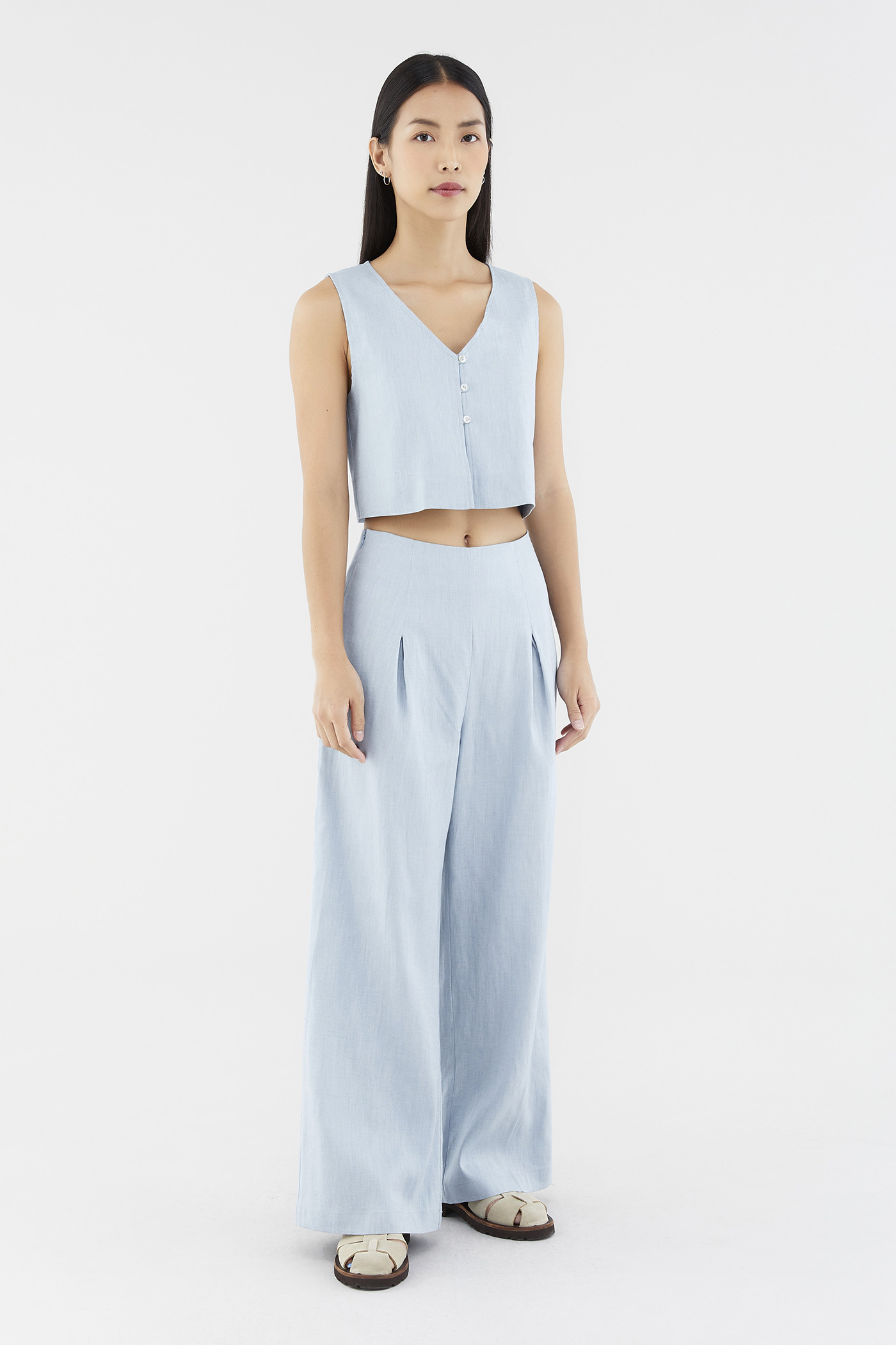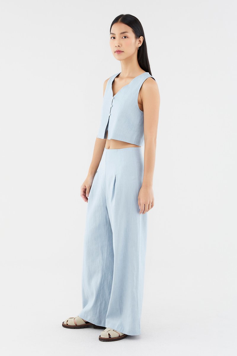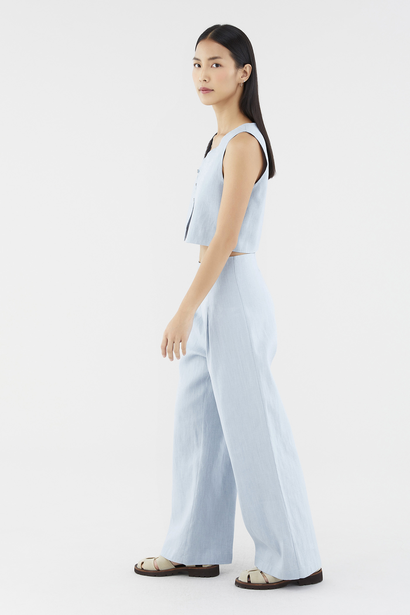 Cooler than the rest. Cut from airy and gently tailored 100% linen, these mid-rise pants feature a bandless waist, wide legs, front pleats and a side zip. Worn in a relaxed fit.
