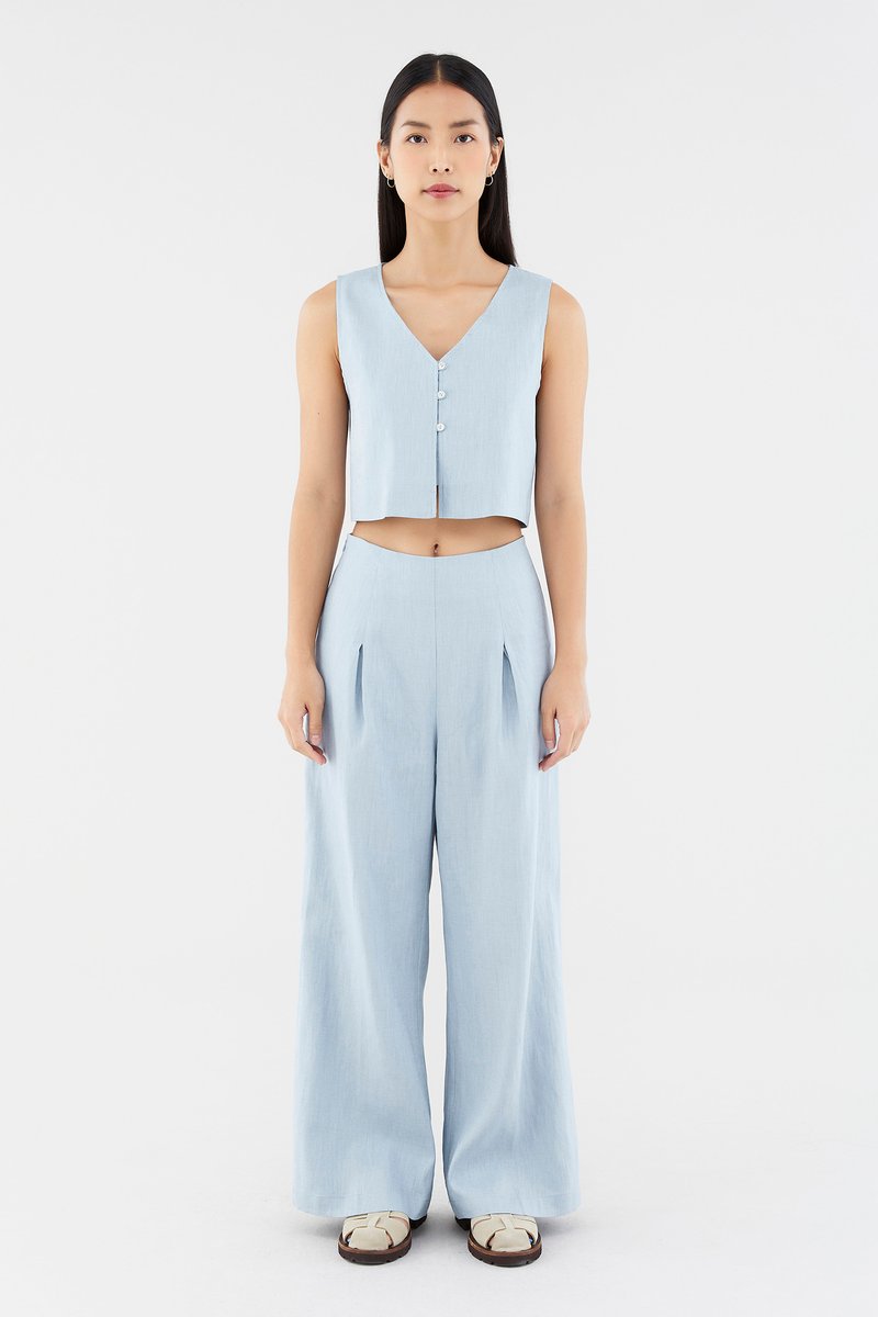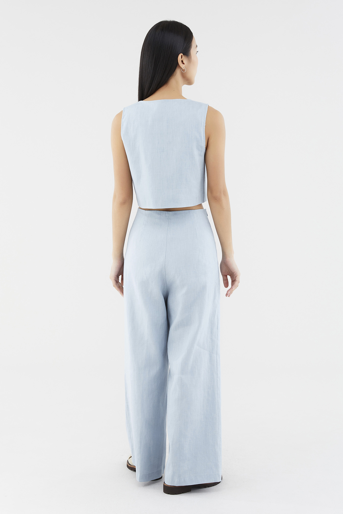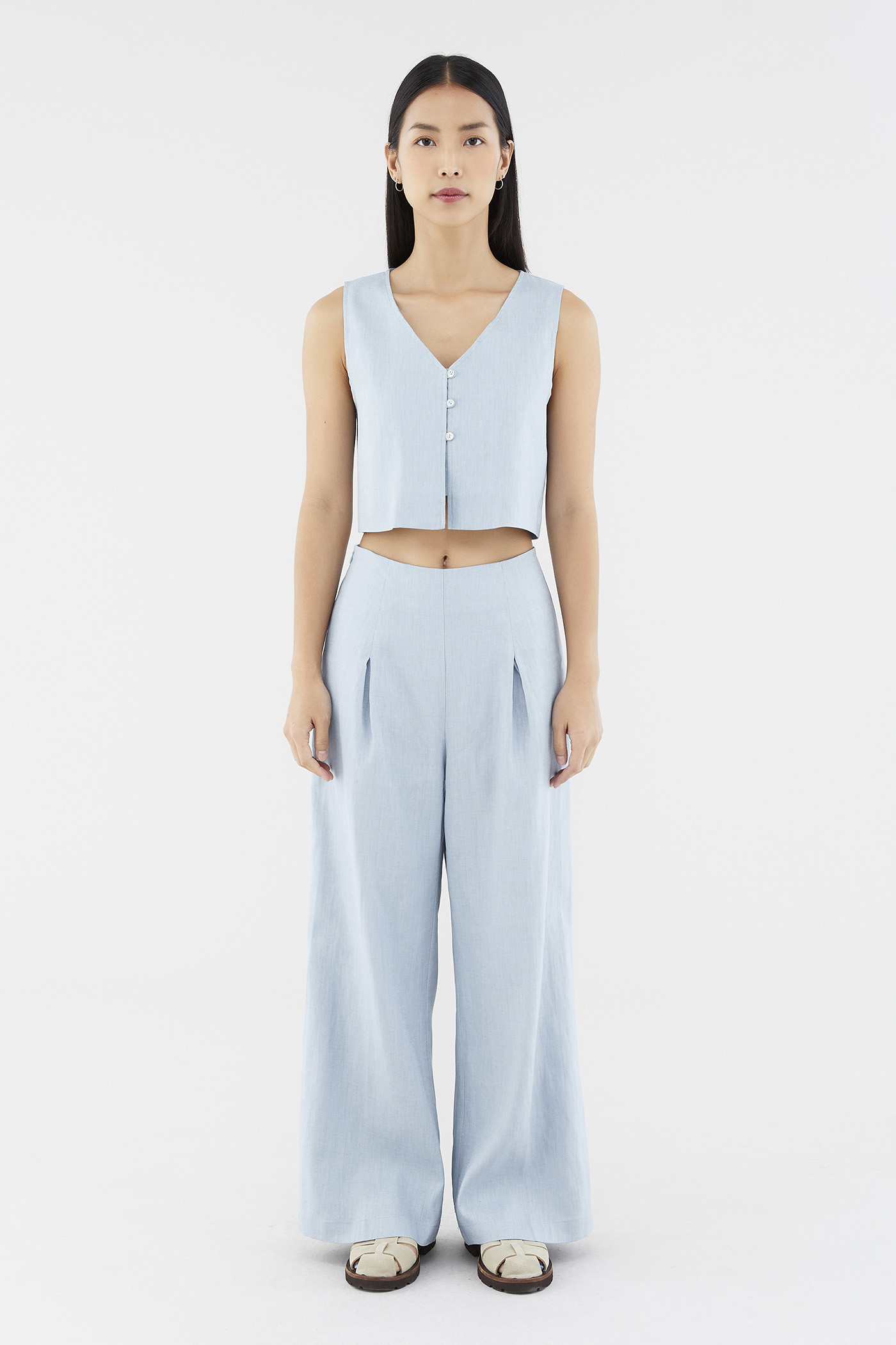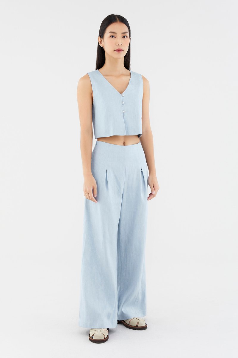 Cooler than the rest. Cut from airy and gently tailored 100% linen, these mid-rise pants feature a bandless waist, wide legs, front pleats and a side zip. Worn in a relaxed fit.