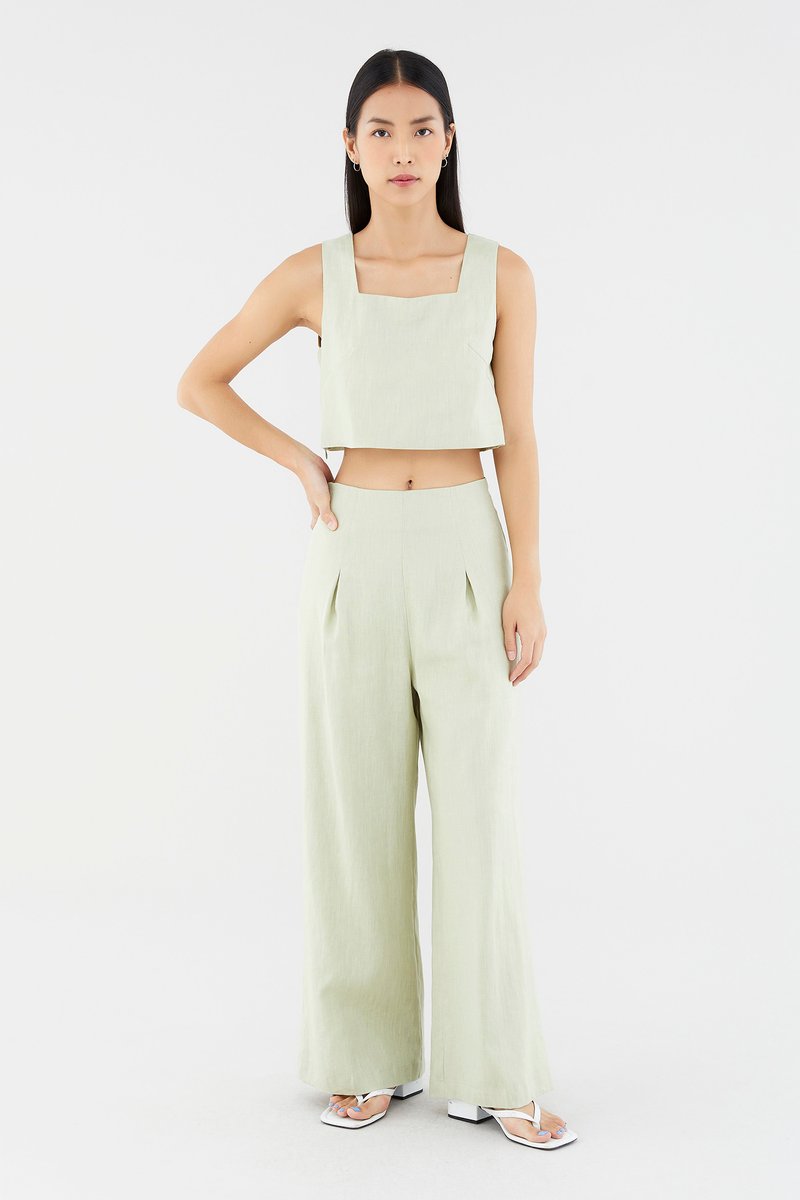 Mabel Linen Mid-Rise Wide Leg Pants