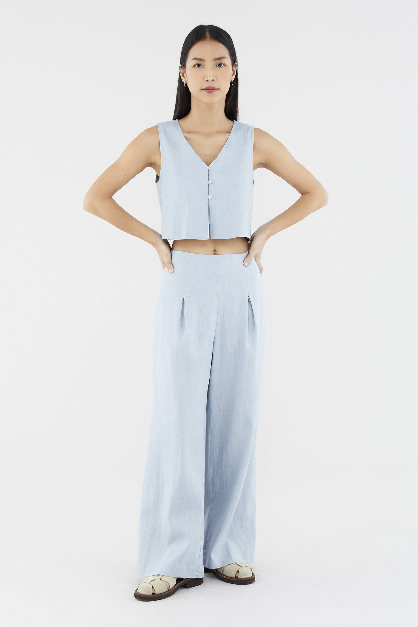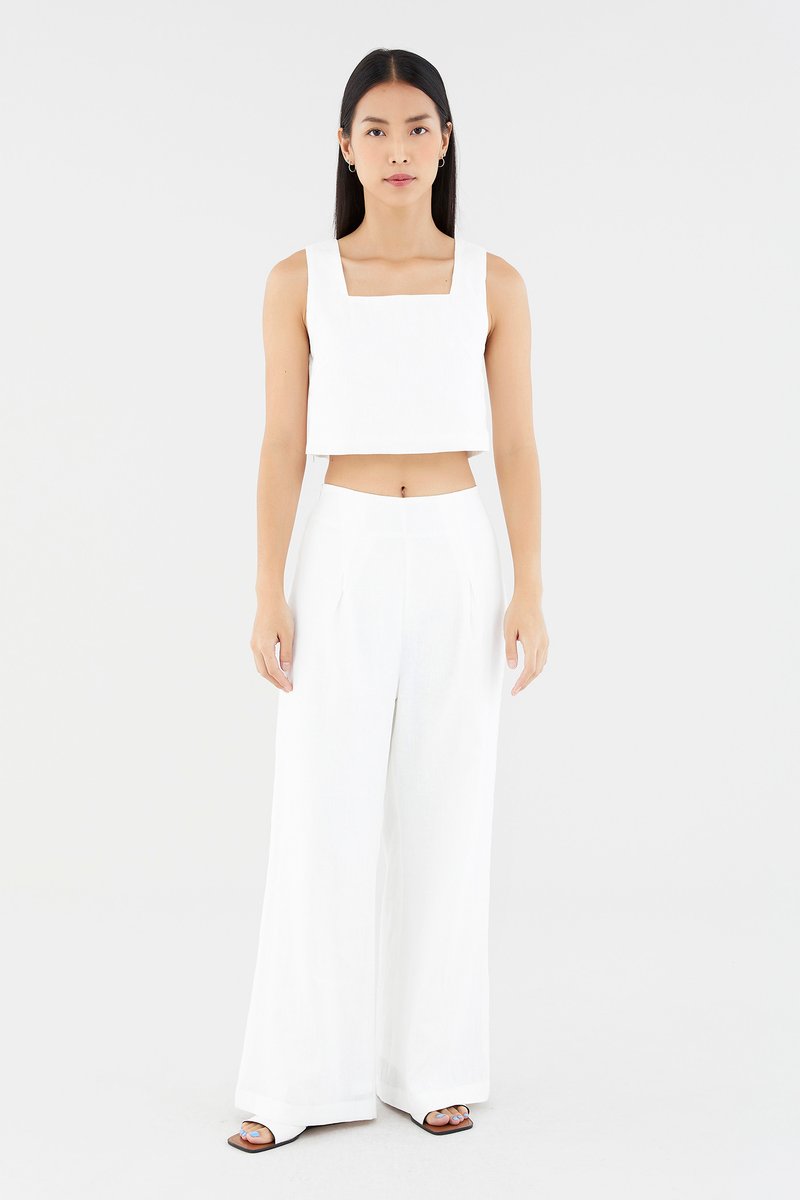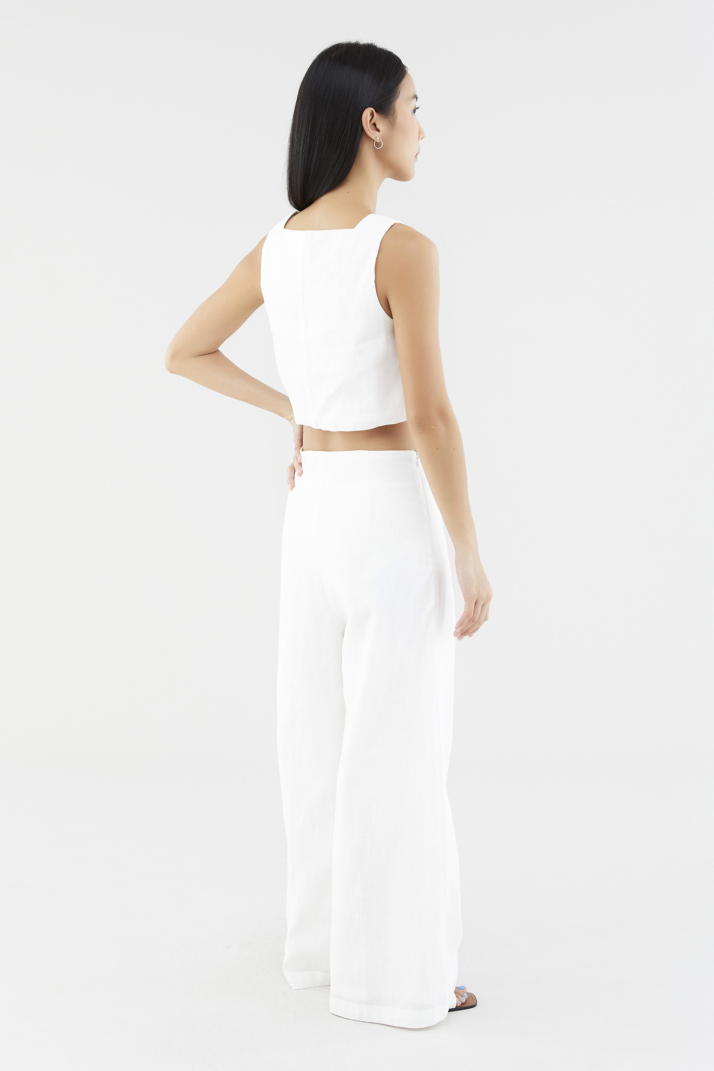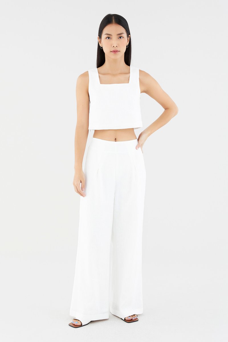 Cooler than the rest. Cut from airy and gently tailored 100% linen, these mid-rise pants feature a bandless waist, wide legs, front pleats and a side zip. Worn in a relaxed fit.