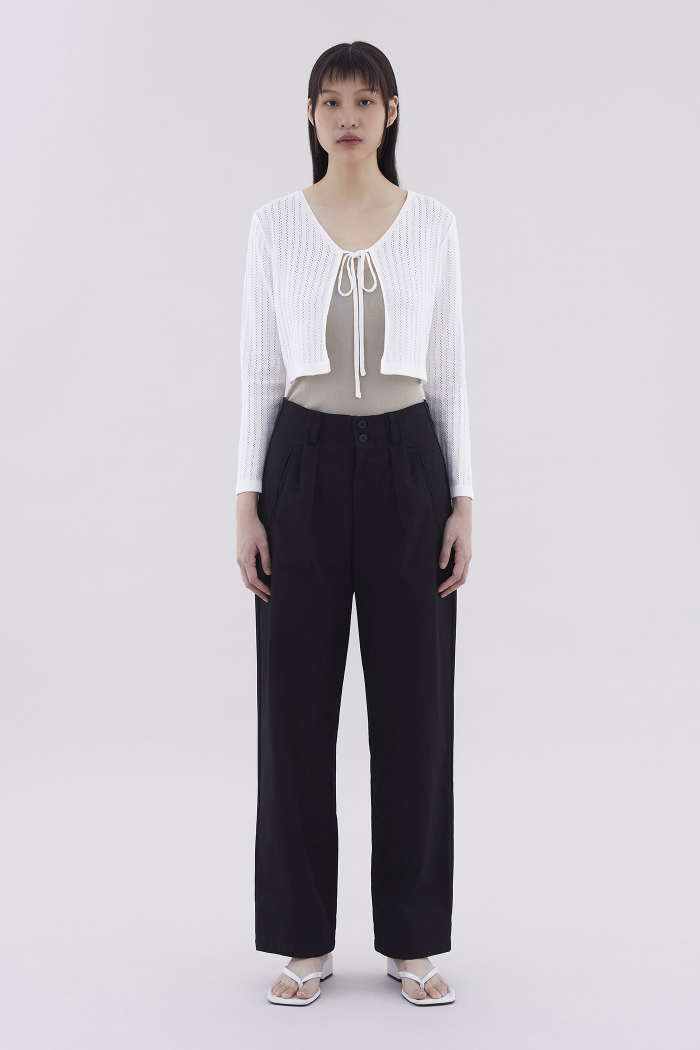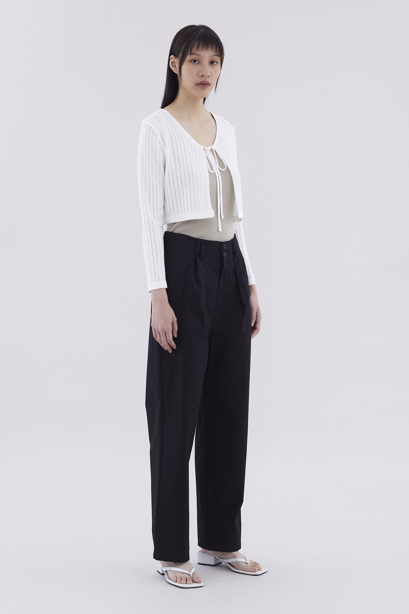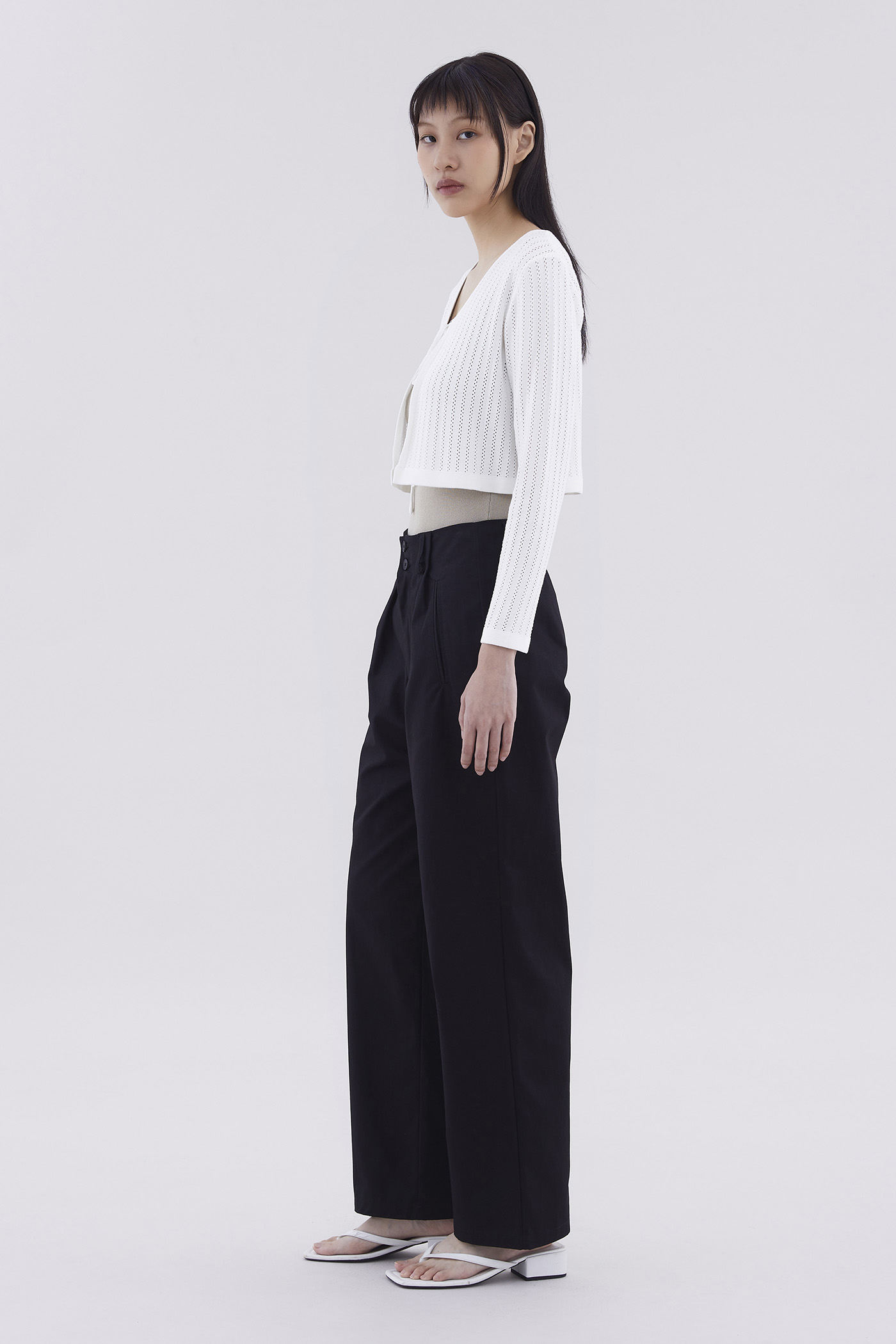 Wear the pants. Made from non-sheer and softly structured cotton, these high-rise pants feature wide straight legs, a seamless waistband with belt loops, front pleats, and a double-button and zip closure. Worn in a relaxed fit.